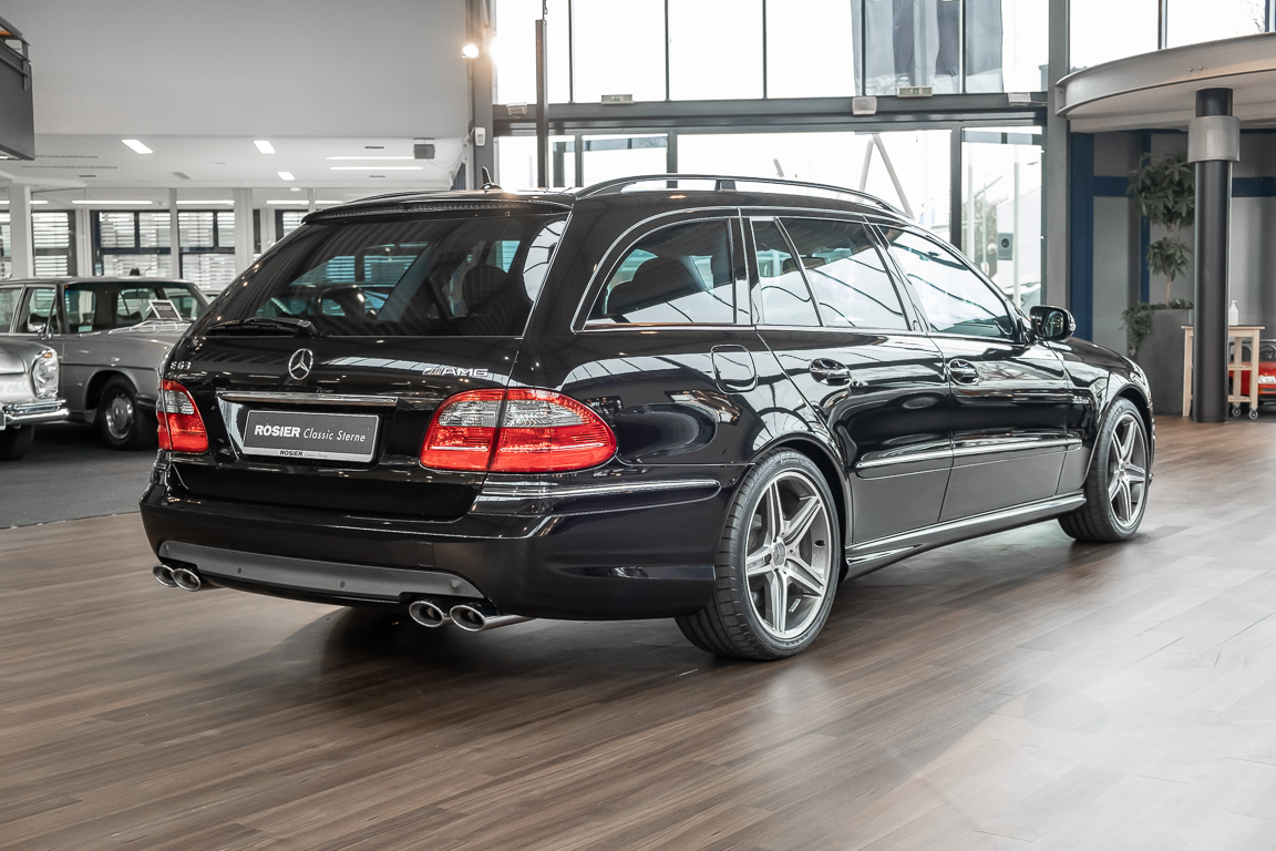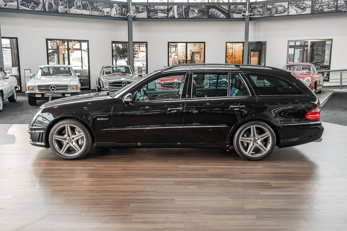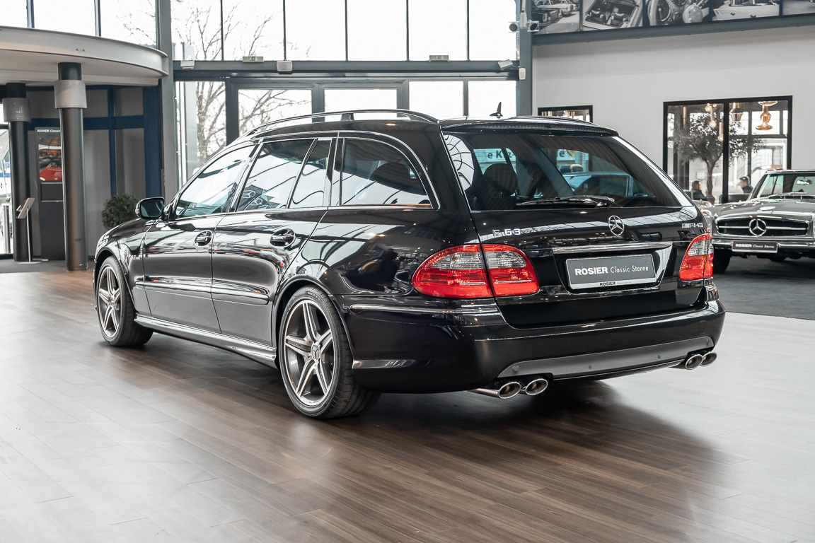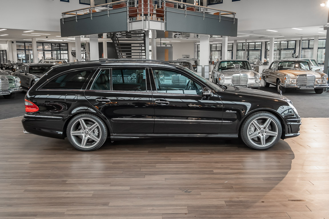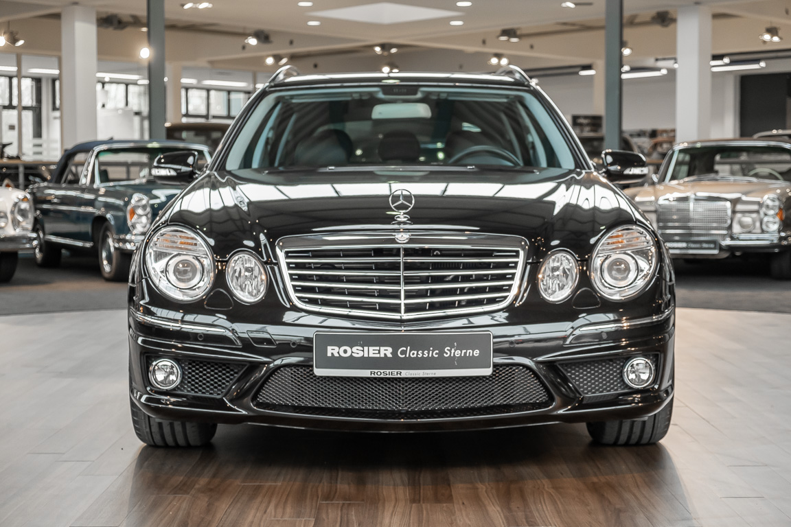 Eine wahre Rarität und „Neoklassiker“ dürfen wir Ihnen mit diesem E63 T-Modell der Baureihe 211 anbieten. Wie in einer Zeitkapsel scheint dieses Fahrzeug aus dem Jahre 2006 in unsere Gegenwart gereist zu sein. Keine Abnutzung, kein noch so kleiner Makel ist bei diesem Fahrzeug auszumachen. So weit das Auge reicht, ist überall dort, wo sonst Spuren der Benutzung zu vermuten sind, ein perfekter Neuwagenzustand mit unter 100 Kilometern vorzufinden. Mit etwas Phantasie ist selbst der Neuwagenduft noch zu riechen. Ein wohlhabener Sammler aus dem Wüstenstaat Kuweit hatte sich dieses Fahrzeug in seiner Wunschausstattung zusammenstellen lassen, die kaum einen Wunsch offen lässt. Wohl behütet wurde das Fahrzeug nur zu Erhaltungsfahrten bewegt und gelang anschließend über einen händler für Mercedes-Benz Rairitäten in die Hand eines ausgemachten Sammlers. Aus dieser Sammlung heraus dürfen wir diesen Kraft-Kombi nun verkaufen. Seien Sie schnell! Herzlich willkommen bei ROSIER Classic Sterne.