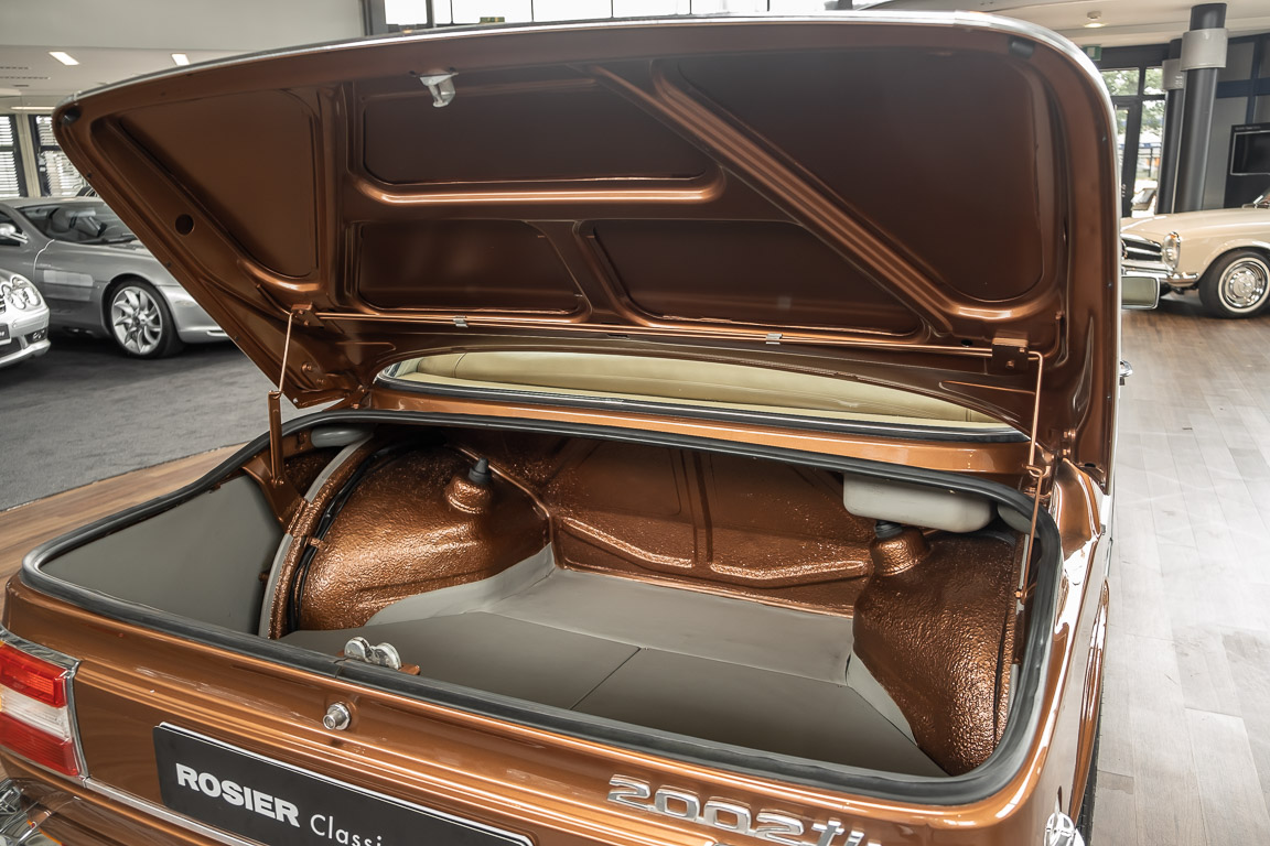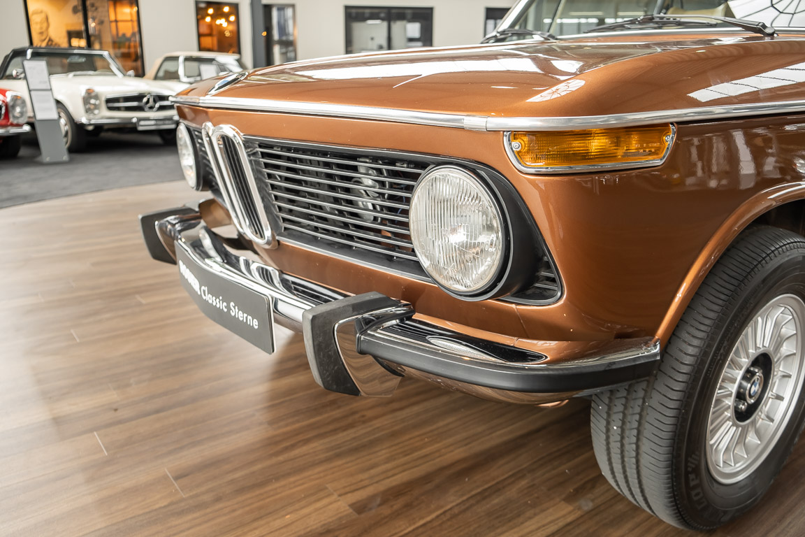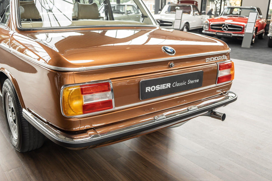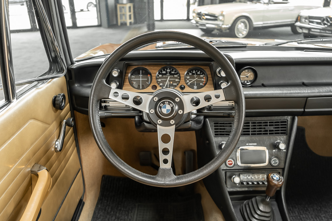 Wir freuen uns, Ihnen diesen BMW 2002tii aus dem Jahre 1974 anbieten zu dürfen. Der Auftritt in Sienabraun Metallic in Kombination mit beigem Leder steht diesem Fahrzeug ausgezeichnet. Die bereits werkseitig verbauten Extras machen diesen 2002 zu einem echten Schmuckstück. Mit Schiebedach, Klimaanlage, Colorverglasung sowie Leichtmetallfelgen blieben für damalige Verhältnisse keine Wünsche offen. Im Jahre 2014 wurde das Fahrzeug aus Evanston in Illinois in sein Ursprungsland zurückgeholt. Trotz des soliden Zustandes entschied sich der Besitzer für einen vollumfänglichen Neuaufbau dieses Traum-Bayern, bei dem weder Kosten noch Mühen gescheut wurden. So wurde das Fahrzeug in den Jahren 2014 und 2015 umfangreich und auf höchstem Niveau bei einem BMW- und Alpina-Klassikspezialisten in Albaching, nahe München restauriert. Das Ergebnis dieser Qualitätsarbeit kann sich sehen lassen: Der Motor wurde aufwändig auf den Deutschen Standard umgebaut – inklusive einer höheren Verdichtung. Das Original-Getriebe wurde überholt und alle Verschleißteile ausgetauscht. Bremsen, Lenken, Schalten: alles fühlt sich an, wie bei einem Jahreswagen. Ein absoluter Traum, bei dem man die „Freude am Fahren“ mit allen Sinnen erfährt! Steigen Sie ein und „erfahren“ Sie es selbst.