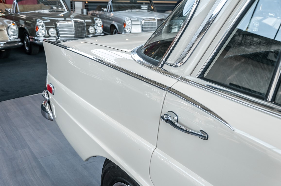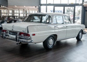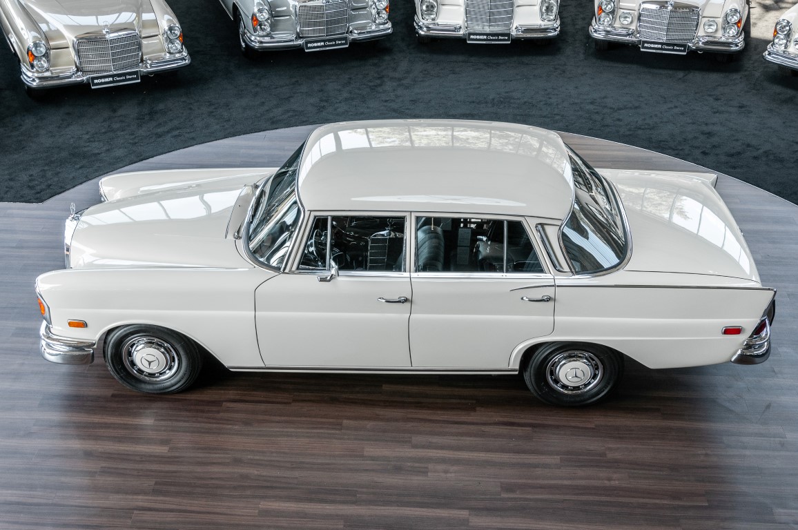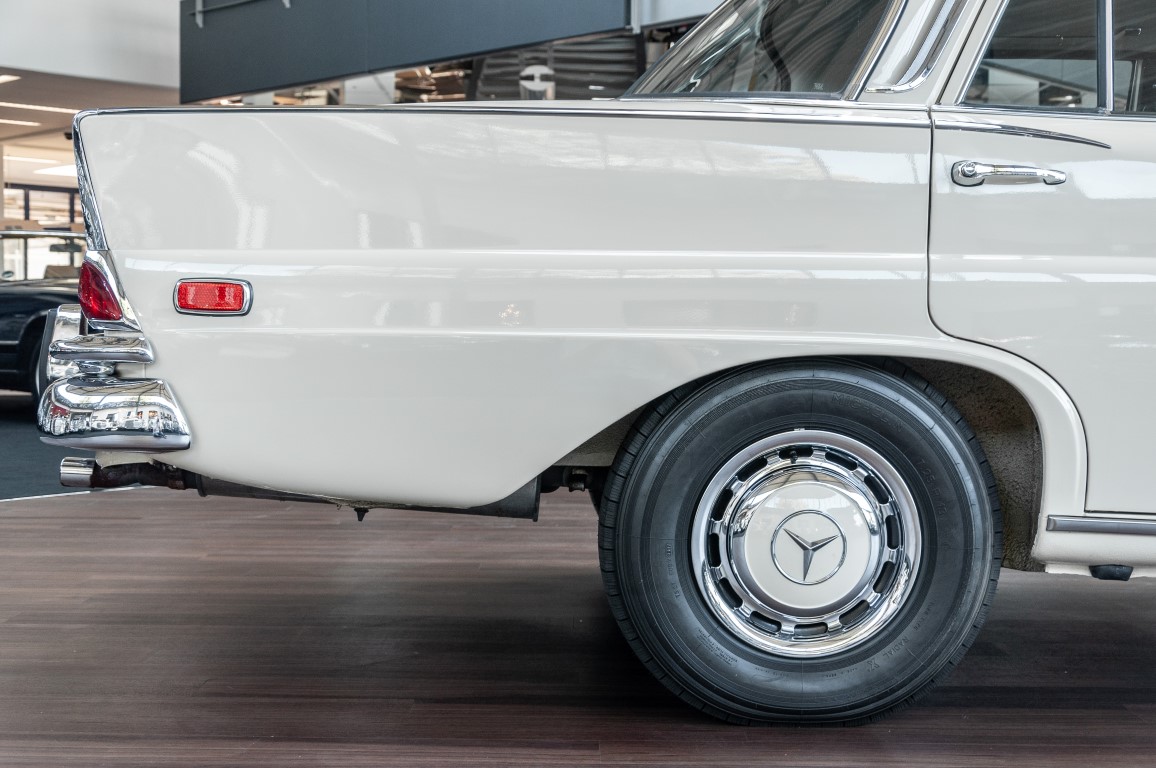 Diese elegante Mercedes-Benz 230S Heckflossen-Limousine wurde Ende 1967 von Frankie L. Kraus aus Houston/Texas/USA geordert und am 06.03.1968 an ihn erstausgeliefert. Leider hatte sich zwischenzeitlich sein Gesundheitszustand so verschlechtert, dass er nicht mehr in der Lage war den Wagen zu fahren. Er wollte sich von seinem Traumwagen nicht trennen und behielt ihn bis zu seinem Tod im Frühjahr 1985.
