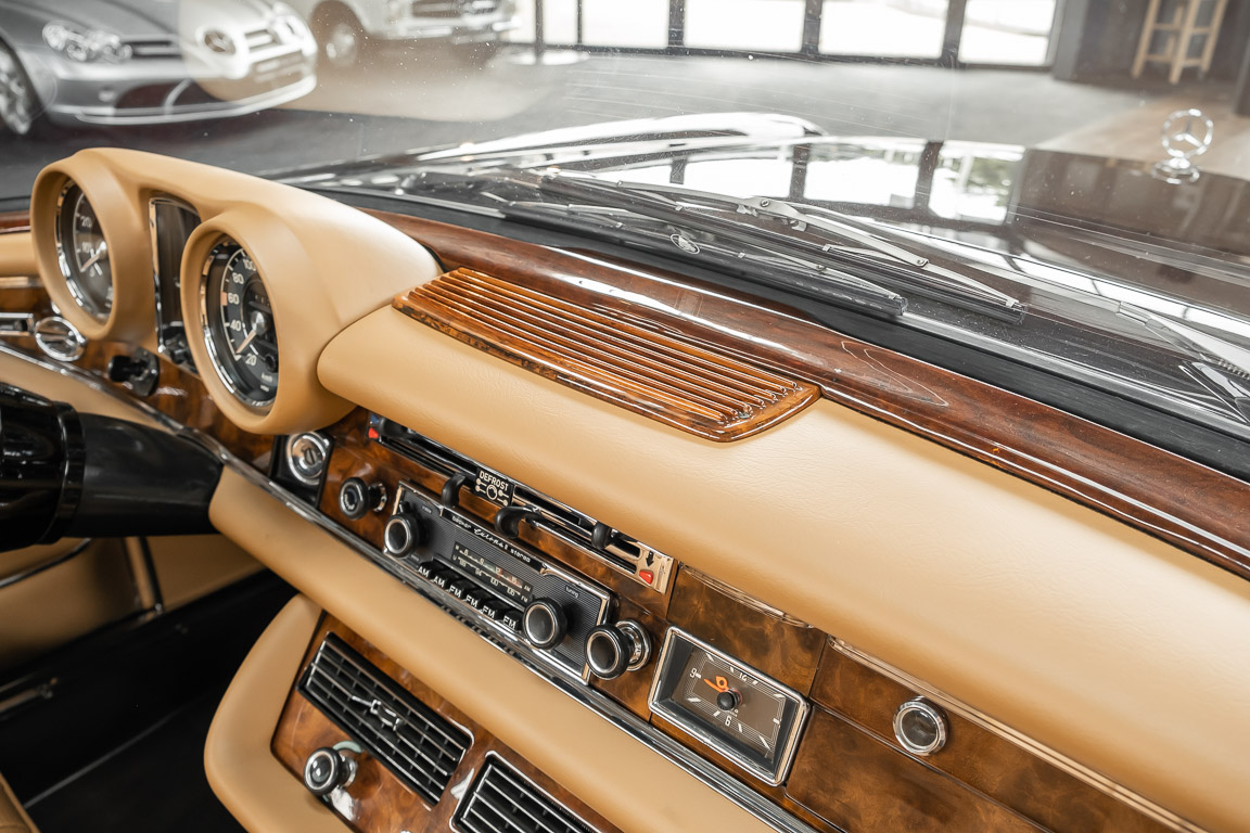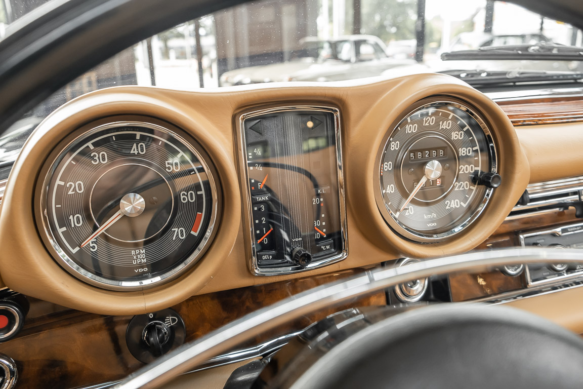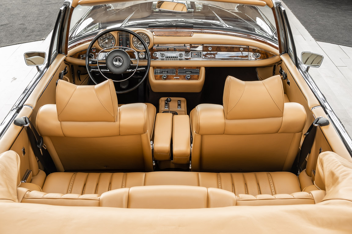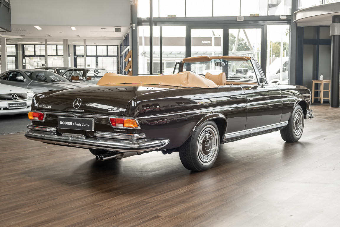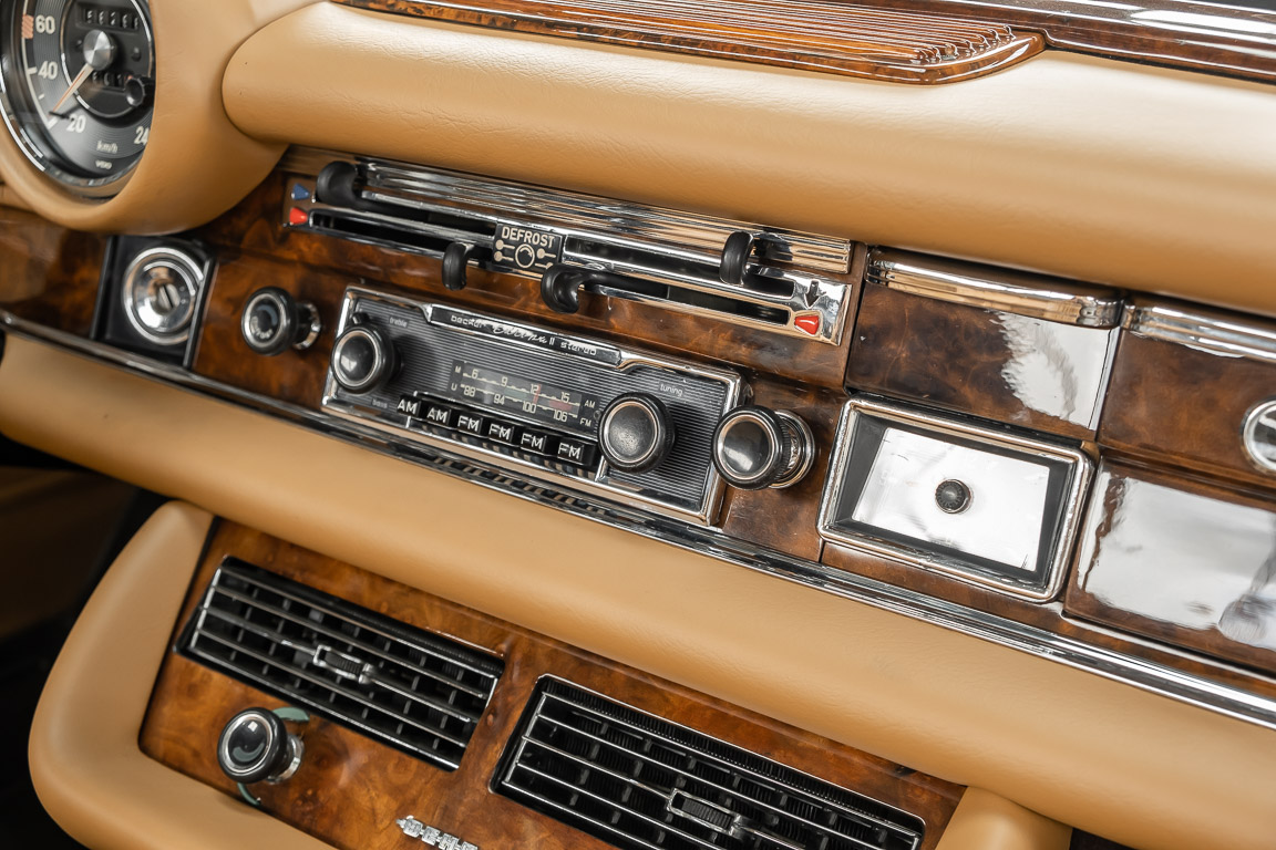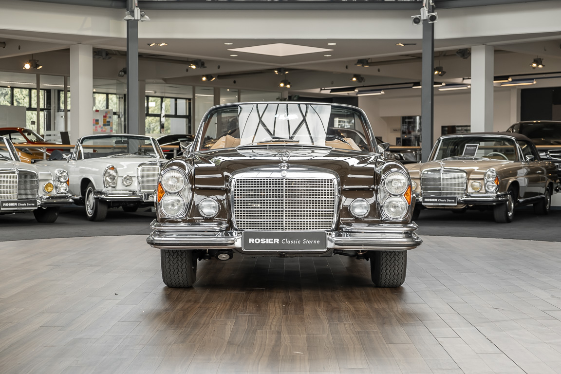 Dieses elegante 280SE 3.5 Liter Cabriolet wurde im Frühjahr 1971 bei Mercedes-Benz in Deutschland fertiggestellt und nach South Carolina/USA verschifft. Die Ausstattung war exzellent und umfasste ein Becker Radio, Klimaanlage aus dem Hause BEHR und Automatik Getriebe mit Mittelschaltung. Der Erstbesitzer hatte den Wagen in elegantem Tabakbraun in Verbindung mit cognacfarbenem Lederinterieur geordert, das mit der dunkelbraunen Wurzelholzausführung des  Armaturenbretts besonders harmoniert. Das elegante Cabriolet blieb lange Jahre in South Carolina und fand in 2012 seinen Weg nach Georgia/USA. Von dort kam der Wagen in 2014 nach Deutschland und wurde über die Mercedes-Benz Niederlassung in Hannover an seinen bisherigen Besitzer verkauft. Der Wagen wurde sorgfältig überarbeitet und erhielt in diesem Zug eine neue Lederausstattung in feinster Qualität. Sie unterstreicht eindrucksvoll die schier unendliche Eleganz dieses 280 SE 3.5 Liter Cabriolets. Machen Sie sich am besten selbst ein Bild in unseren Räumlichkeiten, Sie werden begeistert sein.