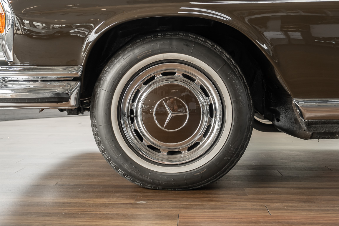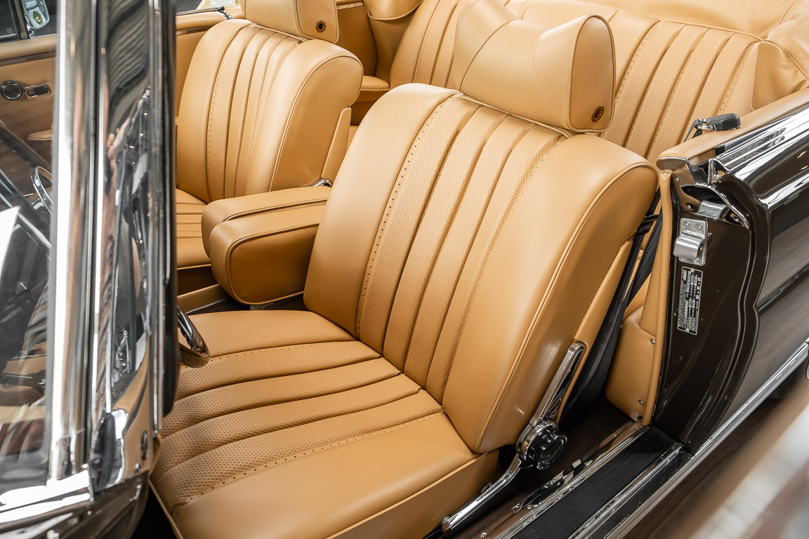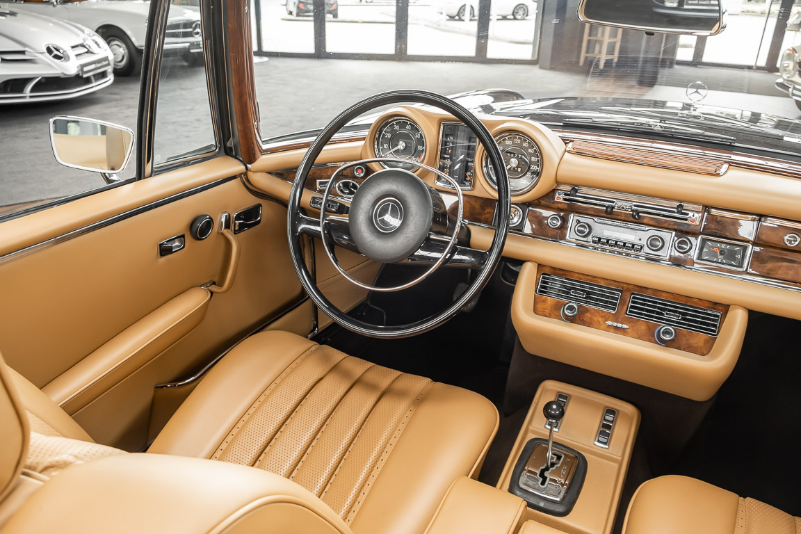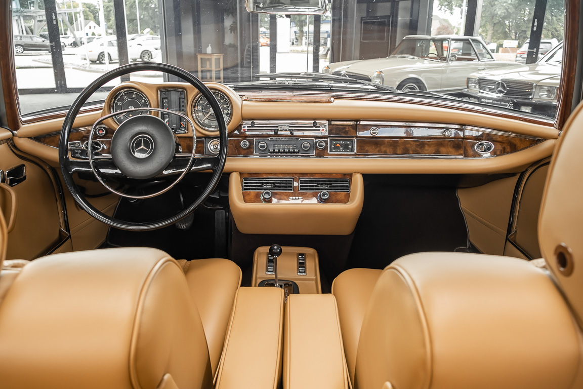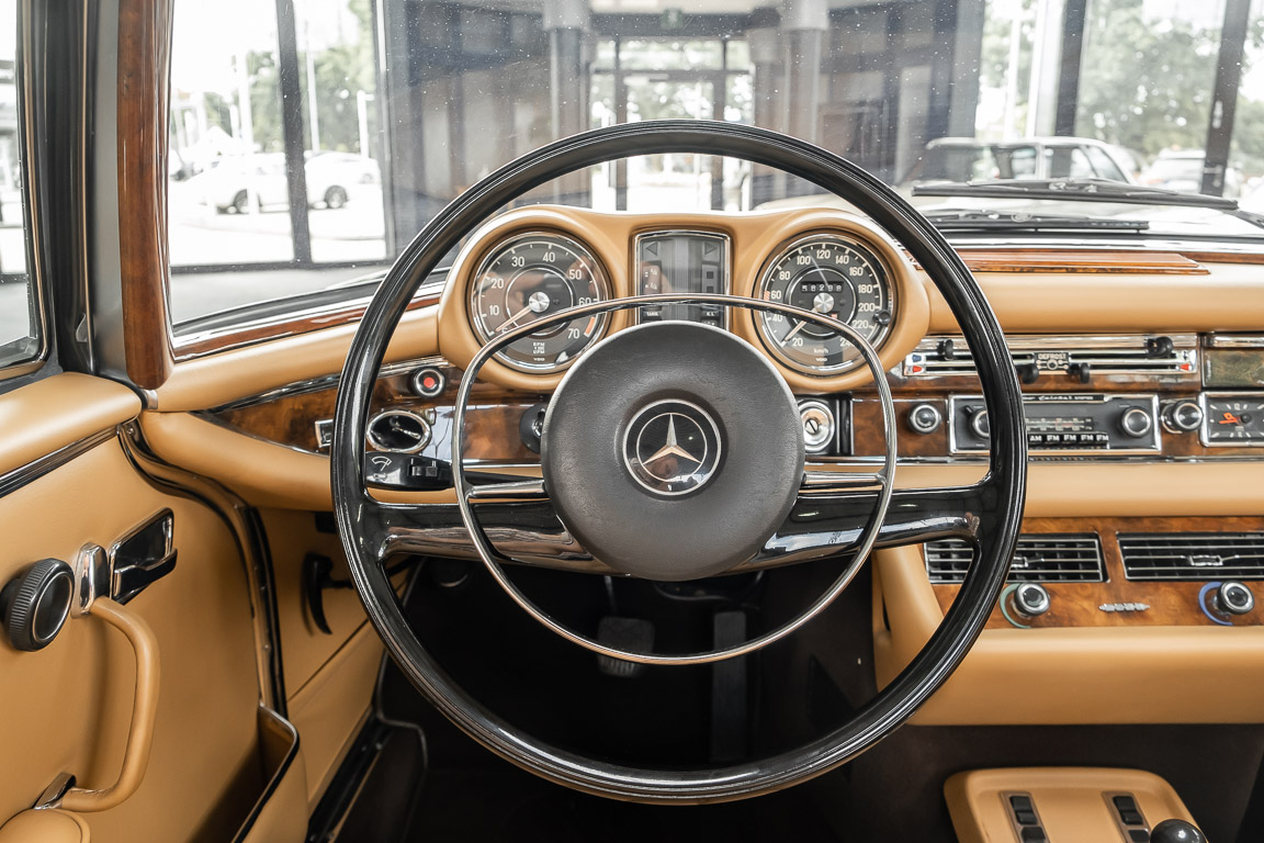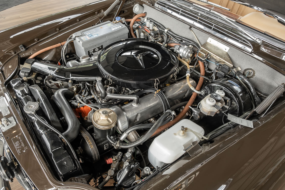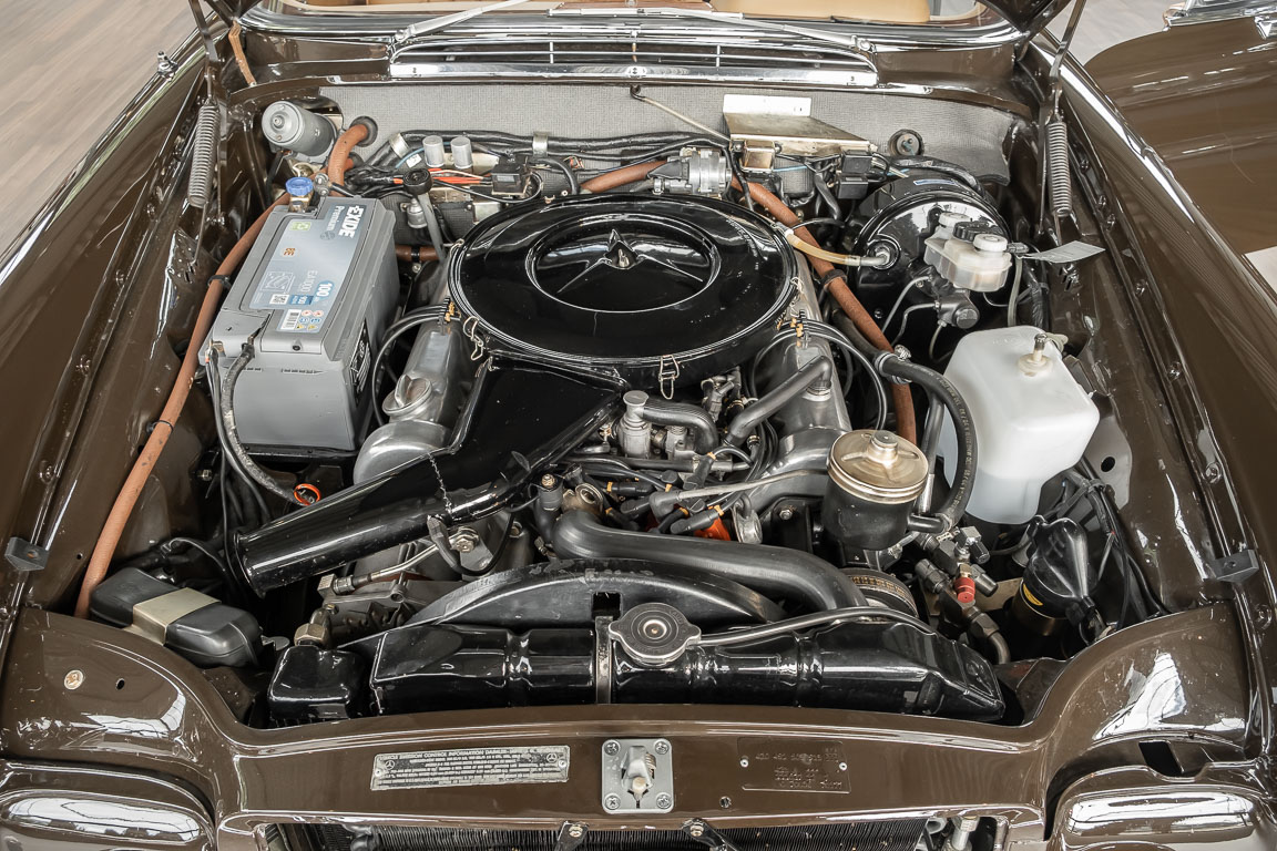 Dieses elegante 280SE 3.5 Liter Cabriolet wurde im Frühjahr 1971 bei Mercedes-Benz in Deutschland fertiggestellt und nach South Carolina/USA verschifft. Die Ausstattung war exzellent und umfasste ein Becker Radio, Klimaanlage aus dem Hause BEHR und Automatik Getriebe mit Mittelschaltung. Der Erstbesitzer hatte den Wagen in elegantem Tabakbraun in Verbindung mit cognacfarbenem Lederinterieur geordert, das mit der dunkelbraunen Wurzelholzausführung des  Armaturenbretts besonders harmoniert. Das elegante Cabriolet blieb lange Jahre in South Carolina und fand in 2012 seinen Weg nach Georgia/USA. Von dort kam der Wagen in 2014 nach Deutschland und wurde über die Mercedes-Benz Niederlassung in Hannover an seinen bisherigen Besitzer verkauft. Der Wagen wurde sorgfältig überarbeitet und erhielt in diesem Zug eine neue Lederausstattung in feinster Qualität. Sie unterstreicht eindrucksvoll die schier unendliche Eleganz dieses 280 SE 3.5 Liter Cabriolets. Machen Sie sich am besten selbst ein Bild in unseren Räumlichkeiten, Sie werden begeistert sein.
