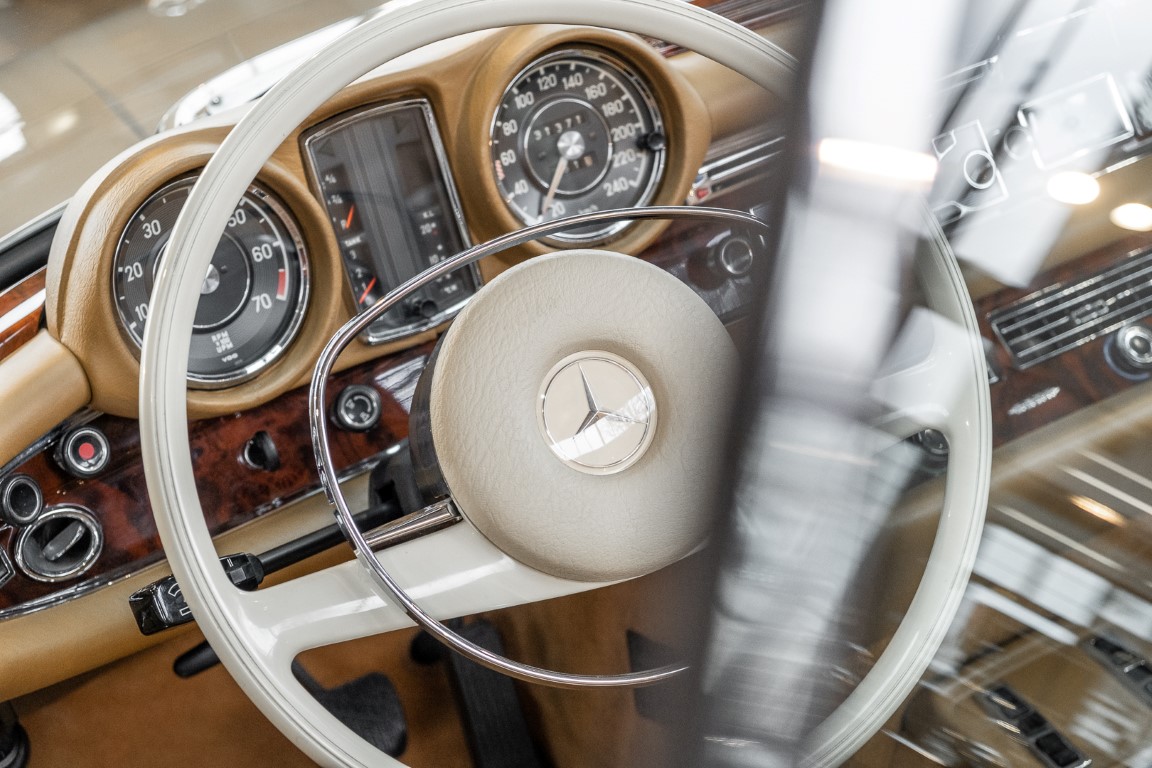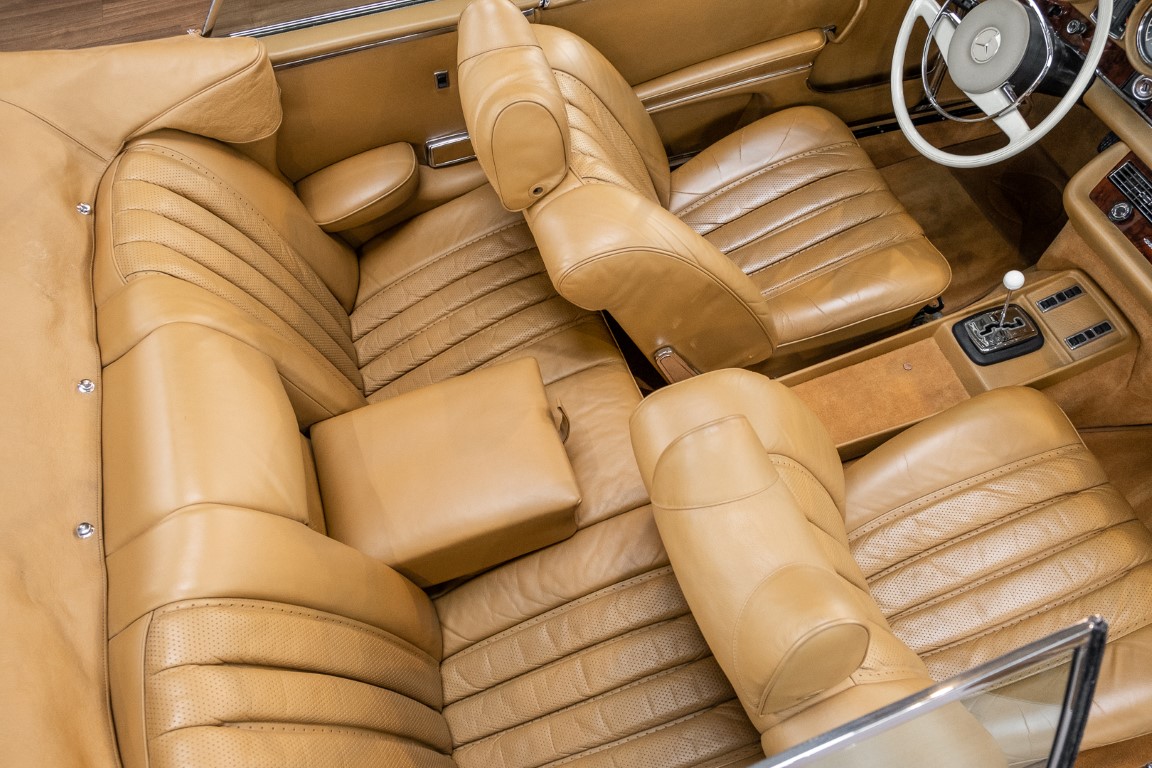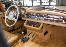 In 2010 kam der Wagen zurück nach Deutschland. Die 280 SE 3.5 Cabriolets der Mercedes 111er Reihe standen schon von Anfang an in der Beliebtheitsscala der Klassiker Freunde an ganz hoher Stelle und waren im Oldtimer Markt sehr gesucht. Rosier Classic-Sterne hatte den Wagen gekauft und trotz außergewöhnlich guter Basis einer umfangreichen Überarbeitung unterzogen. So wurde der Wagen bis auf die Rohkarosse zerlegt, alles überprüft und Stück für Stück wieder zusammengebaut. Das sehr gut erhaltene Originalleder wurde von einem deutschen Spitzensattler vorsichtig überarbeitet und präsentiert sich in einmalig gutem Zustand. Wir hatten im Anschluss den Wagen an einen Sammler verkaufen können, der das Cabriolet ab und an bei gutem Wetter nutzte und aus dessen Sammlung wir das Fahrzeug nun – aufgrund der Vielzahl an Fahrzeugen – verkaufen dürfen. Der hohe Qualitötsanspruch des Sammlers bewegte ihn dazu, den Motor durch die Spezialistenhand im Motorenbau unserer Manufaktur umfangreich überarbeiten zu lassen, sodass das legendäre 3,5-Liter Triebwerk nun ebenfalls im neuen Glanz erstrahlt und der Optik in Nichts nachsteht. – Erleben Sie es selbst und machen Sie sich ein Bild von dieser Ikone!