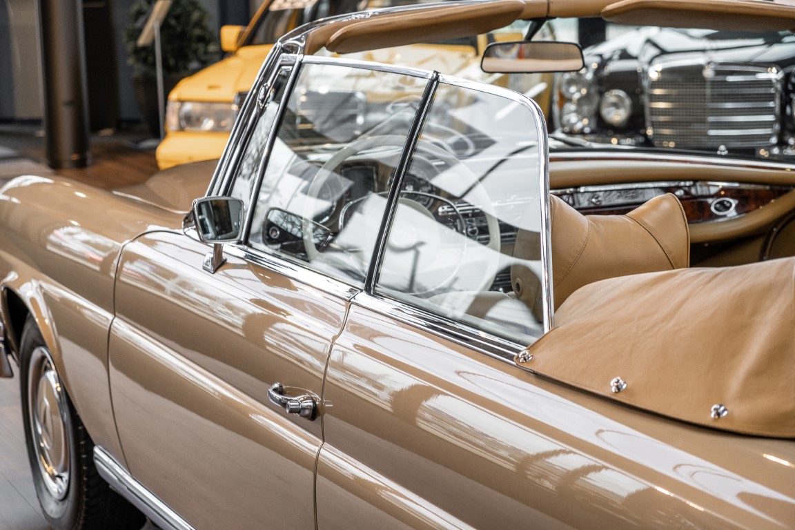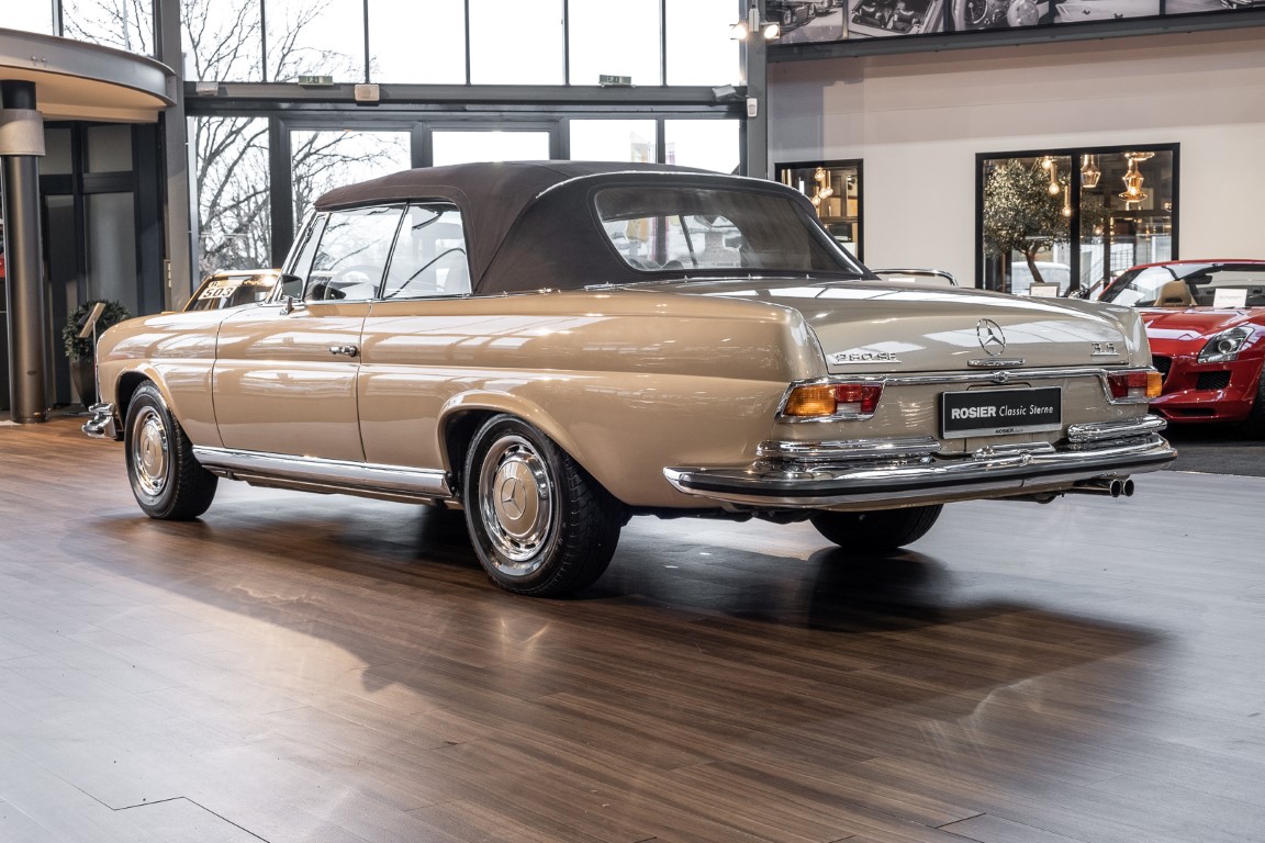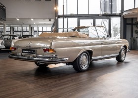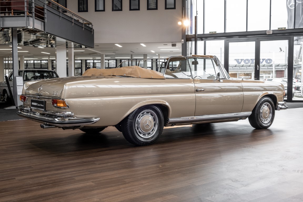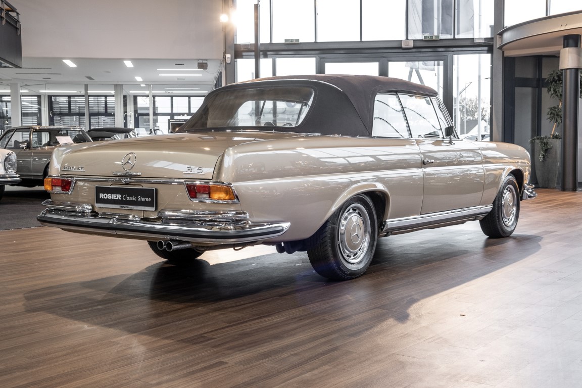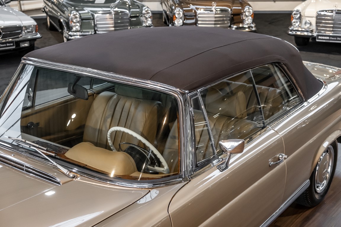 Das hier angebotene 280 SE 3.5 Cabriolet in sandbeige-metallic wurde am 01.04 1971 an ein in München ansässiges Unternehmen ausgeliefert. Der Wagen wurde regelmäßig bei dem Mercedes-Benz Partner Werlin in Rosenheim gewartet, was dem originalen Kundendienstscheckheft eindrucksvoll zu entnehmen ist. Als das elegante Cabriolet in den 1980er Jahren verkauft wurde, fand es sein neues Zuhause im fernen Japan. Es erhielt einen würdigen Platz in einem anerkannten Museum in Tokyo/Japan und blieb dort über 20 Jahre.