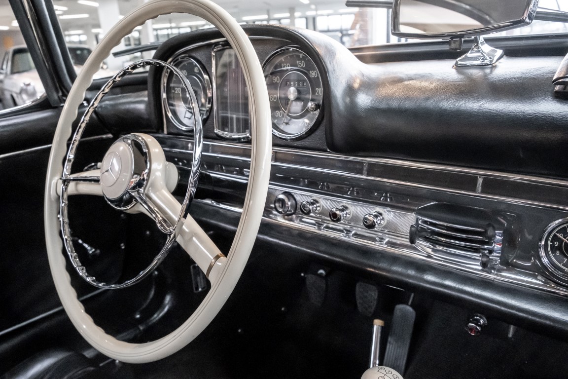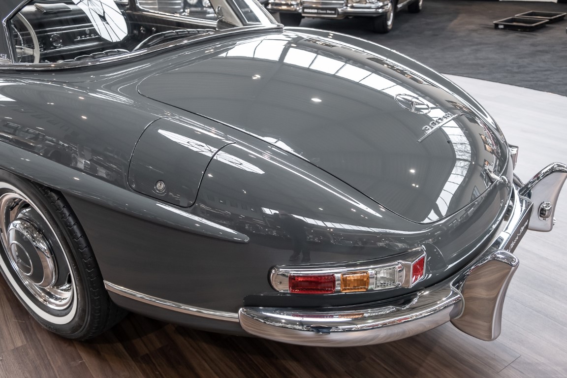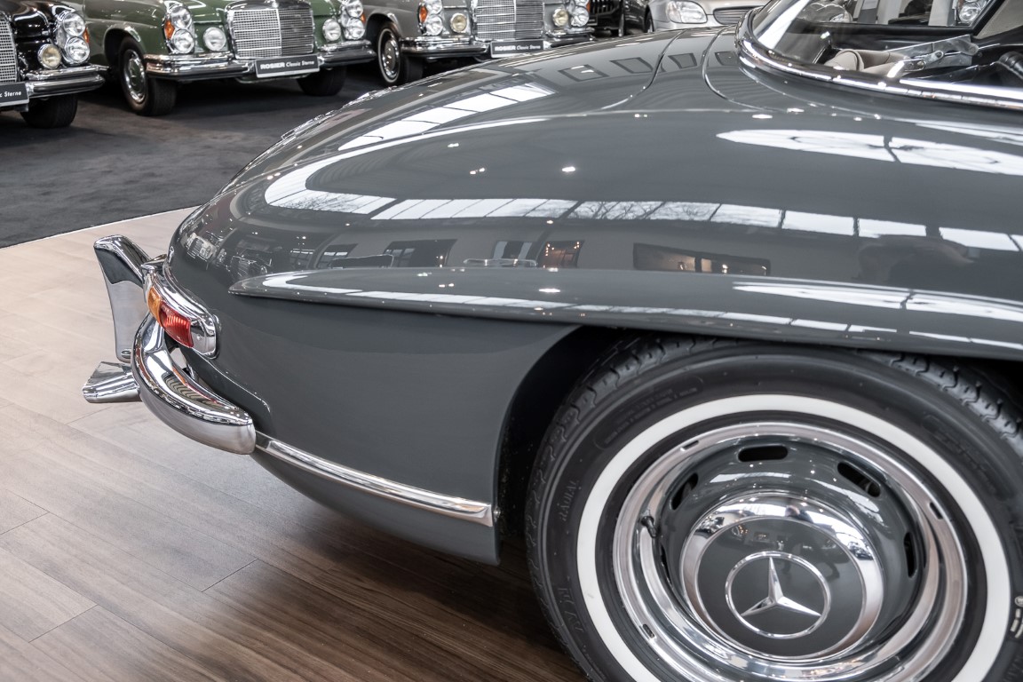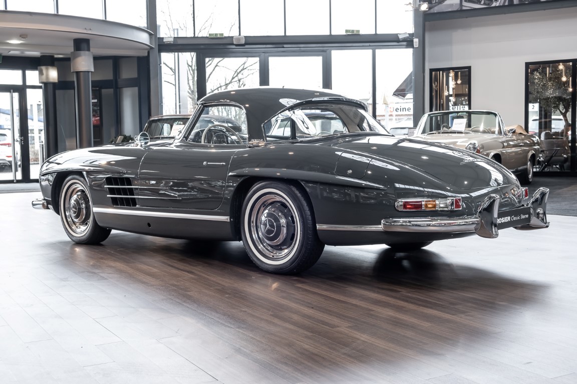 Dieser wundervolle 300 SL Roadster wurde am 02. September 1962 in Sindelfingen fertiggestellt und wurde anschließend an einen niederländischen Mercedes-Benz Händler ausgeliefert. Insgesamt drei Jahre wartete dieser Traum-Roadster auf seinen Erstbesitzer, einem wohlhabenden Herren aus Tilburg. Bis 1972 verbleib das Fahrzeug im Erstbesitz. Anschließend erwarb eine niederländische Familie das Fahrzeug, finanziert durch einen Goldbarren, der bei einer Schweizer Bank eingelagert war. Bis zum Jahre 2008 verblieb das Fahrzeug in der Familie und wurde als „Familienschatz“ mehr oder weniger unberührt gelassen. Das änderte sich im Januar 2009, als das Fahrzeug zum Spezialisten HK Engineering nach Stuttgart überführt wurde. Eine allumfassende und qualitativ perfekte Restauration des Fahrzeuges wurde ohne Rücksicht auf jegliche Kosten umgesetzt. Das Ergebnis ist, optisch wie auch technisch betrachtet, ein Ausnahme-Roadster, wie man ihn wohl nur noch extrem selten vorfindet.
