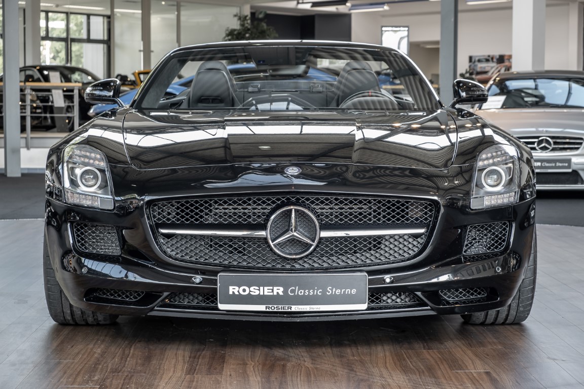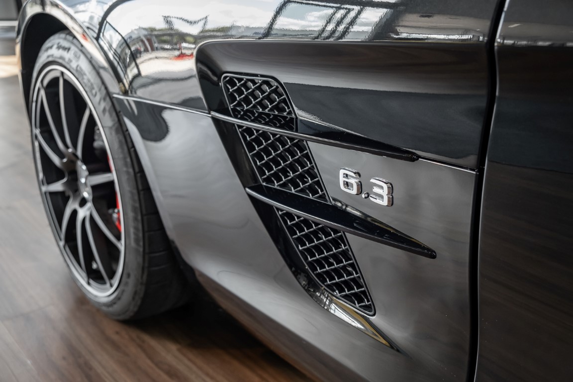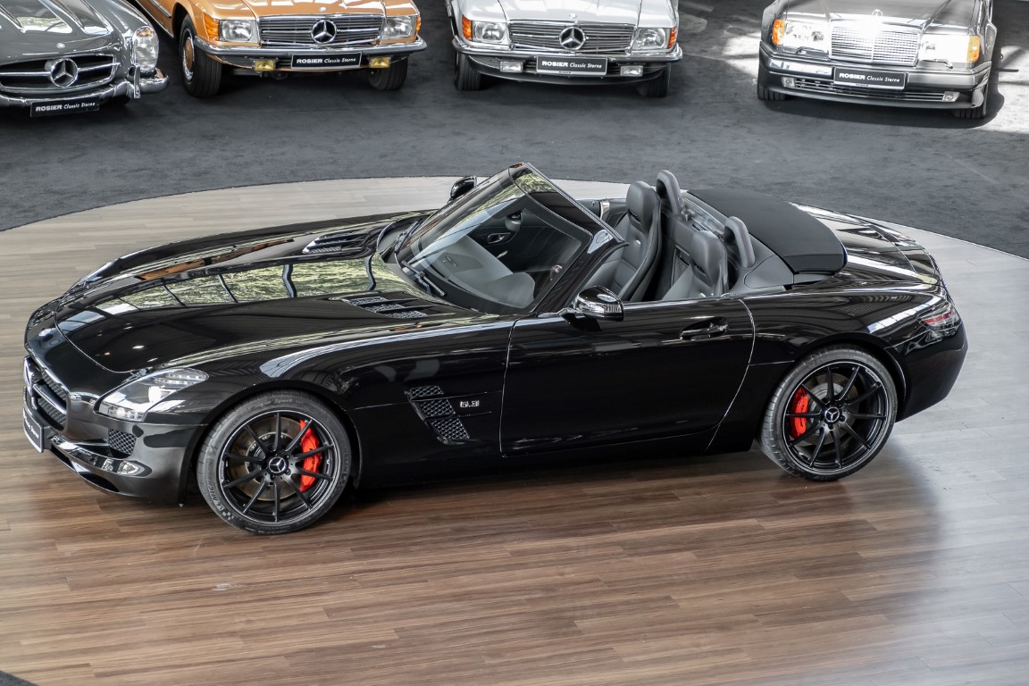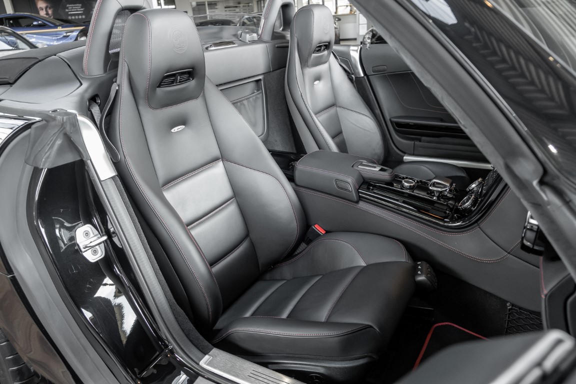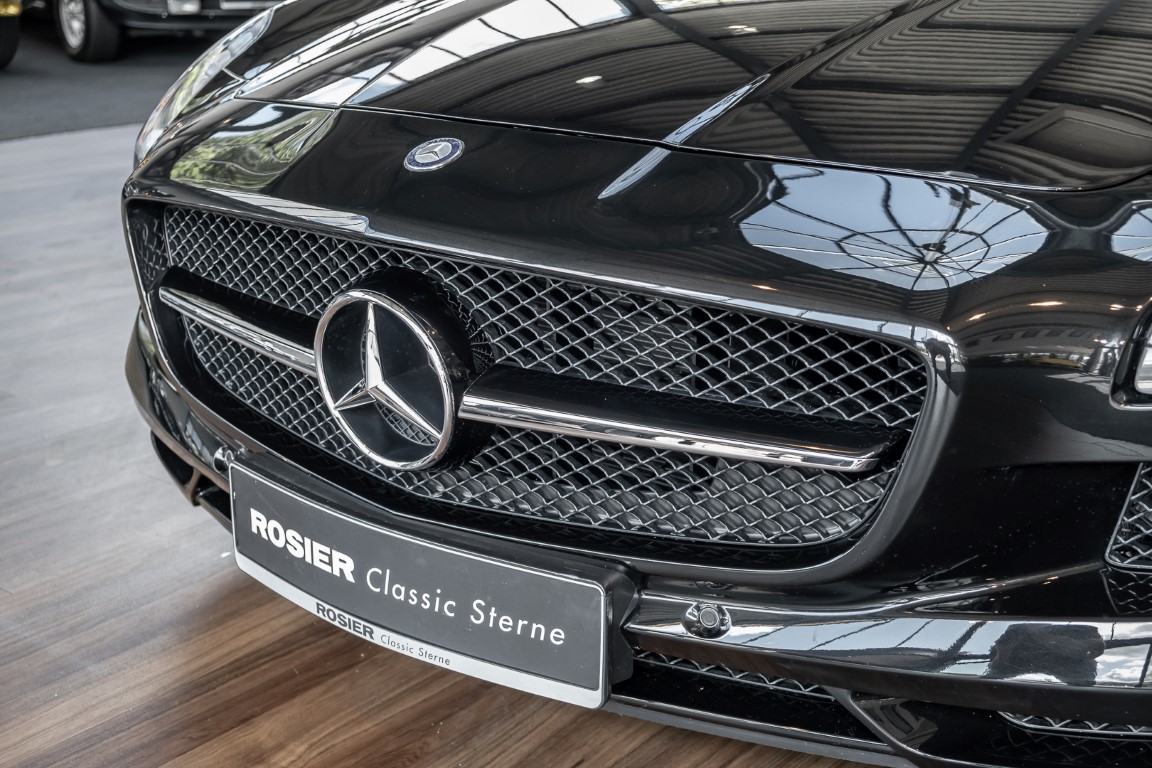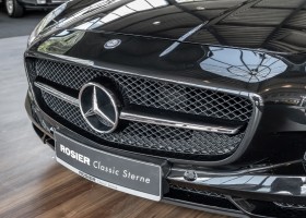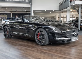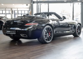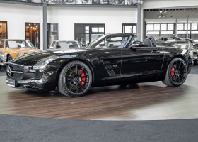 Im Herbst 2011 wurde die Roadster Variante des SLS auf der IAA in Frankfurt vorgestellt. Der Name SLS bedeutet: „Sport Leicht Super“. Der SLS ist das erste von AMG eigenständig entwickelte Fahrzeug. Ein einzelner Spezialist ist damit beschäftigt den Motor von Hand zusammenzusetzen. Auf einer eigens angebrachten Plakette „bürgt“ seine eingravierte Unterschrift für die von Ihm geleistete Qualitätsarbeit. Gebaut wird das Fahrzeug im Werk Sindelfingen. DER SLS AMG GT ist eine überarbeitete Variante des SLS AMG, dessen Motorleistung auf 435 Kw/591PS gesteigert wurde. Das AMG Ride Control Performance Fahrwerk und das Speedshift Automatikgetriebe wurden verbessert. Optische Änderungen durch abgedunkelte Scheinwerfer und Rückleuchten und ein GT-Emblem am Heck sollten den SLS AMG GT nach außen kenntlich machen. Das Interieur wurde mit Alcantara-Streifen auf den Sitzen, roten Nähten und schwarzen Hochglanz-Zierteilen verfeinert. Die Bauzeit war von 10.2012 bis 06.2014. Schon kurz nach Produktionsende der GT-Version stieg die Nachfrage in Sammlerkreisen enorm an. Die Listenpreise wurden schnell überboten. Heute ist ein GT mit wenigen Kilometern so gut wie nicht zu bekommen. Wir freuen uns sehr, Ihnen eines dieser seltenen Fahrzeuge hier anbieten zu können. Nach den bisherigen Erfahrungen ist neben bestem Werterhalt auch ein interessanter Wertzuwachs zu erwarten.