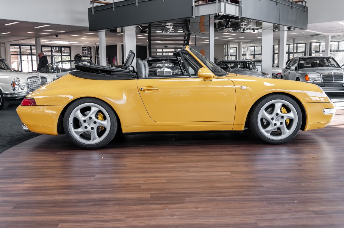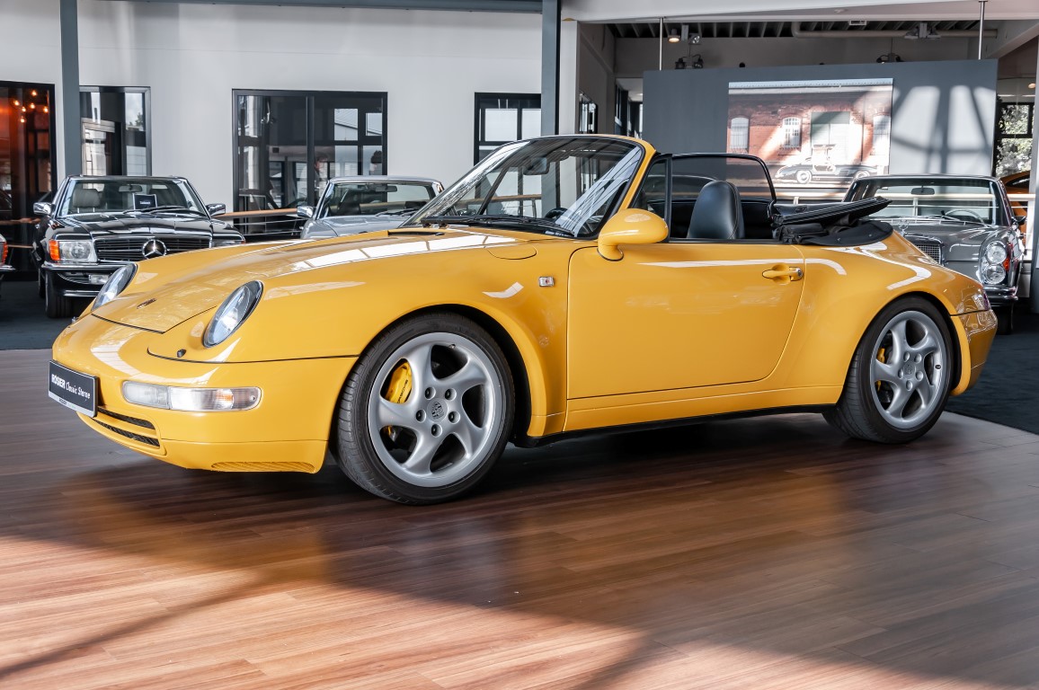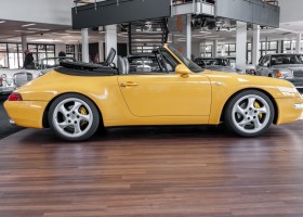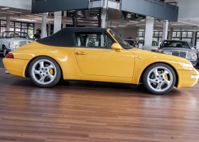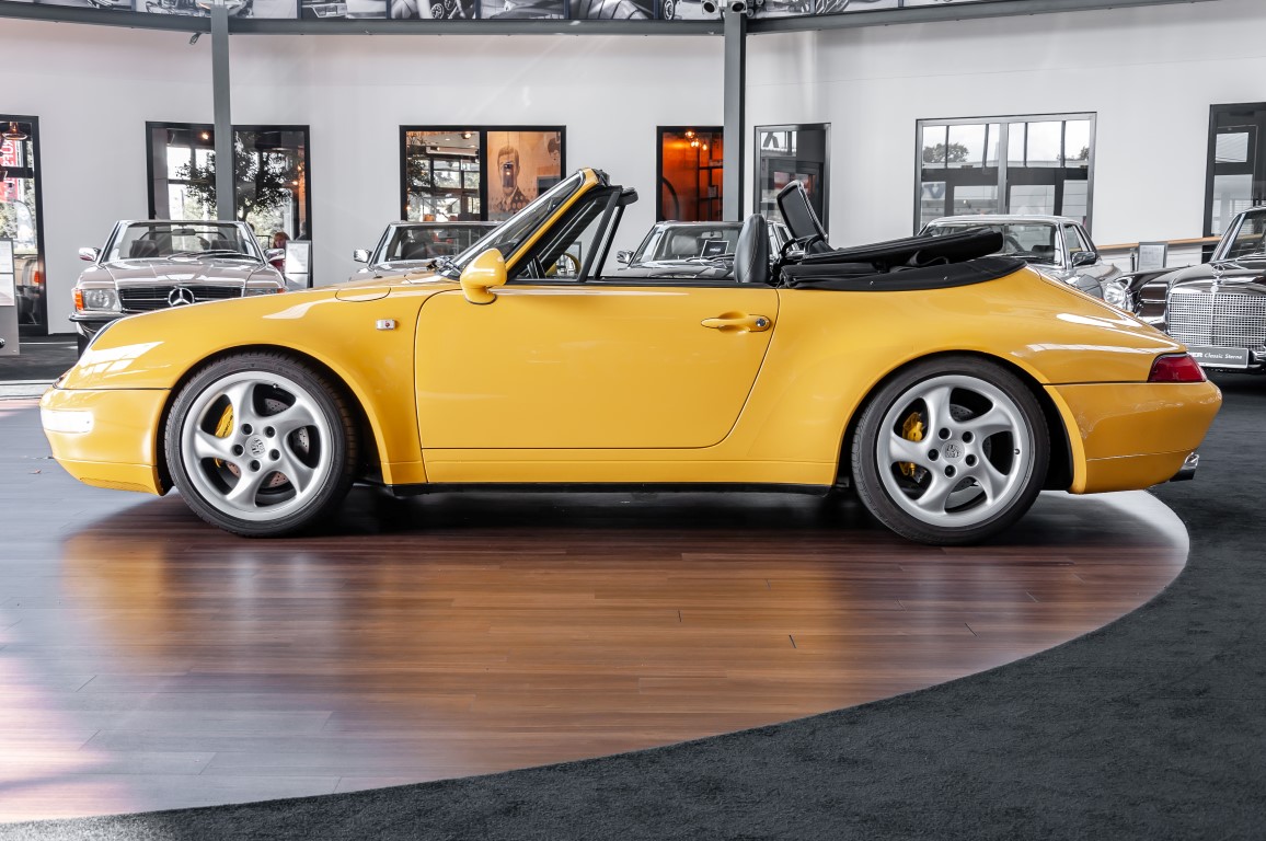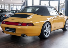 Dieses Porsche 993 Cabriolet wurde am 20. Februar 1995, in sportlichem Speedgelb und schwarzer Lederausstattung, an seinen Erstbesitzer im Bayrischen Germeringen ausgeliefert. Bei Ihm verblieb der Wagen die nächsten rund 14 Jahre. Etwa 80.000 km hatte er gelaufen und wurde bestens gepflegt. Etwa in 2010 fand er ein neues Zuhause in der malerischen Bodeseeregion, oberhalb von Lindau. Dort erwarb ihn sein bis heute letzter Besitzer für seine sorgfältig ausgewählte Sportwagensammlung.