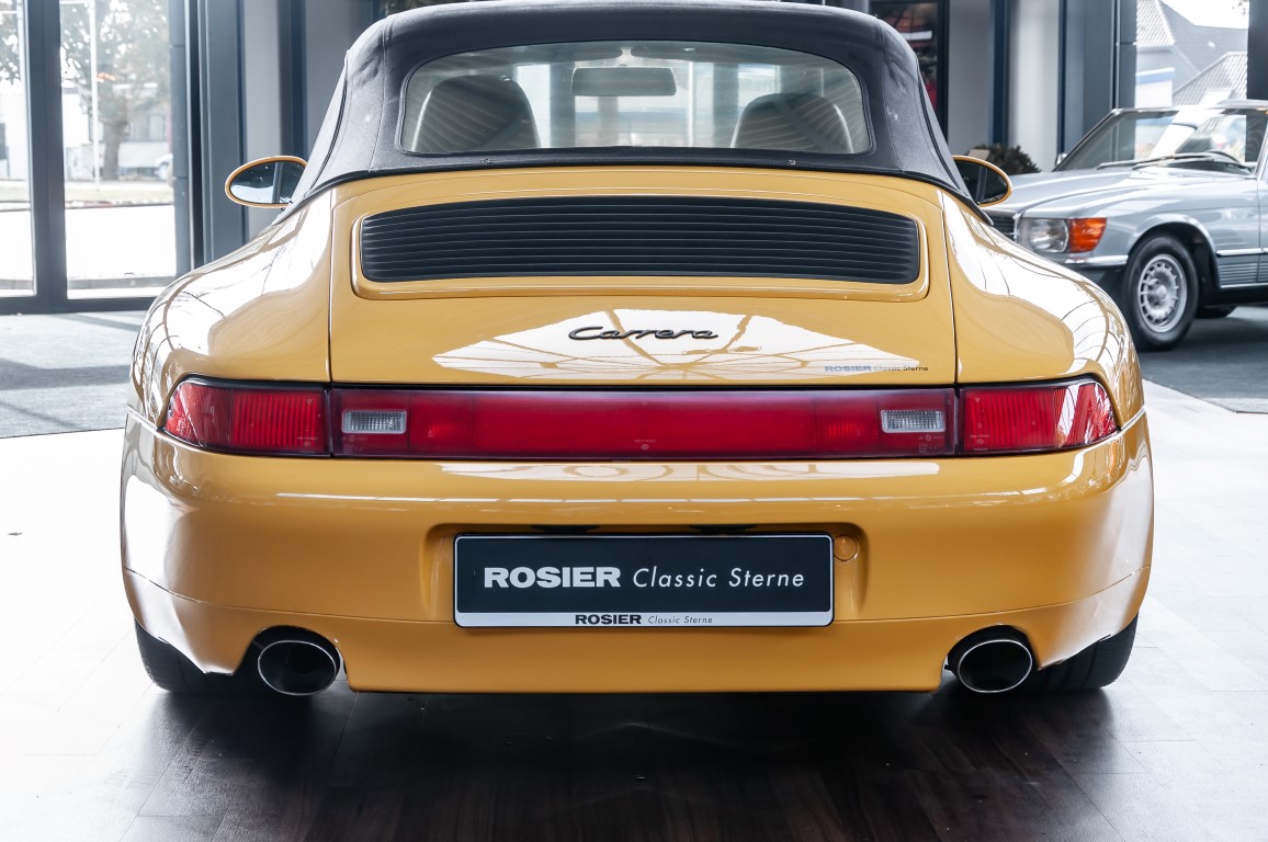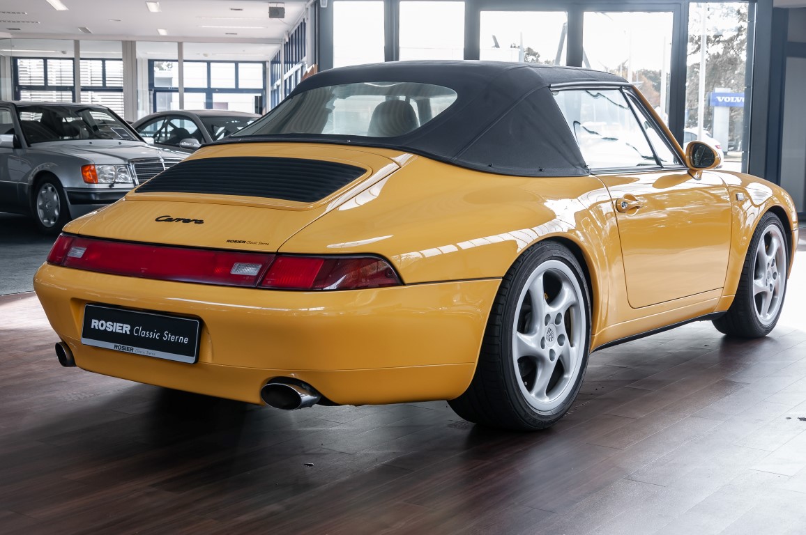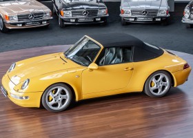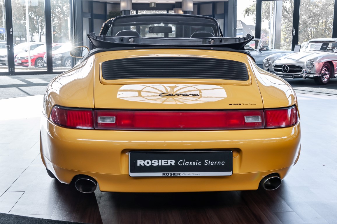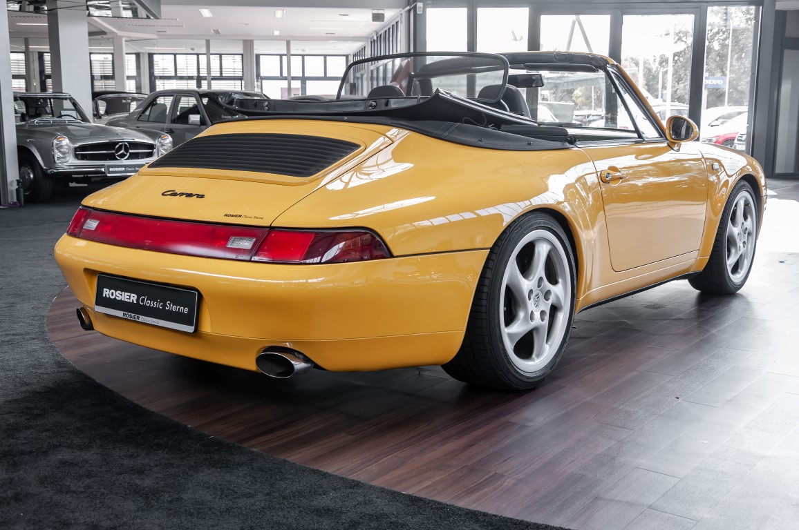 Dieses Porsche 993 Cabriolet wurde am 20. Februar 1995, in sportlichem Speedgelb und schwarzer Lederausstattung, an seinen Erstbesitzer im Bayrischen Germeringen ausgeliefert. Bei Ihm verblieb der Wagen die nächsten rund 14 Jahre. Etwa 80.000 km hatte er gelaufen und wurde bestens gepflegt. Etwa in 2010 fand er ein neues Zuhause in der malerischen Bodeseeregion, oberhalb von Lindau. Dort erwarb ihn sein bis heute letzter Besitzer für seine sorgfältig ausgewählte Sportwagensammlung.
