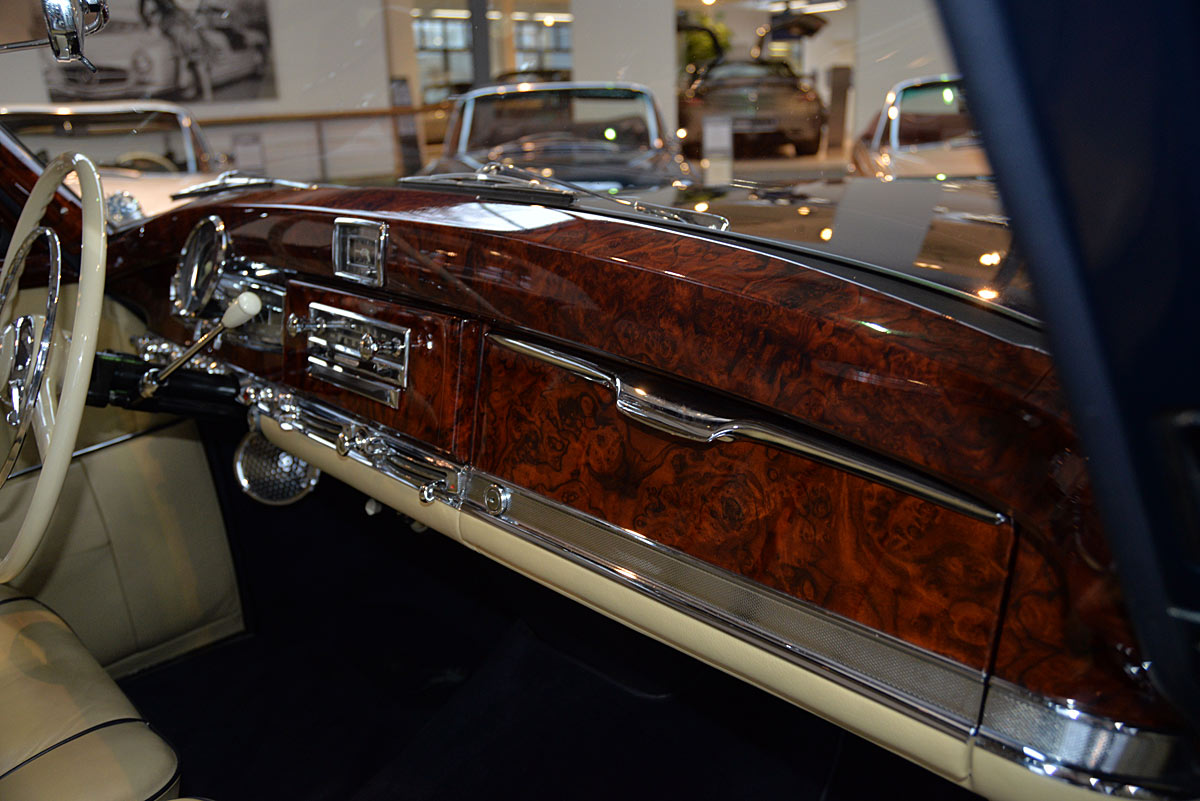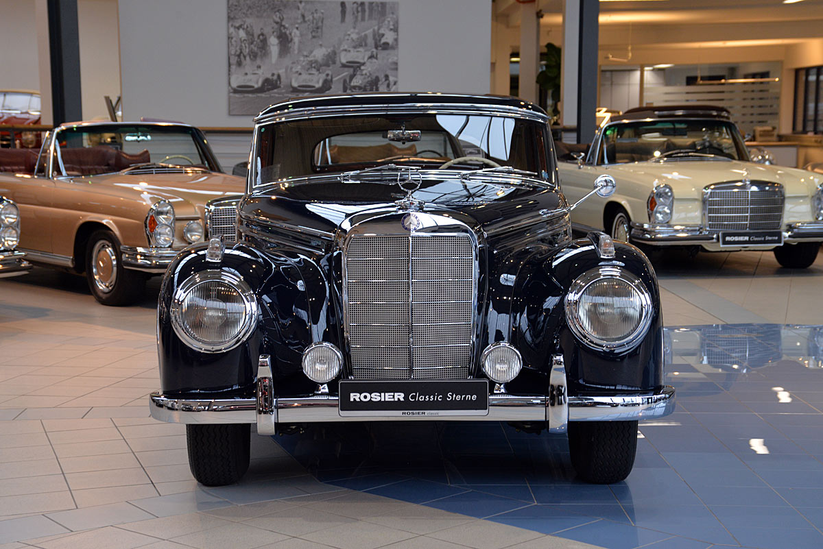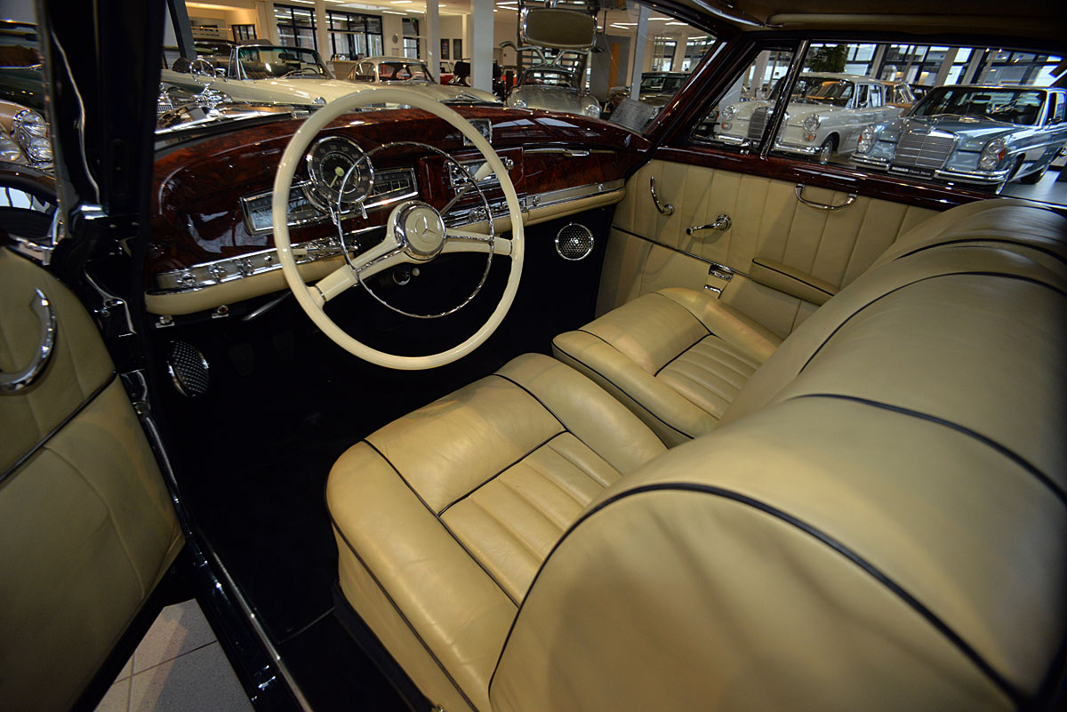 Die Mercedes Reihe W188 wurde im Oktober 1951 auf der Mondial de l‘Automobile in Paris der Öffentlichkeit präsentiert. In 1955 wurde die Modellreihe, die aus Coupé, Cabriolet und Roadster bestand, überarbeitet und in 300 SC umbenannt. Neben reichlich Chromzierrat wurde eine aufwändige Benzineinspritzung verbaut, die dem Wagen kraftvolle 175 PS Leistung bescherte.
