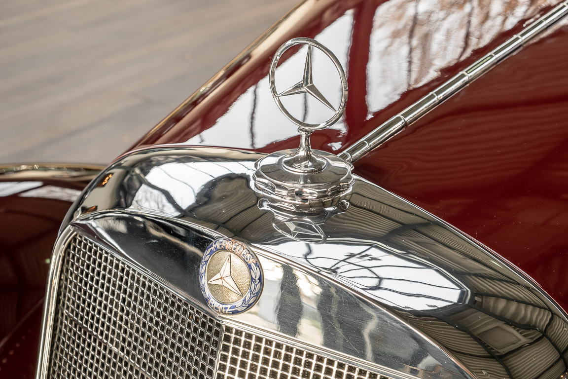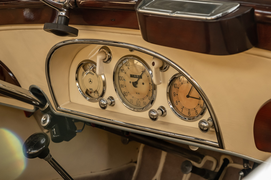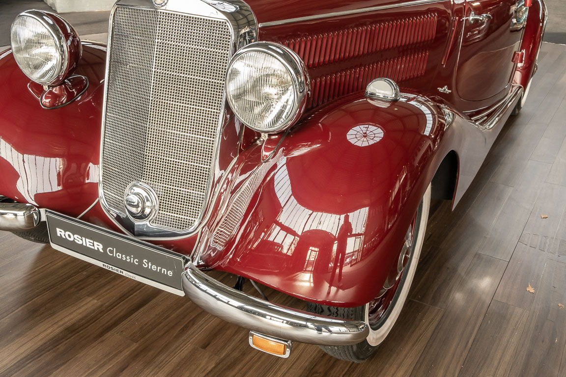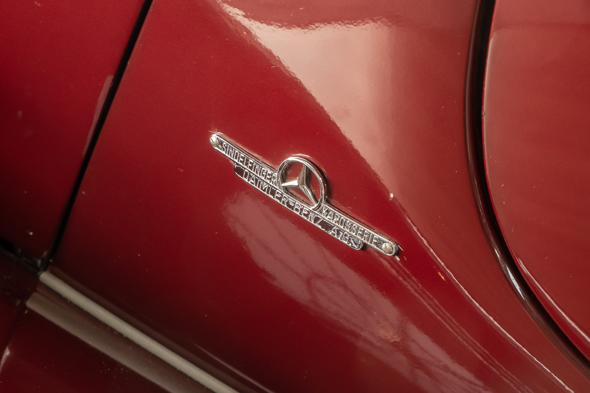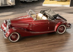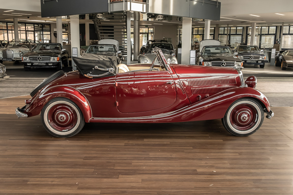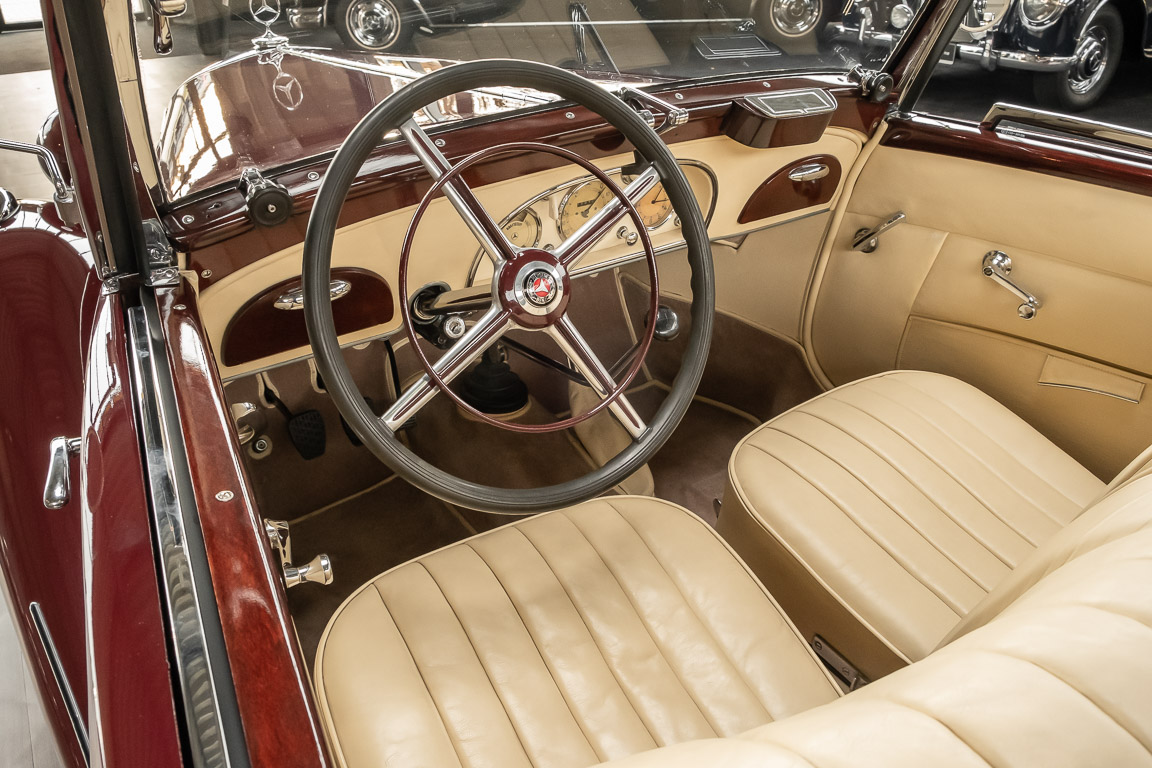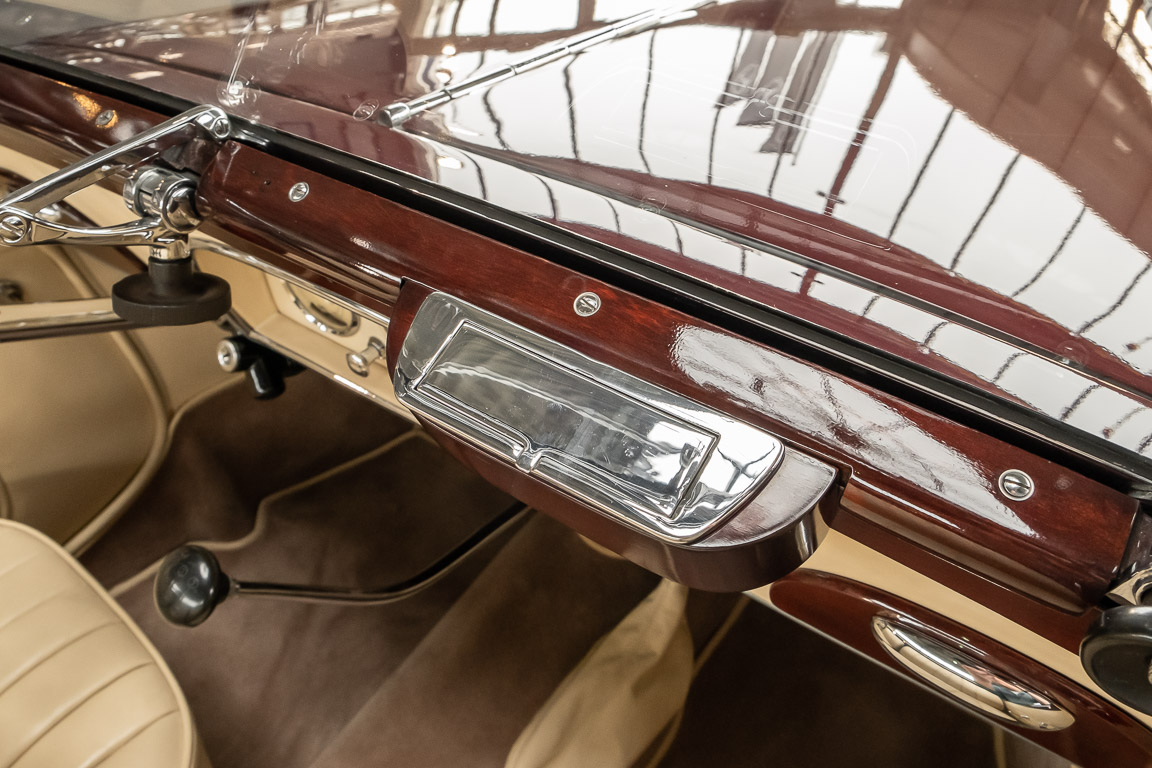 This Mercedes-Benz 170V Cabriolet A from 1938 is a convertible dream with a great history. The car was delivered to Jürgen Voigts in Voigtsgrund in the Gibeon district in October 1938 via the Metje + Ziegler dealership in Windhoek, Namibia, which still exists today. At that time, the farm of the respected German-born Voigts family already covered 160,000 hectares of mostly private land and was known for its herds of 17,000 Karakul sheep. The wagon remained in Namibia during the war years and only returned to Germany after the war. It found its home in the Munich area and in the mid-1960s belonged to the actor Danilo Zschauer from Munich, among others, as can be seen from the original cardboard letter. On August 25, 1978, the convertible came into the possession of a highly successful entrepreneur in the Märkischer Kreis district of North Rhine-Westphalia, according to the original purchase contract available to us. He took excellent care of the car and maintained it, but decided in the mid-1980s to carry out a complete restoration. The restoration was of such quality that even today, many years later, the car presents itself in almost immaculate condition. It invites you to take stylish trips through picturesque landscapes with endless convertible pleasure.
