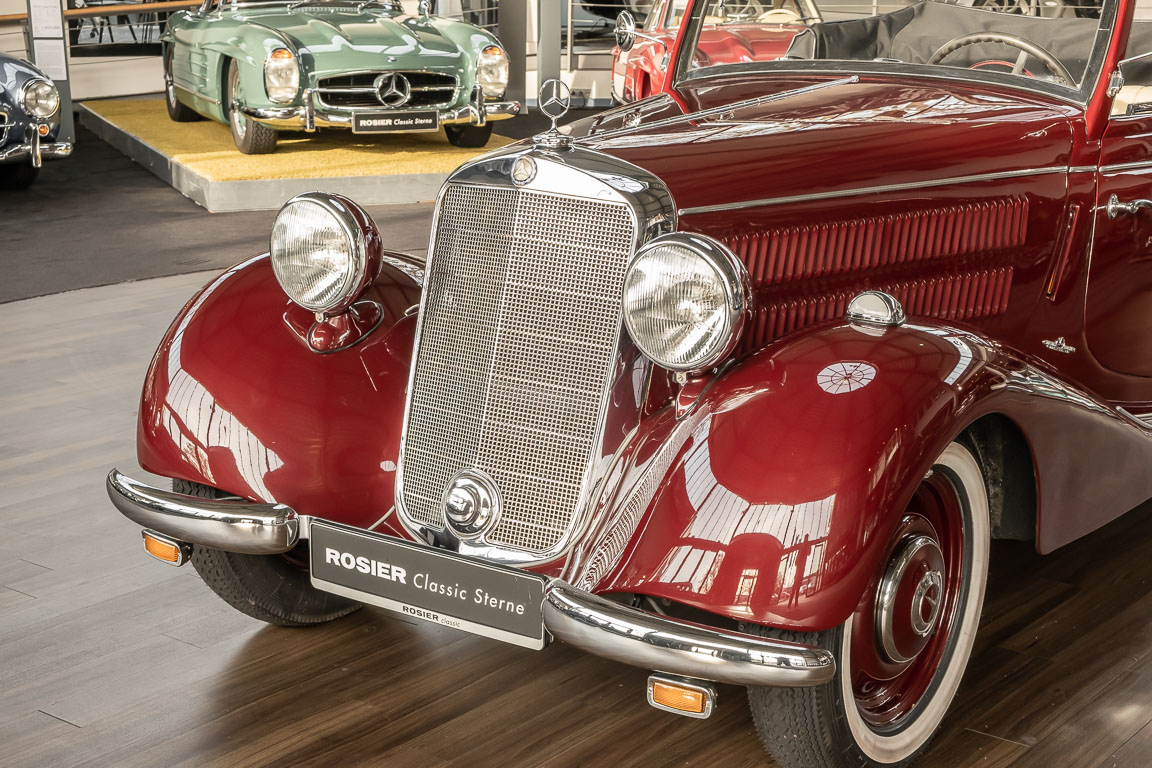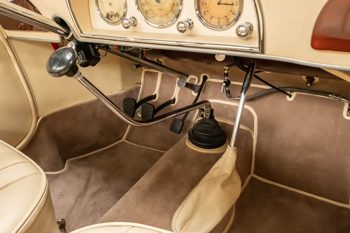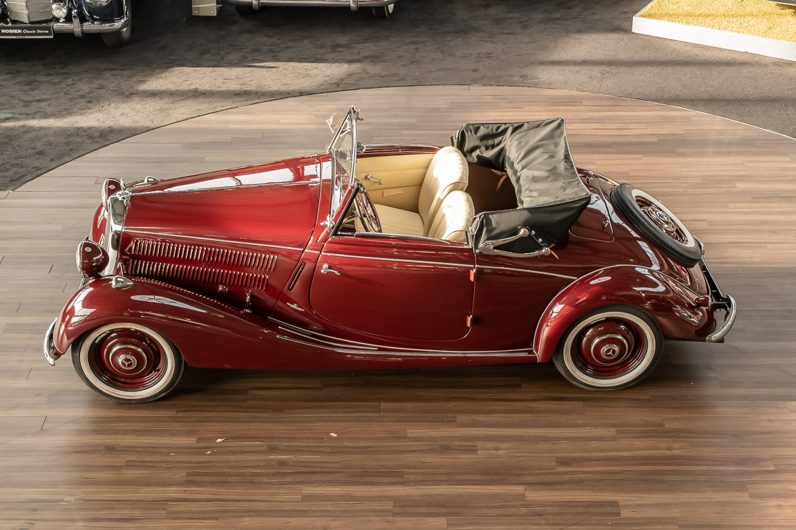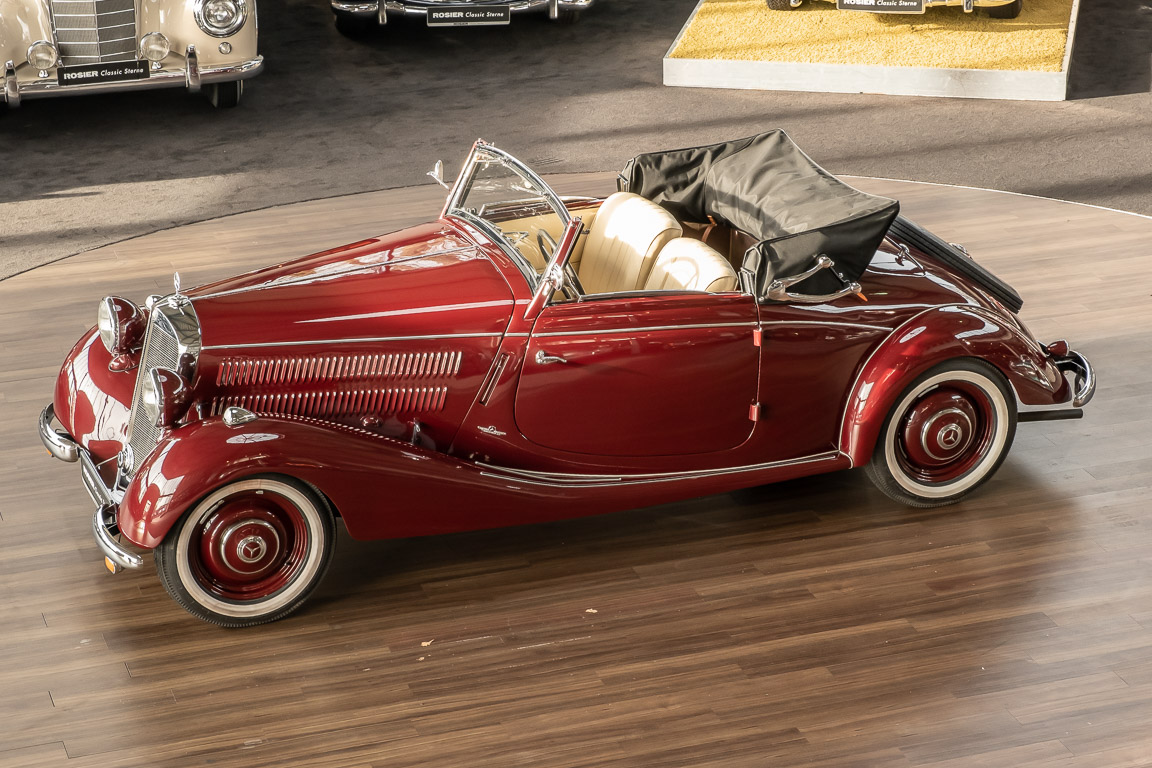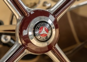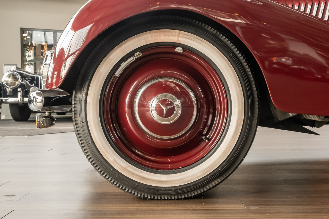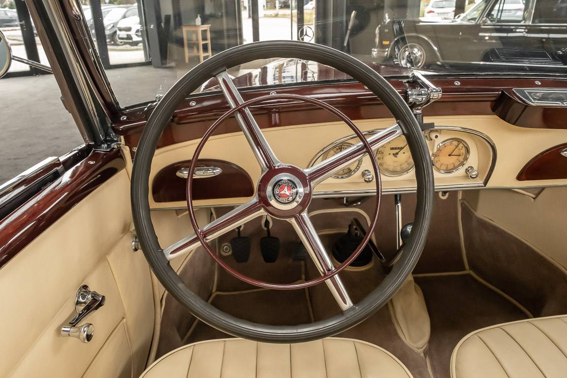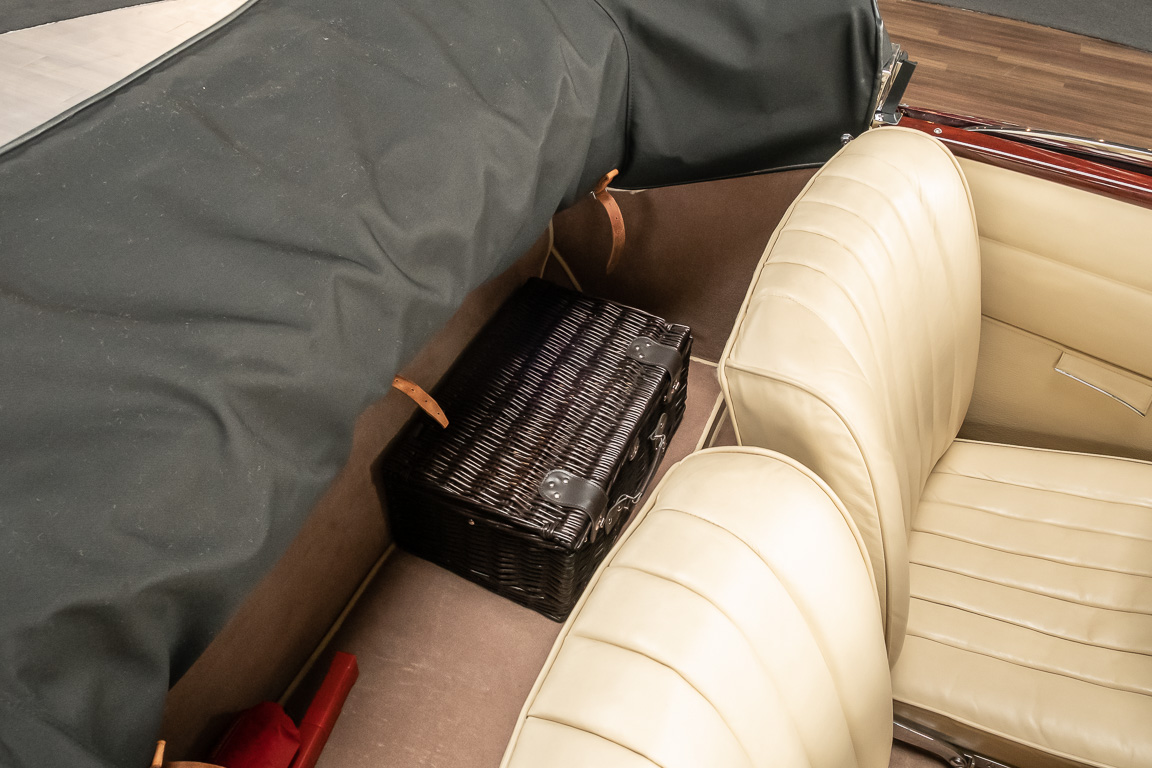 This Mercedes-Benz 170V Cabriolet A from 1938 is a convertible dream with a great history. The car was delivered to Jürgen Voigts in Voigtsgrund in the Gibeon district in October 1938 via the Metje + Ziegler dealership in Windhoek, Namibia, which still exists today. At that time, the farm of the respected German-born Voigts family already covered 160,000 hectares of mostly private land and was known for its herds of 17,000 Karakul sheep. The wagon remained in Namibia during the war years and only returned to Germany after the war. It found its home in the Munich area and in the mid-1960s belonged to the actor Danilo Zschauer from Munich, among others, as can be seen from the original cardboard letter. On August 25, 1978, the convertible came into the possession of a highly successful entrepreneur in the Märkischer Kreis district of North Rhine-Westphalia, according to the original purchase contract available to us. He took excellent care of the car and maintained it, but decided in the mid-1980s to carry out a complete restoration. The restoration was of such quality that even today, many years later, the car presents itself in almost immaculate condition. It invites you to take stylish trips through picturesque landscapes with endless convertible pleasure.