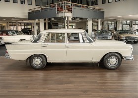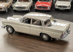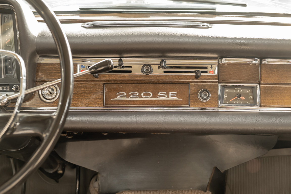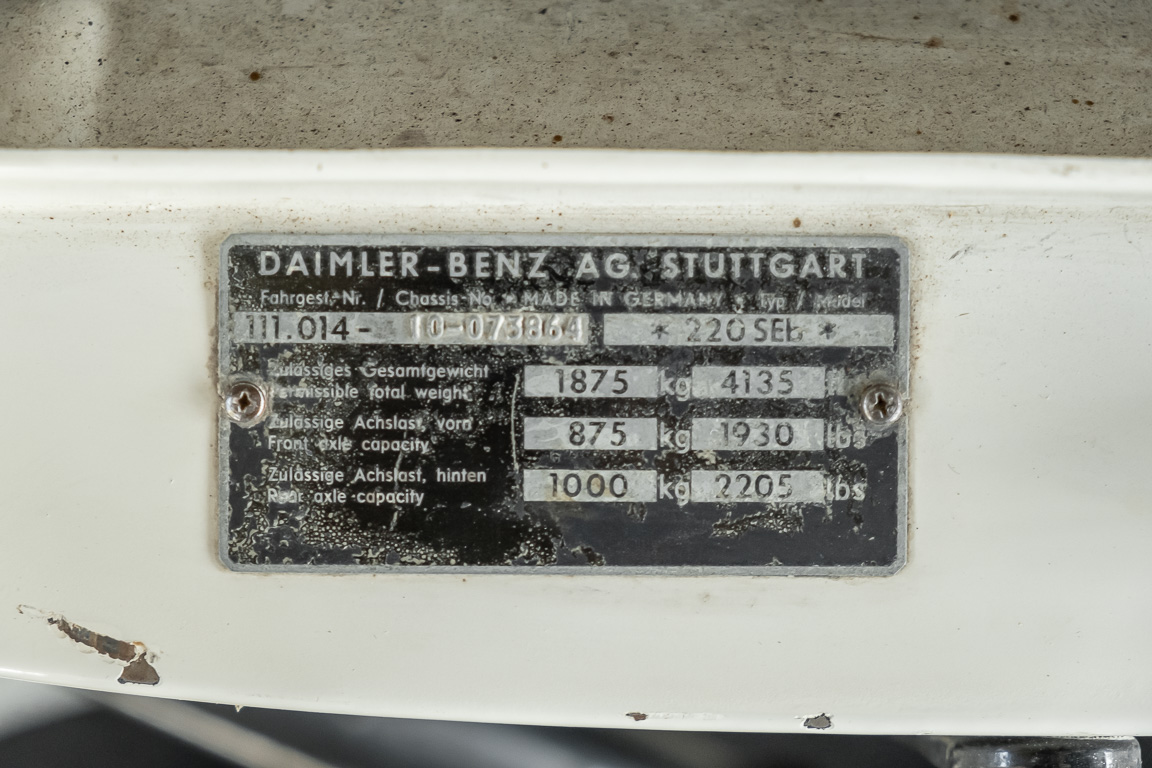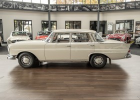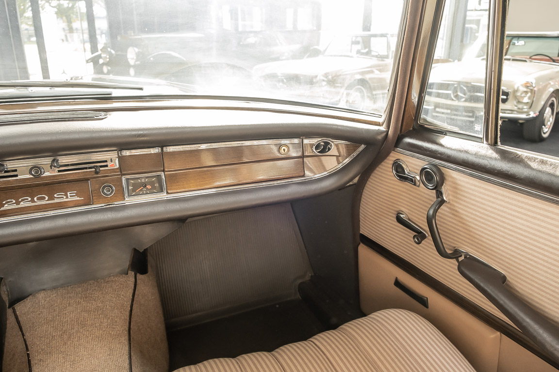 We are pleased to offer you this top-preserved, original 220 SEb sedan of the W111 series. The vehicle captivates by an indescribably great condition and a charm, which one can escape only with difficulty. According to the available documents, the elegant tail fin spent its first car life in southern Sweden near Gothenburg. A farmer born in 1946 is registered in the Swedish documents as vehicle owner. A marvelous imagination, which wonderful journeys by the dreamlike Göteburger surrounding countryside with this S-class were undertaken. With a sensational mileage of just 62,500 km, the vehicle presents itself in sensational top condition. An extensive conservation of all cavities and the underbody defied the sometimes rough Swedish climate and preserved the dream condition of this flagship sedan. A collector found the vehicle in 2016 and was immediately captivated by its 60s charm. Perfectly preserved, the fin generated a lot of interest and sympathy in his collection. From the collection, we may now sell the coveted matching numbers vehicle. Get in and experience the charm of this S-Class icon.