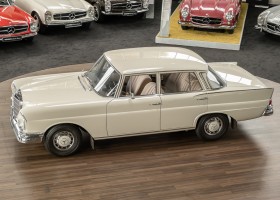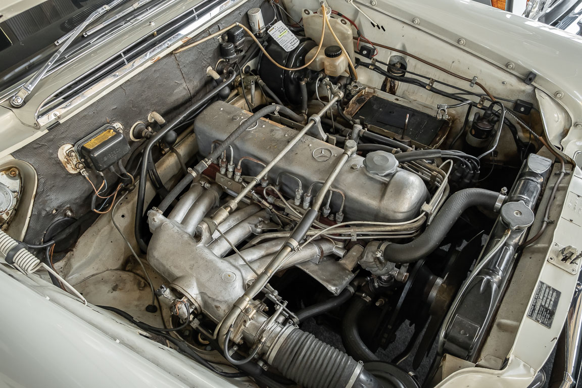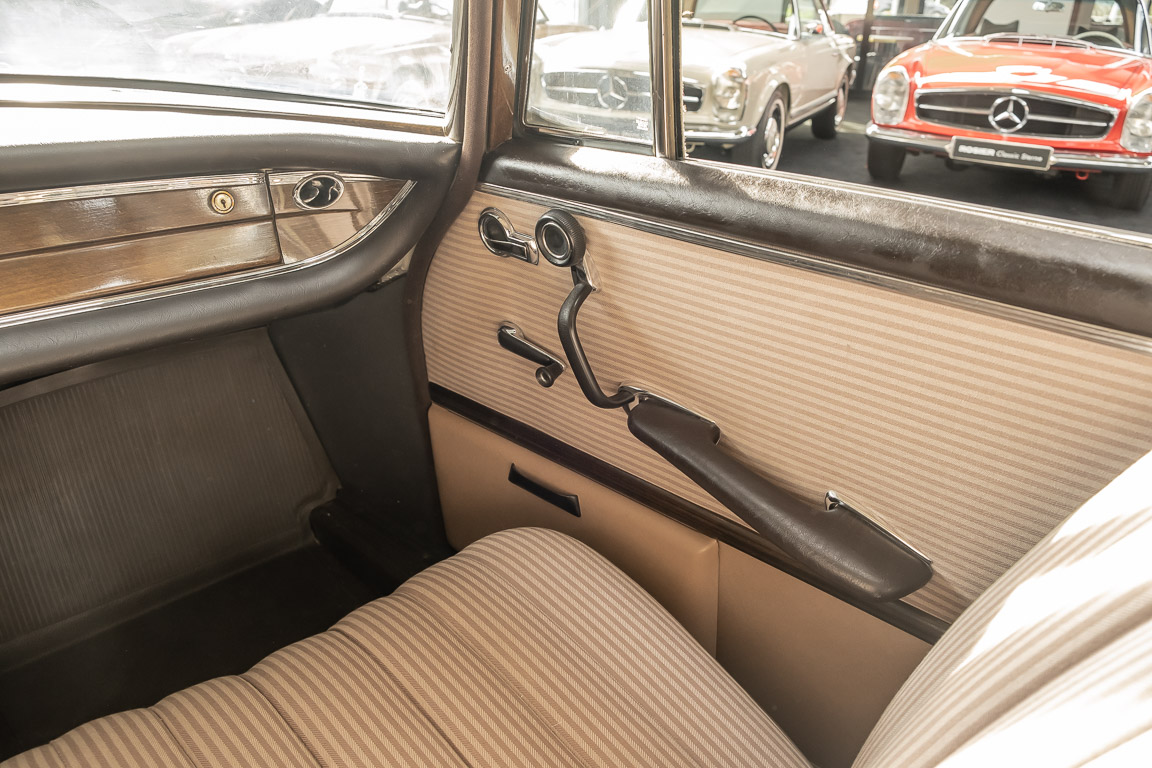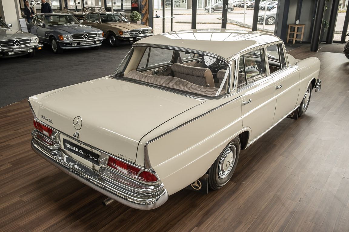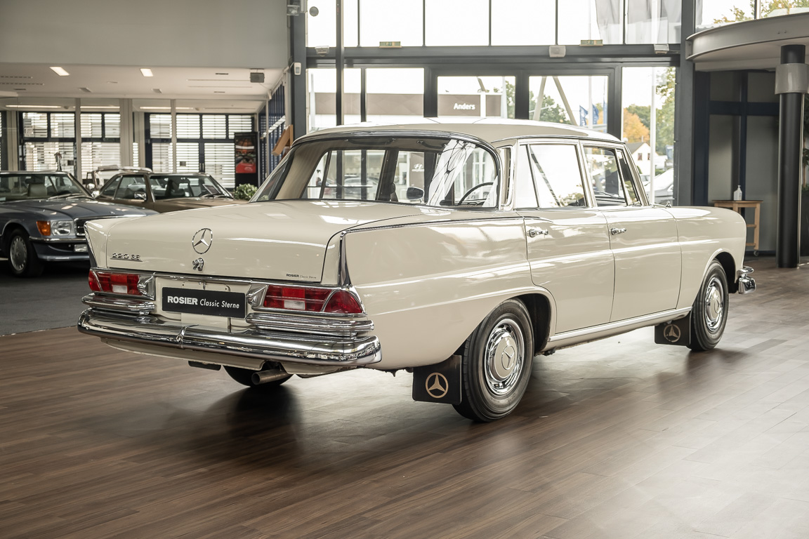 We are pleased to offer you this top-preserved, original 220 SEb sedan of the W111 series. The vehicle captivates by an indescribably great condition and a charm, which one can escape only with difficulty. According to the available documents, the elegant tail fin spent its first car life in southern Sweden near Gothenburg. A farmer born in 1946 is registered in the Swedish documents as vehicle owner. A marvelous imagination, which wonderful journeys by the dreamlike Göteburger surrounding countryside with this S-class were undertaken. With a sensational mileage of just 62,500 km, the vehicle presents itself in sensational top condition. An extensive conservation of all cavities and the underbody defied the sometimes rough Swedish climate and preserved the dream condition of this flagship sedan. A collector found the vehicle in 2016 and was immediately captivated by its 60s charm. Perfectly preserved, the fin generated a lot of interest and sympathy in his collection. From the collection, we may now sell the coveted matching numbers vehicle. Get in and experience the charm of this S-Class icon.