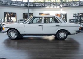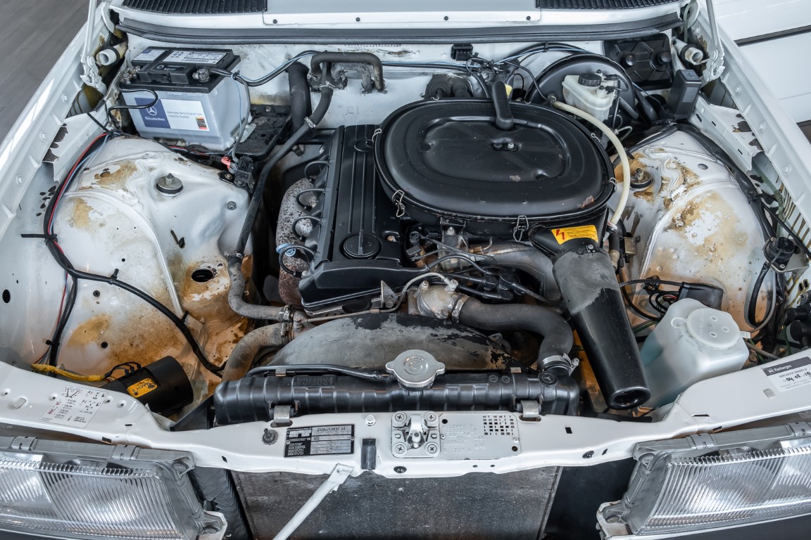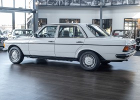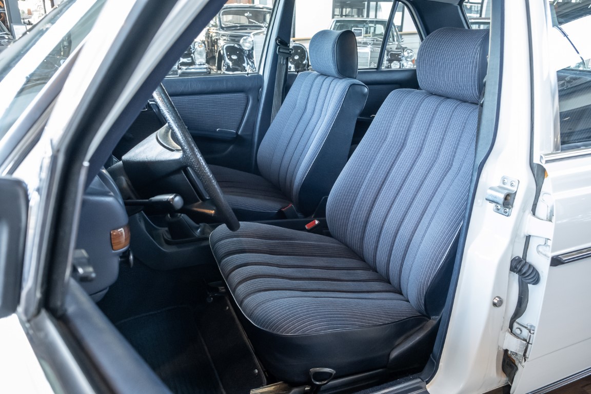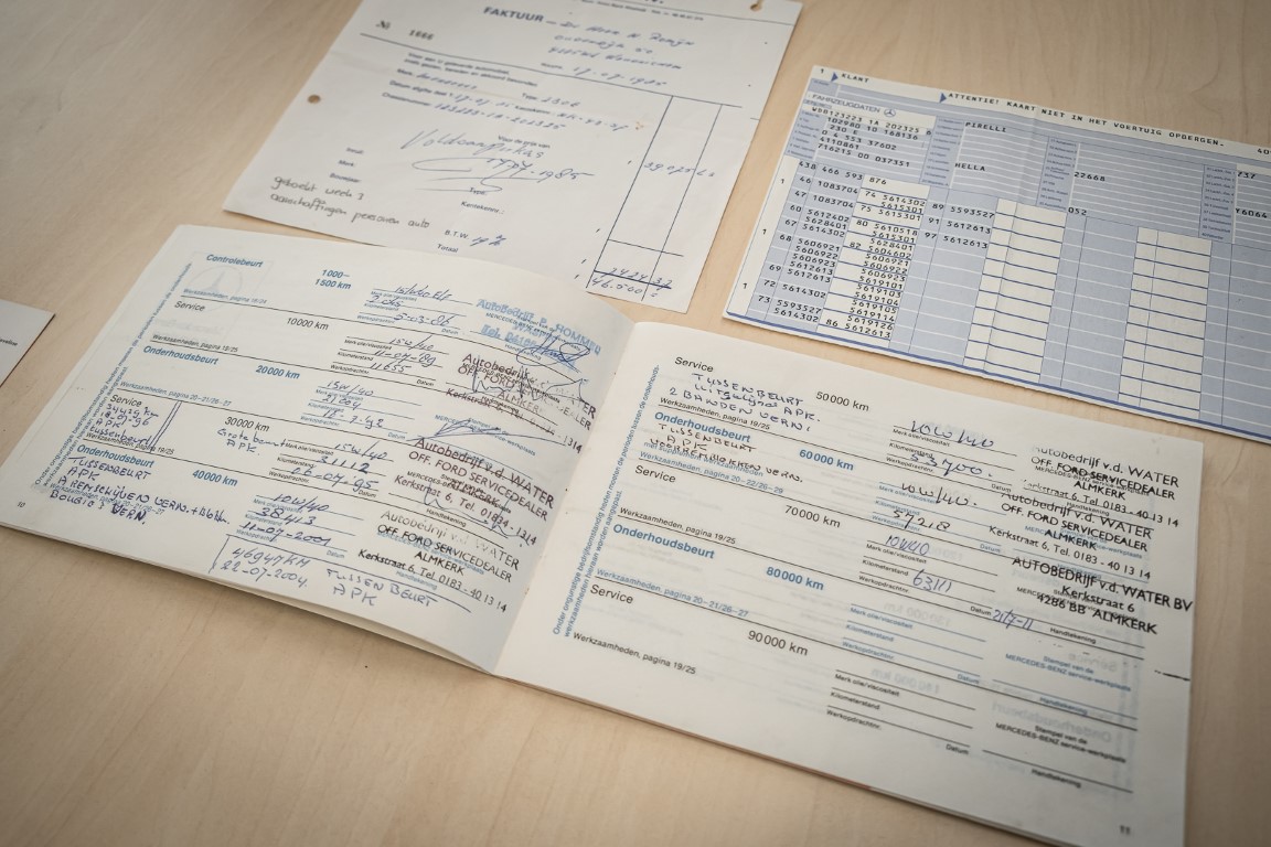 This wonderful 230 E in the matching shade of classic white dates from the last model year 1985 and is equipped with the robust 2.3l four-cylinder engine. On 17.07.1985 the vehicle was registered by its first owner, a gentleman from Woudrichem in North Brabant, Netherlands. Over many years and decades the vehicle was always cared for and maintained. The service booklet is completely maintained and traceable. Even the original data card and the original invoice are still available. The "plate report", i.e. the counter report, shows impressively how little the vehicle has been moved in the last almost 27 years.
