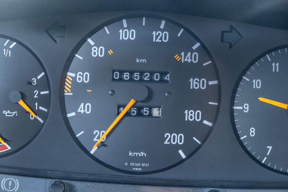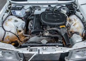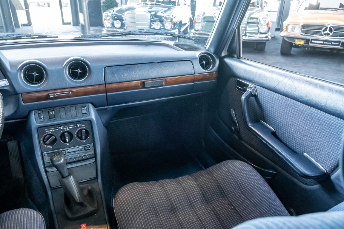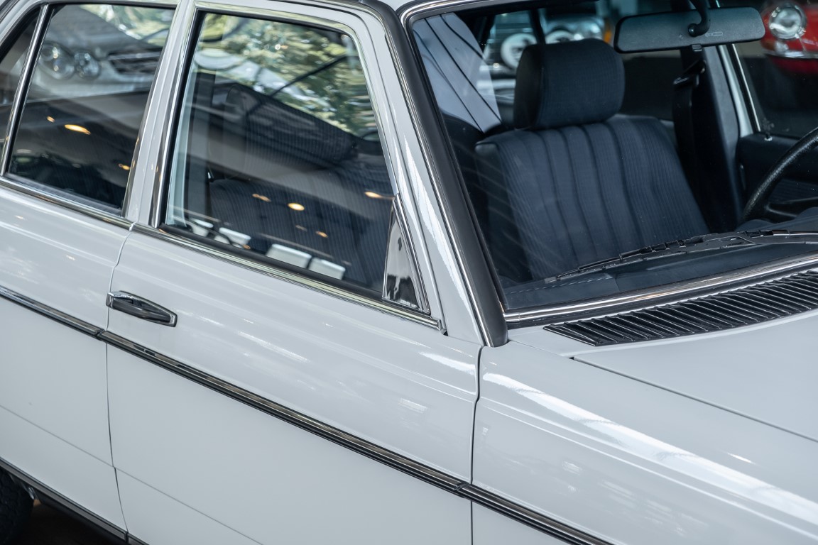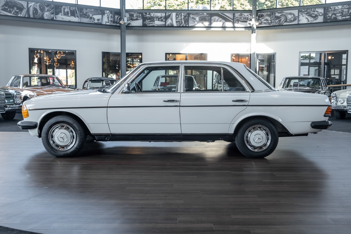 This wonderful 230 E in the matching shade of classic white dates from the last model year 1985 and is equipped with the robust 2.3l four-cylinder engine. On 17.07.1985 the vehicle was registered by its first owner, a gentleman from Woudrichem in North Brabant, Netherlands. Over many years and decades the vehicle was always cared for and maintained. The service booklet is completely maintained and traceable. Even the original data card and the original invoice are still available. The "plate report", i.e. the counter report, shows impressively how little the vehicle has been moved in the last almost 27 years.