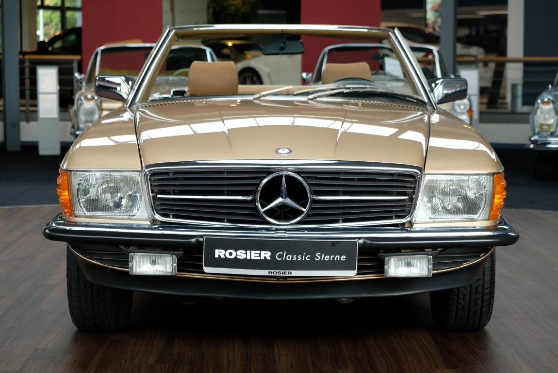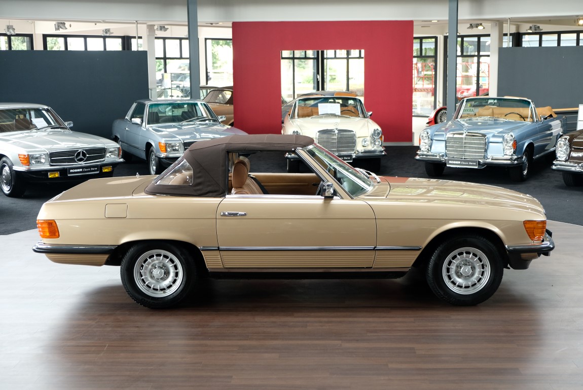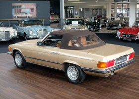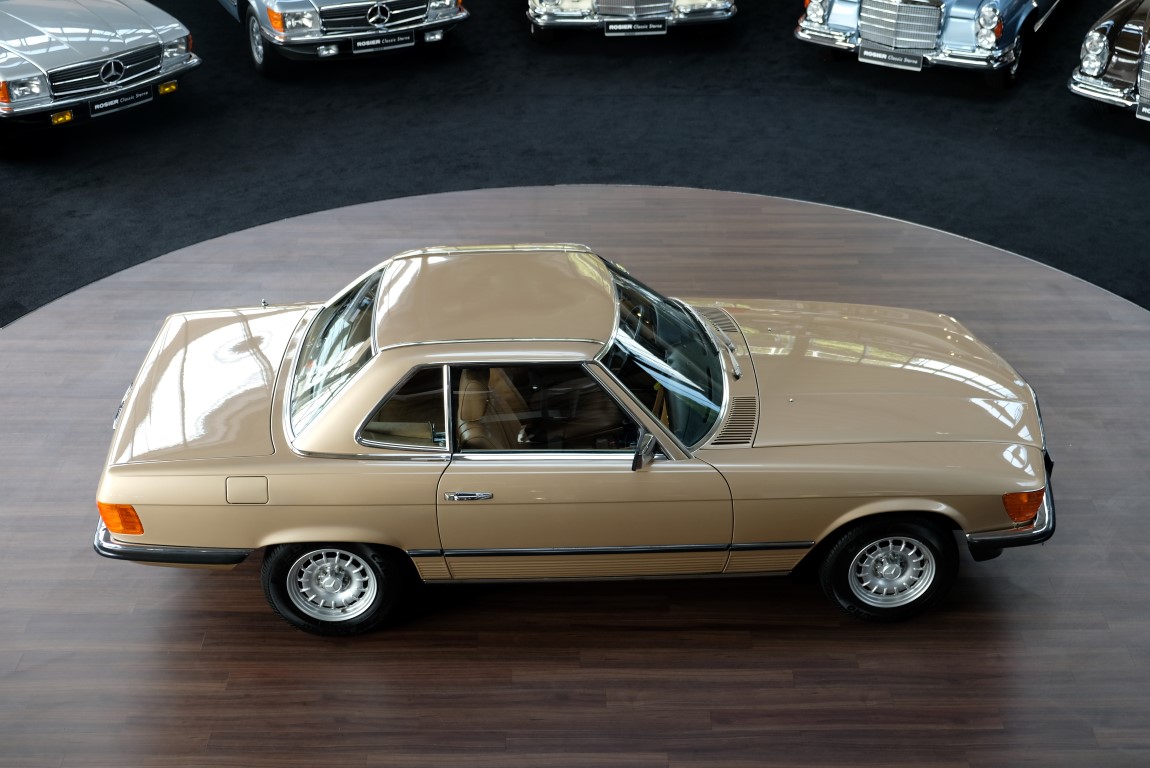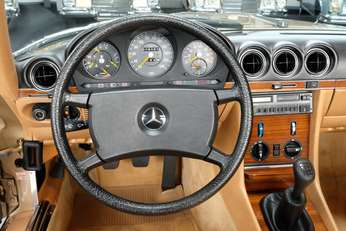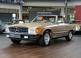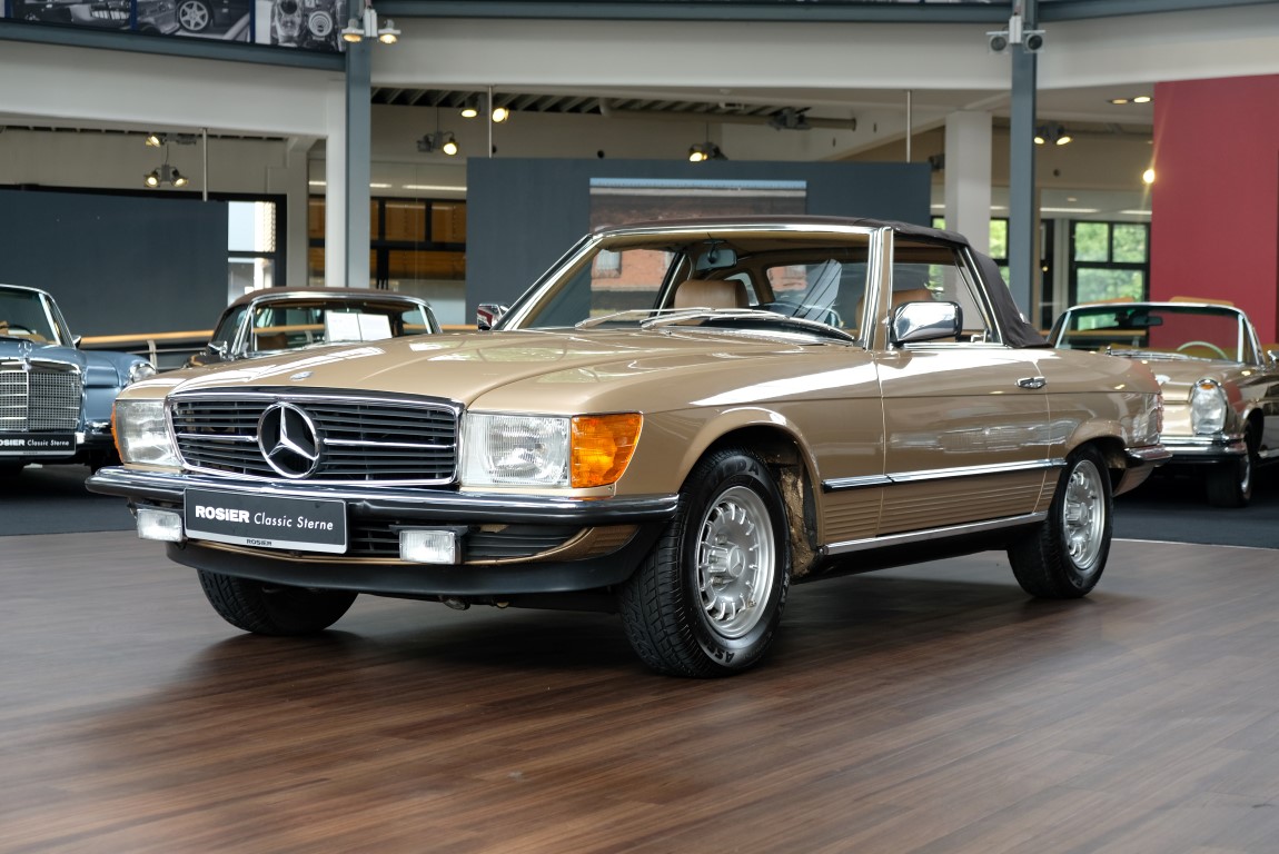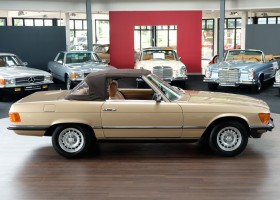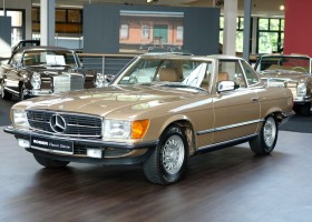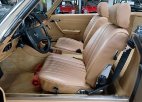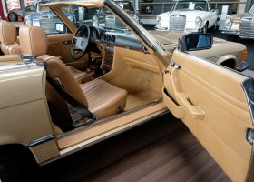 On October 1, 1981, the elegant roadster was delivered in the then highly topical color champagne metallic. It was equipped with beige leather, a 5-speed manual and heated seats for driver and front passenger. The car was designed for weekend trips on sunny days. The magnificent Main Valley, where the car had his home, was inviting. In 2012, the car came into our possession for the first time, he had just 14,000 km. We sold the Roadster to a collector of classic vehicles who moved it from time to time in the following years to avoid damage to the frame. Today, the car has run just 16.200 original kilometers and is in sensational new car-like condition.