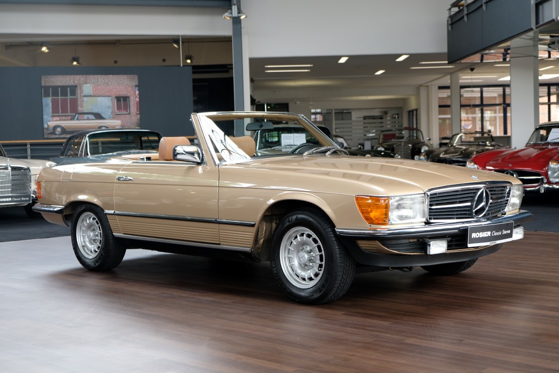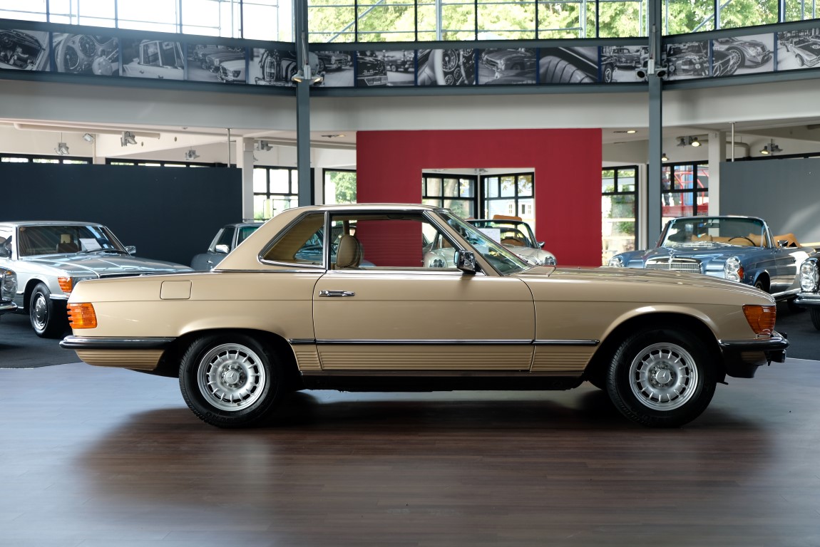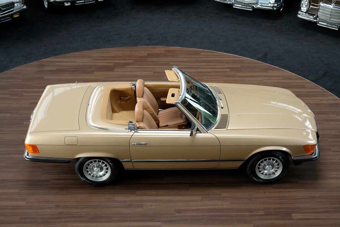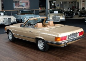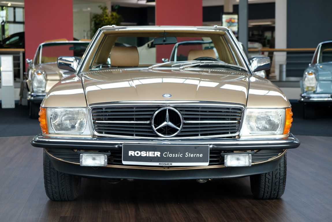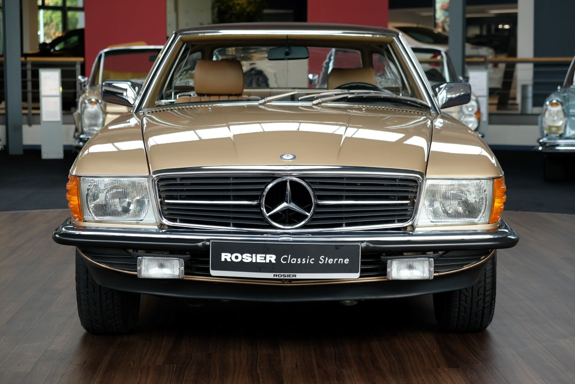 On October 1, 1981, the elegant roadster was delivered in the then highly topical color champagne metallic. It was equipped with beige leather, a 5-speed manual and heated seats for driver and front passenger. The car was designed for weekend trips on sunny days. The magnificent Main Valley, where the car had his home, was inviting. In 2012, the car came into our possession for the first time, he had just 14,000 km. We sold the Roadster to a collector of classic vehicles who moved it from time to time in the following years to avoid damage to the frame. Today, the car has run just 16.200 original kilometers and is in sensational new car-like condition.