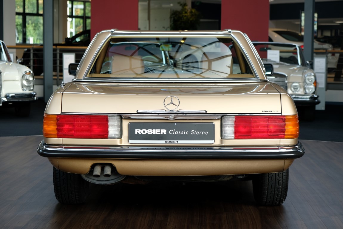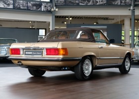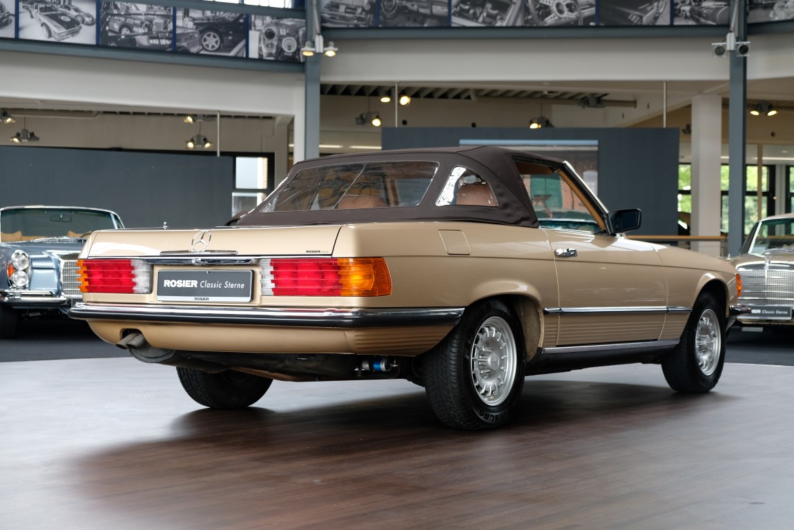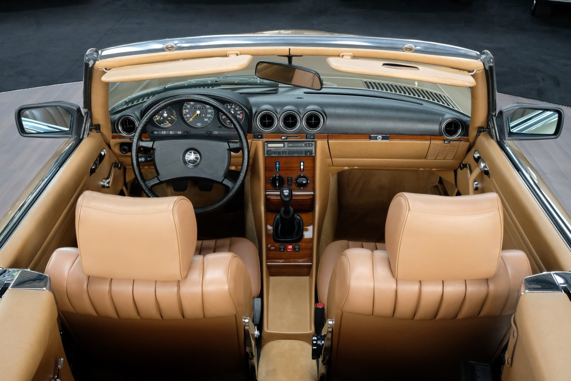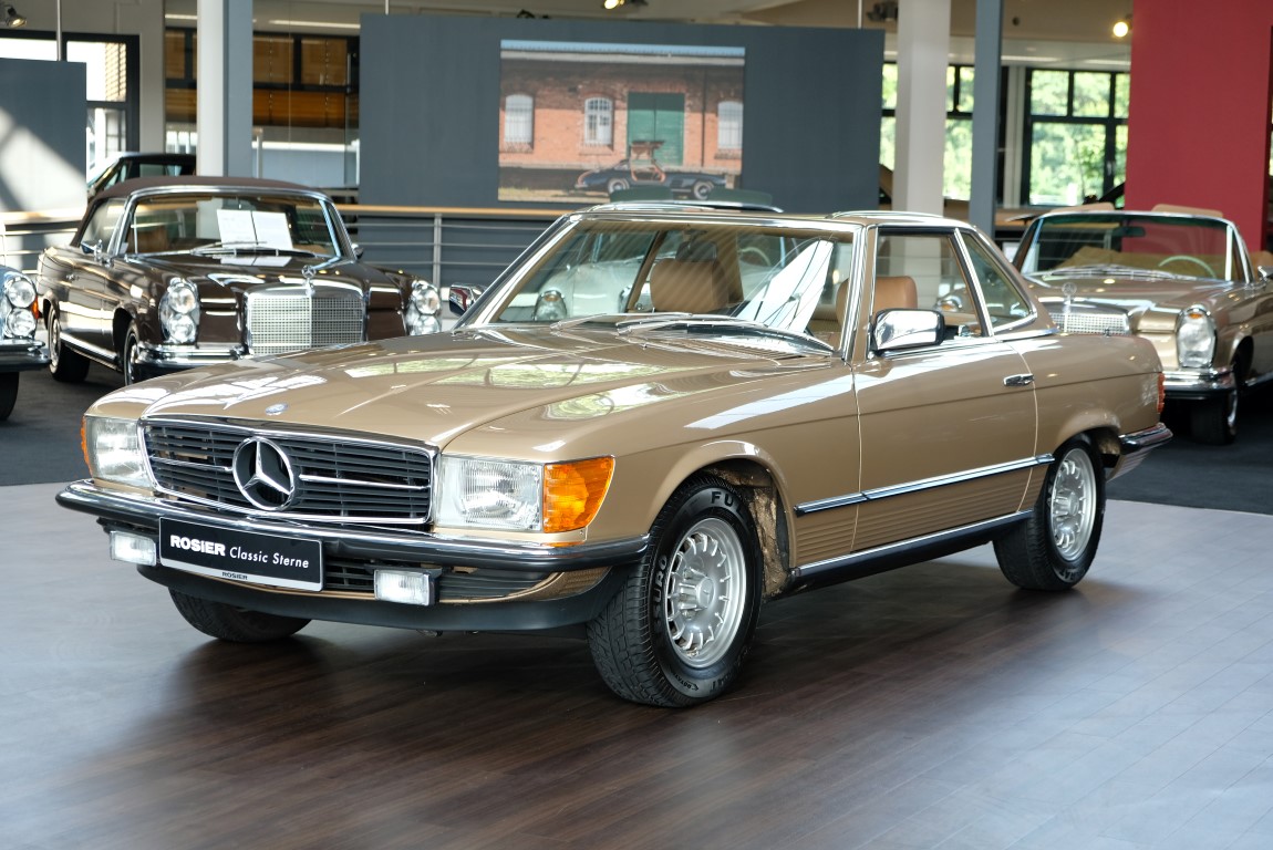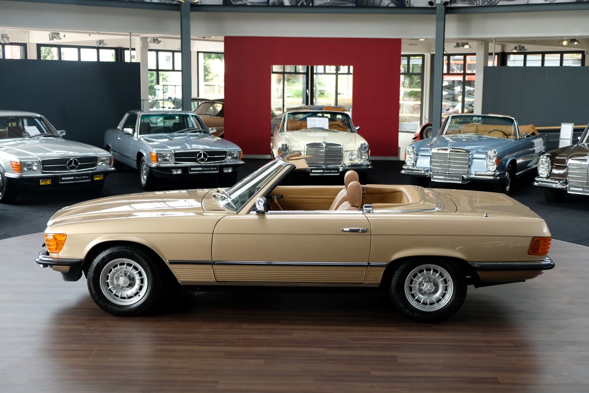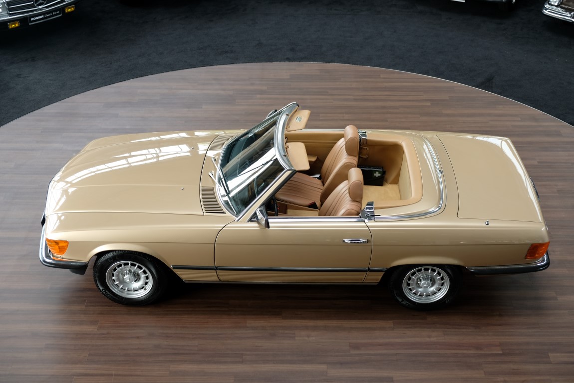 On October 1, 1981, the elegant roadster was delivered in the then highly topical color champagne metallic. It was equipped with beige leather, a 5-speed manual and heated seats for driver and front passenger. The car was designed for weekend trips on sunny days. The magnificent Main Valley, where the car had his home, was inviting. In 2012, the car came into our possession for the first time, he had just 14,000 km. We sold the Roadster to a collector of classic vehicles who moved it from time to time in the following years to avoid damage to the frame. Today, the car has run just 16.200 original kilometers and is in sensational new car-like condition.