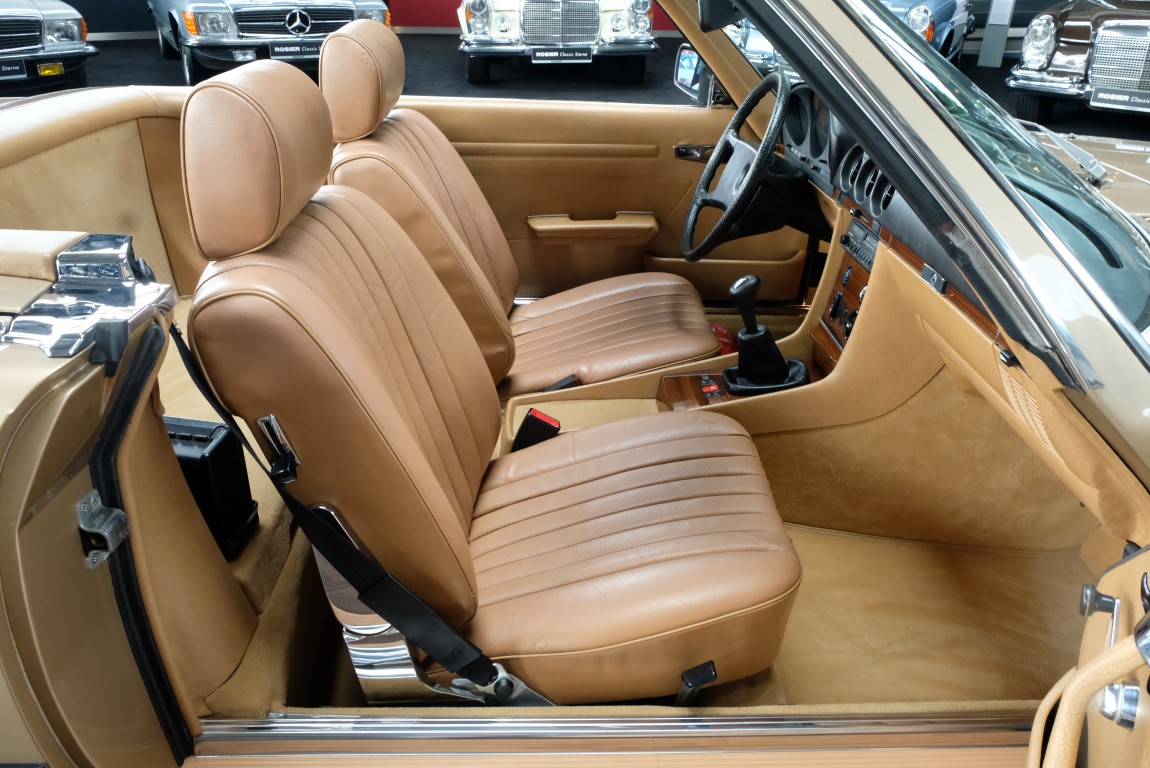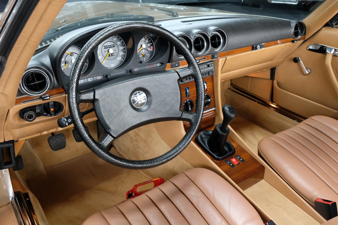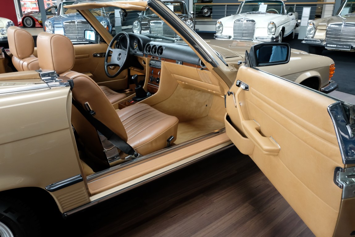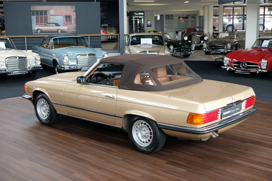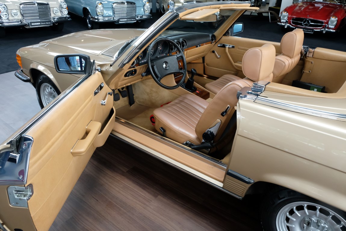 On October 1, 1981, the elegant roadster was delivered in the then highly topical color champagne metallic. It was equipped with beige leather, a 5-speed manual and heated seats for driver and front passenger. The car was designed for weekend trips on sunny days. The magnificent Main Valley, where the car had his home, was inviting. In 2012, the car came into our possession for the first time, he had just 14,000 km. We sold the Roadster to a collector of classic vehicles who moved it from time to time in the following years to avoid damage to the frame. Today, the car has run just 16.200 original kilometers and is in sensational new car-like condition.