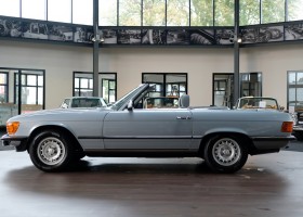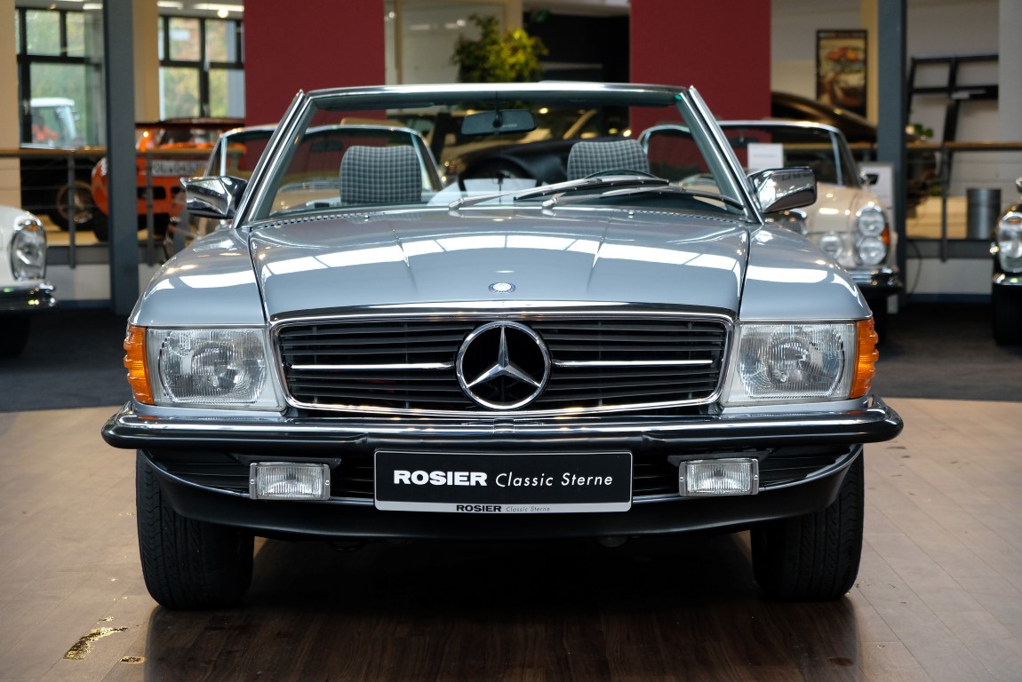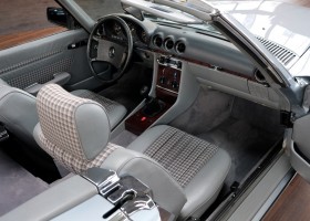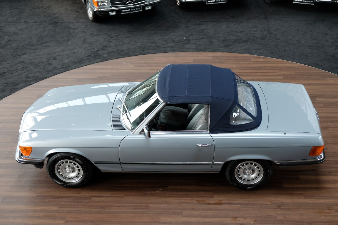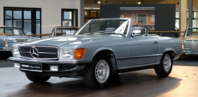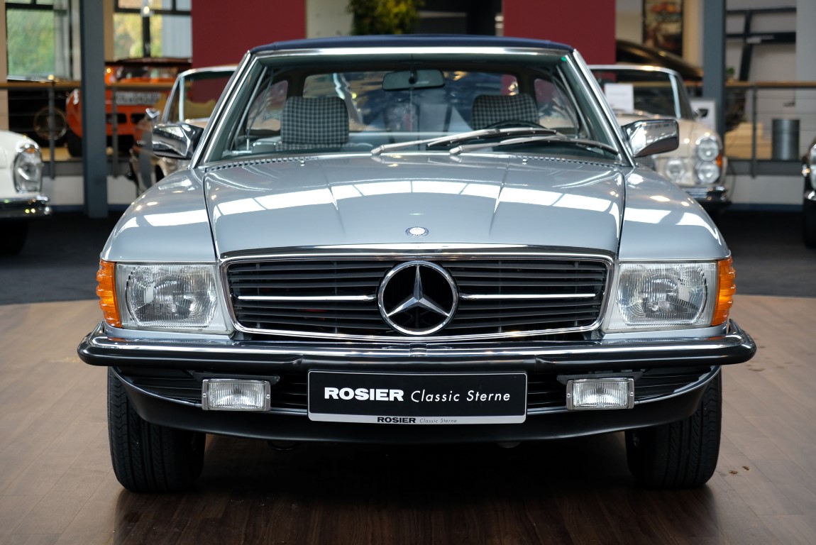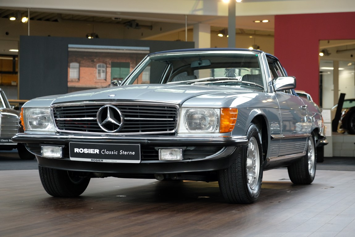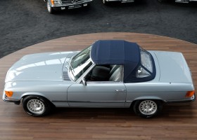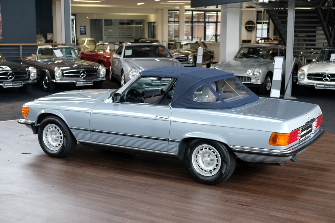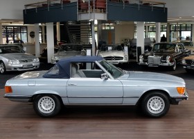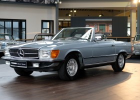 This Mercedes-Benz 280SL Roadster in sporty elegant silver-blue from the so popular R107 series was registered to its first owner in the Swabian Bodelshausen near Tübingen at the end of December 1983. After the Mercedes R 107 were highly sought after on the market and young cars could be sold again almost at the original price, the first owner sold the car to a friend within his small hometown in 1986. In 1989 the 280SL found a new home in Lower Franconia. There it stayed for the next 21 years before it came to the wonderful Chiemgau. Its owner there kept the roadster for another 3 years, before a customer of our house discovered it on a holiday trip at the Chiemsee. He bought the chic 280 SL spontaneously and kept it until he gave it to our house in 2018 in exchange for another oldie. The car was well maintained all these years, whenever there was a need, a garage was immediately visited. So the condition can be described as fantastically solid and well maintained. The brake system, the fabric roof and the rear silencer have been renewed, the underbody has already been sealed with transparent wax and a complete inspection was carried out in our workshop. Let us take you away to a convertible summer full of joy and fun. By the way, a hardtop is of course also included.