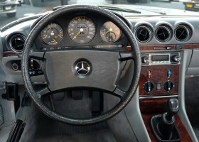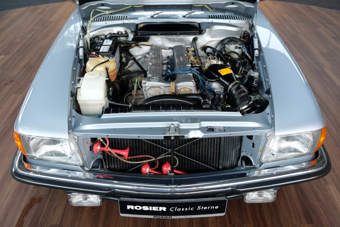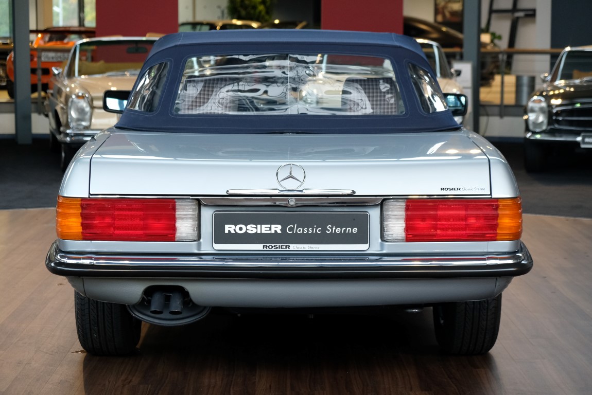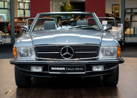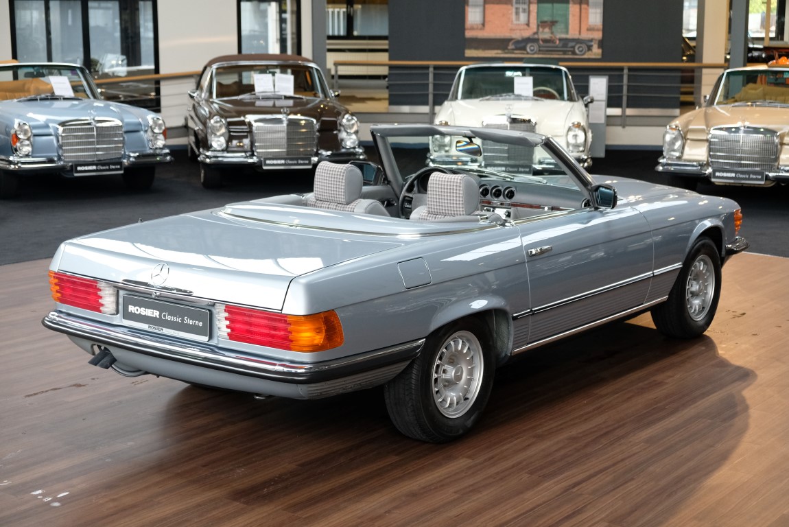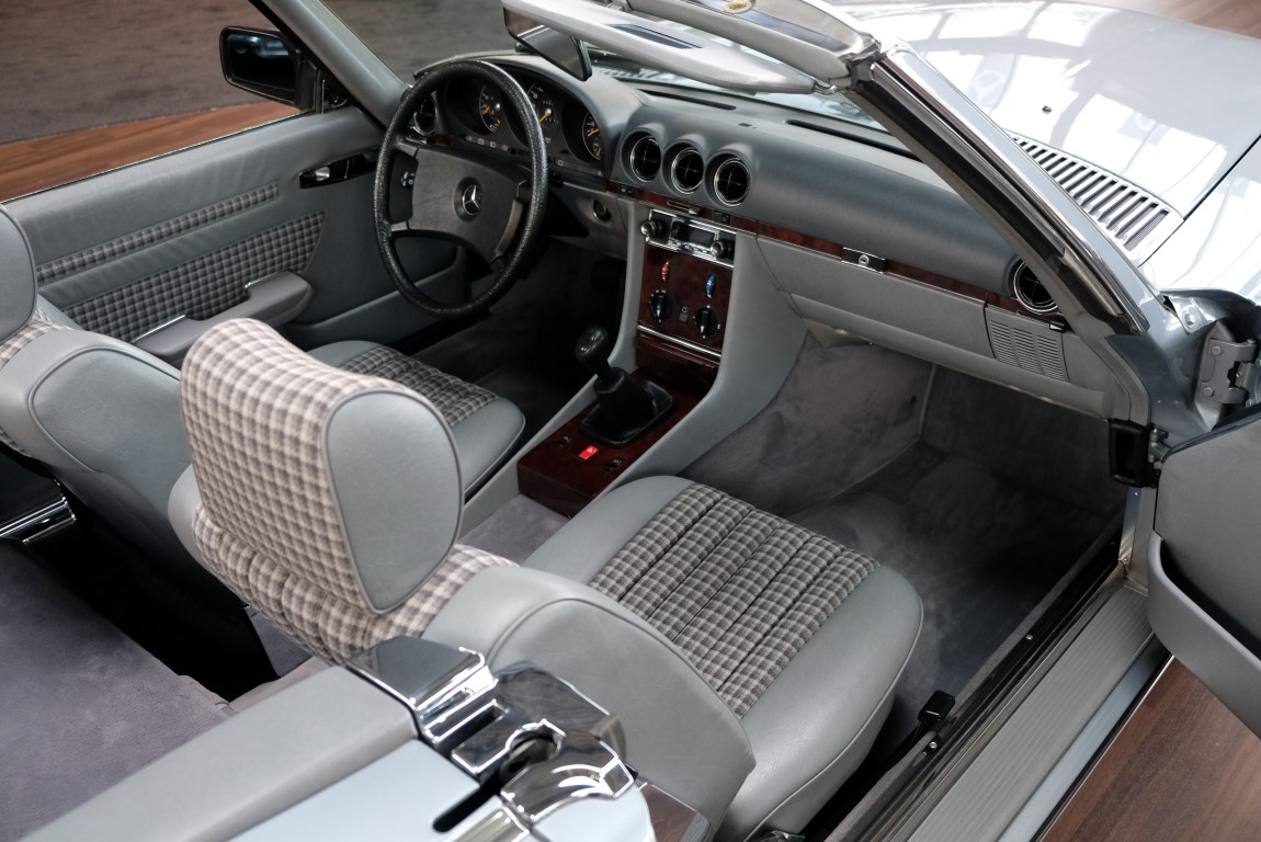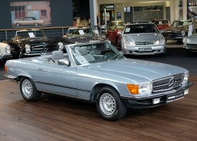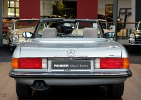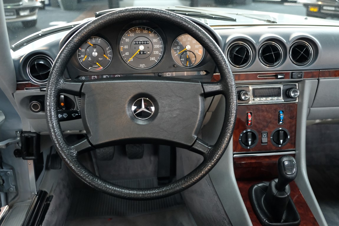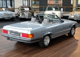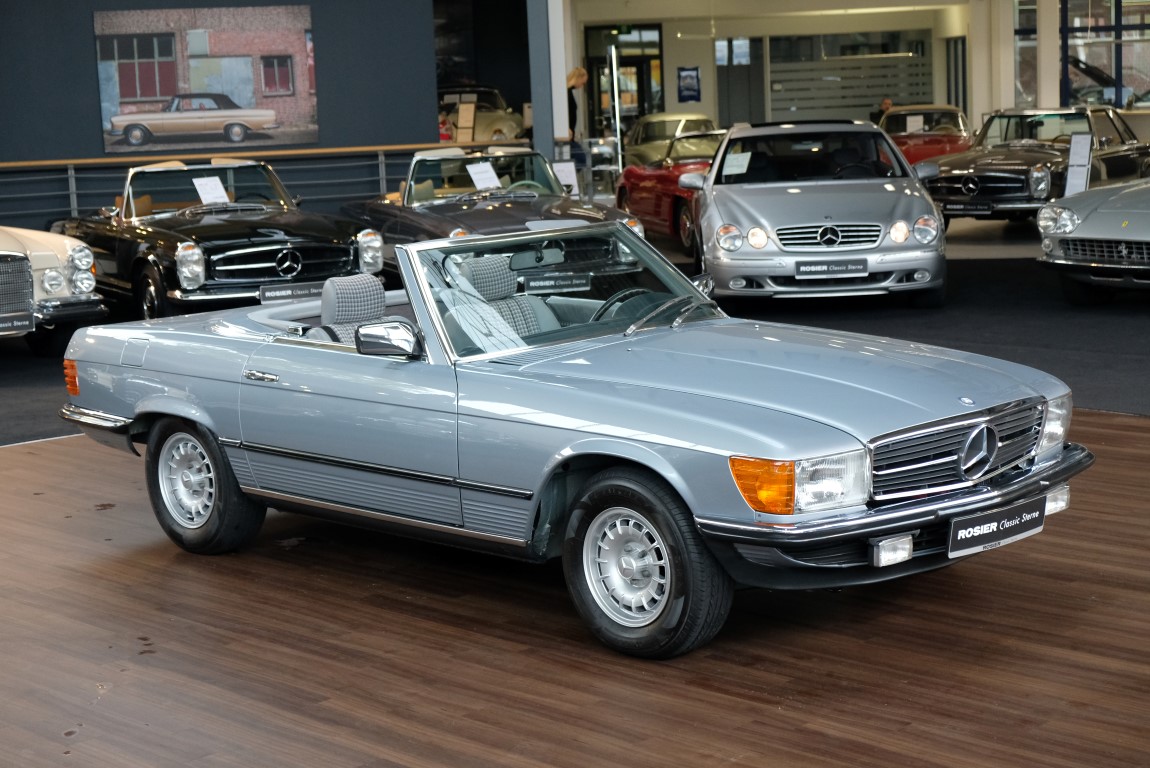 This Mercedes-Benz 280SL Roadster in sporty elegant silver-blue from the so popular R107 series was registered to its first owner in the Swabian Bodelshausen near Tübingen at the end of December 1983. After the Mercedes R 107 were highly sought after on the market and young cars could be sold again almost at the original price, the first owner sold the car to a friend within his small hometown in 1986. In 1989 the 280SL found a new home in Lower Franconia. There it stayed for the next 21 years before it came to the wonderful Chiemgau. Its owner there kept the roadster for another 3 years, before a customer of our house discovered it on a holiday trip at the Chiemsee. He bought the chic 280 SL spontaneously and kept it until he gave it to our house in 2018 in exchange for another oldie. The car was well maintained all these years, whenever there was a need, a garage was immediately visited. So the condition can be described as fantastically solid and well maintained. The brake system, the fabric roof and the rear silencer have been renewed, the underbody has already been sealed with transparent wax and a complete inspection was carried out in our workshop. Let us take you away to a convertible summer full of joy and fun. By the way, a hardtop is of course also included.