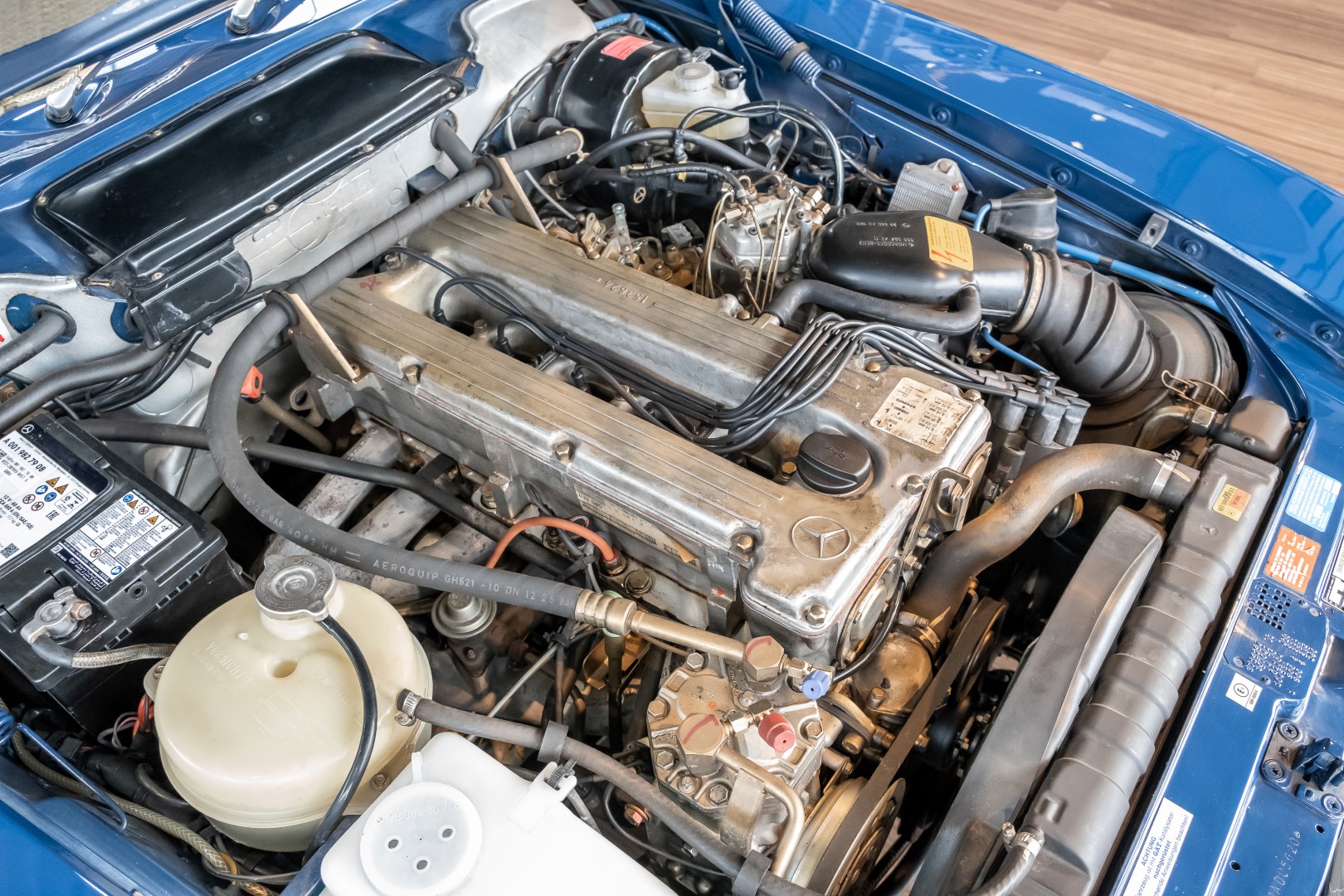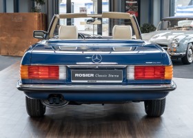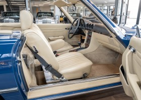 A proud 62,708.21 DM was paid by the then purchaser - a successful dealer for agricultural machinery and parts from Bonn - for the roadster dream in surf blue (900. The list of optional extras was comparatively long: leather upholstery in cream (255), automatic transmission, center armrest, air conditioning, electric windows and alloy wheels gave the roadster that certain something and the owner's very own touch. The cassette radio Becker Grand Prix was also on board. Of course, all documents are also available here: from the operating instructions and the demonstration cassette to the warranty checkbook and the original sound head cleaning sticks!