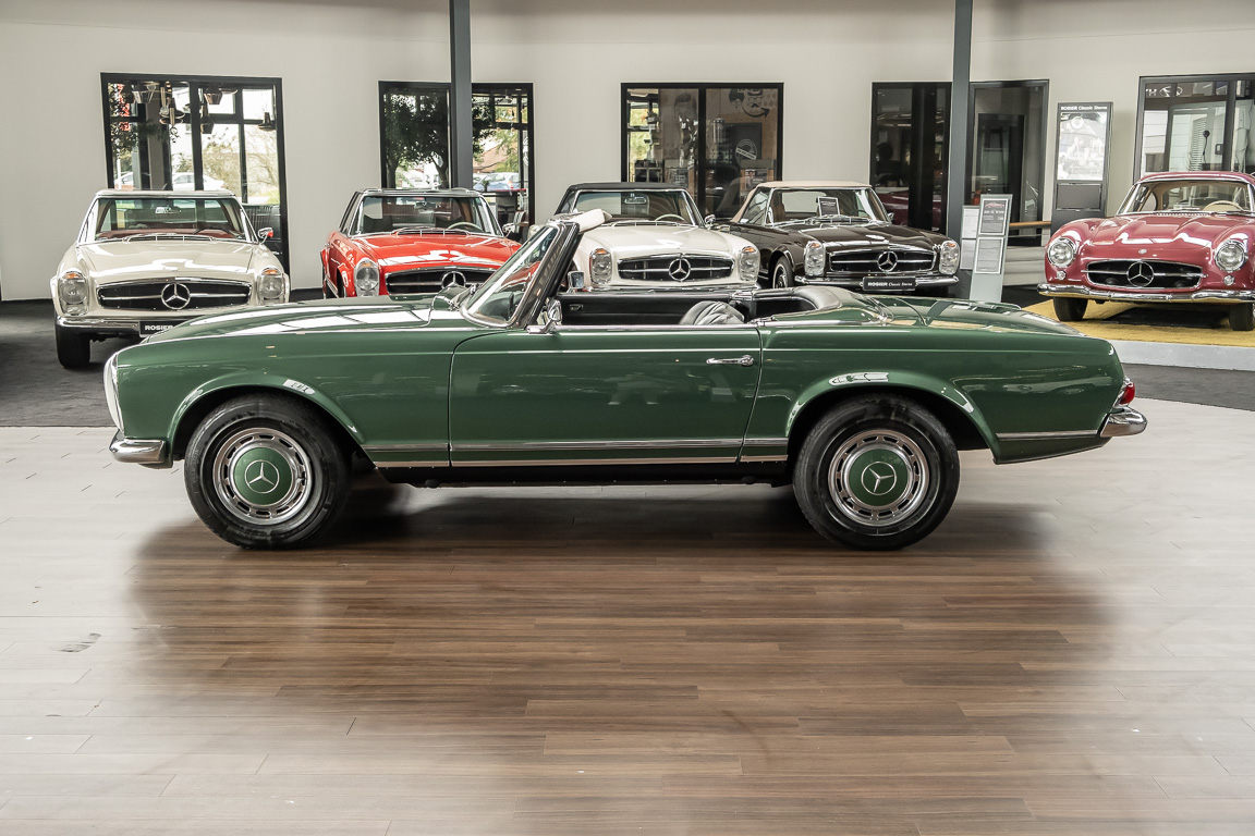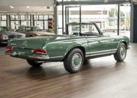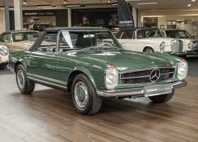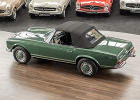 We are pleased to offer you this expressive 280 SL Pagoda in the rare color DB834 Moss Green Metallic. The 4-speed manual transmission harmonizes perfectly with the powerful 280 Pagoda and provides wonderful driving pleasure. The vehicle is sold with hardtop in body color.