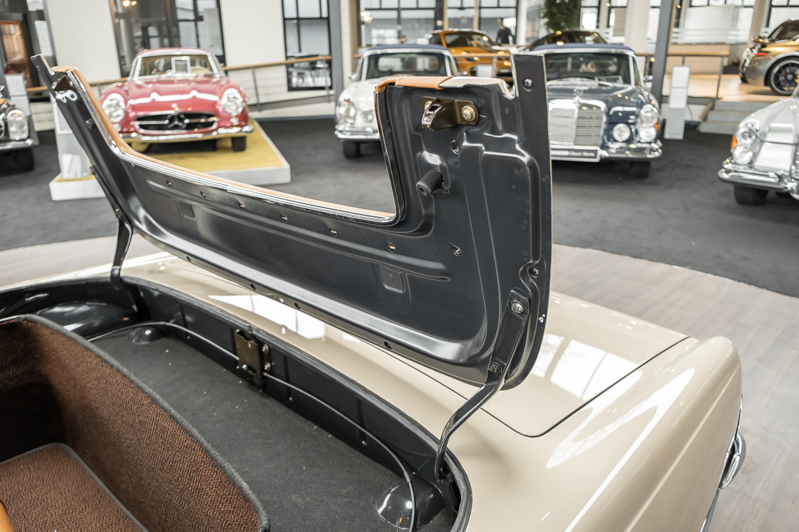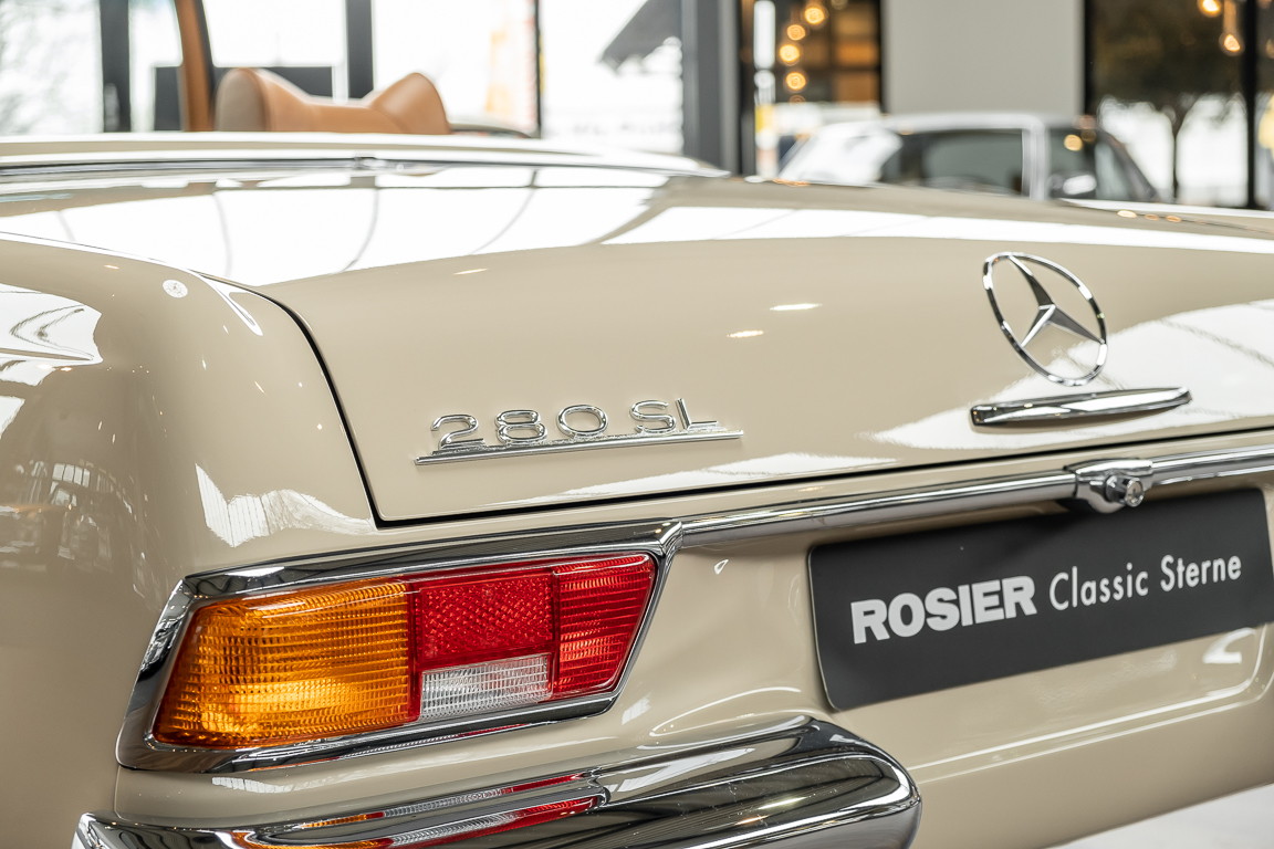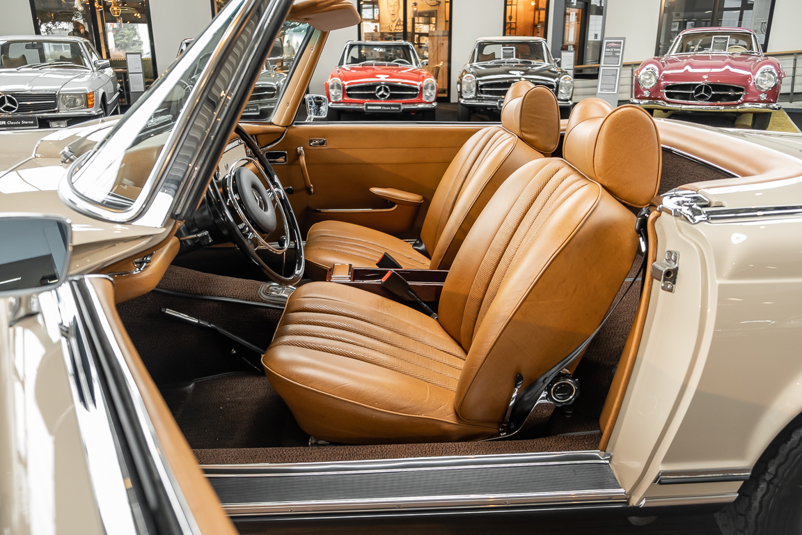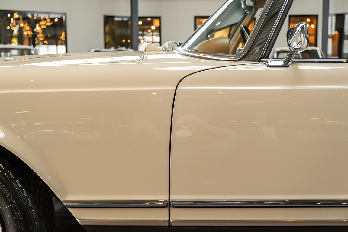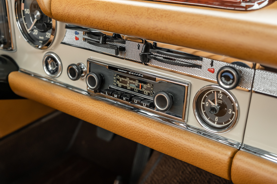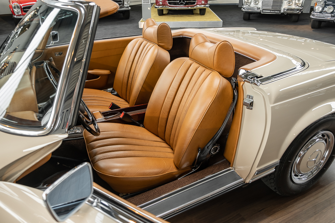 A Pagoda restored at the highest level in the house BRABUS. True to original according to data card, rebuilt with great attention to detail as a 6 star restoration. Countless new parts were used. For such a complex restoration, between 5 and 6,000 working hours are needed. In return, a quality of unique excellence is achieved in the end. All components were checked, machined or replaced and restored to top condition. The body was carefully stripped of paint using the most modern techniques and a new coat of paint was applied. The interior was carefully sewn and fitted in fine leather by experienced saddlers. A result that demands high recognition from even the most pampered professional. We would be happy to show you this dream pagoda in detail, take your time, it's worth it.