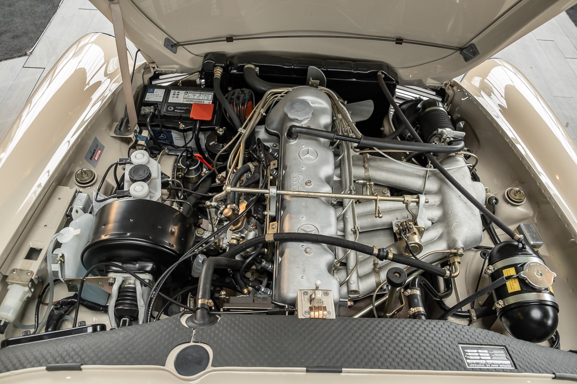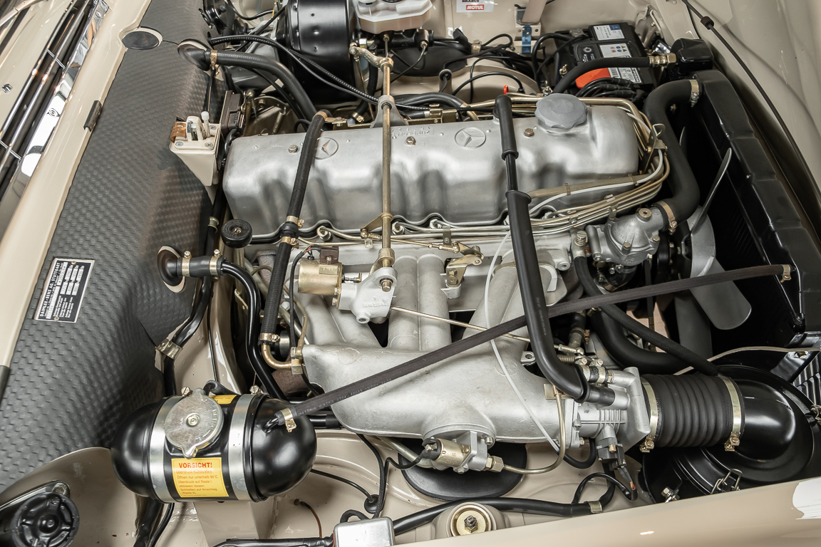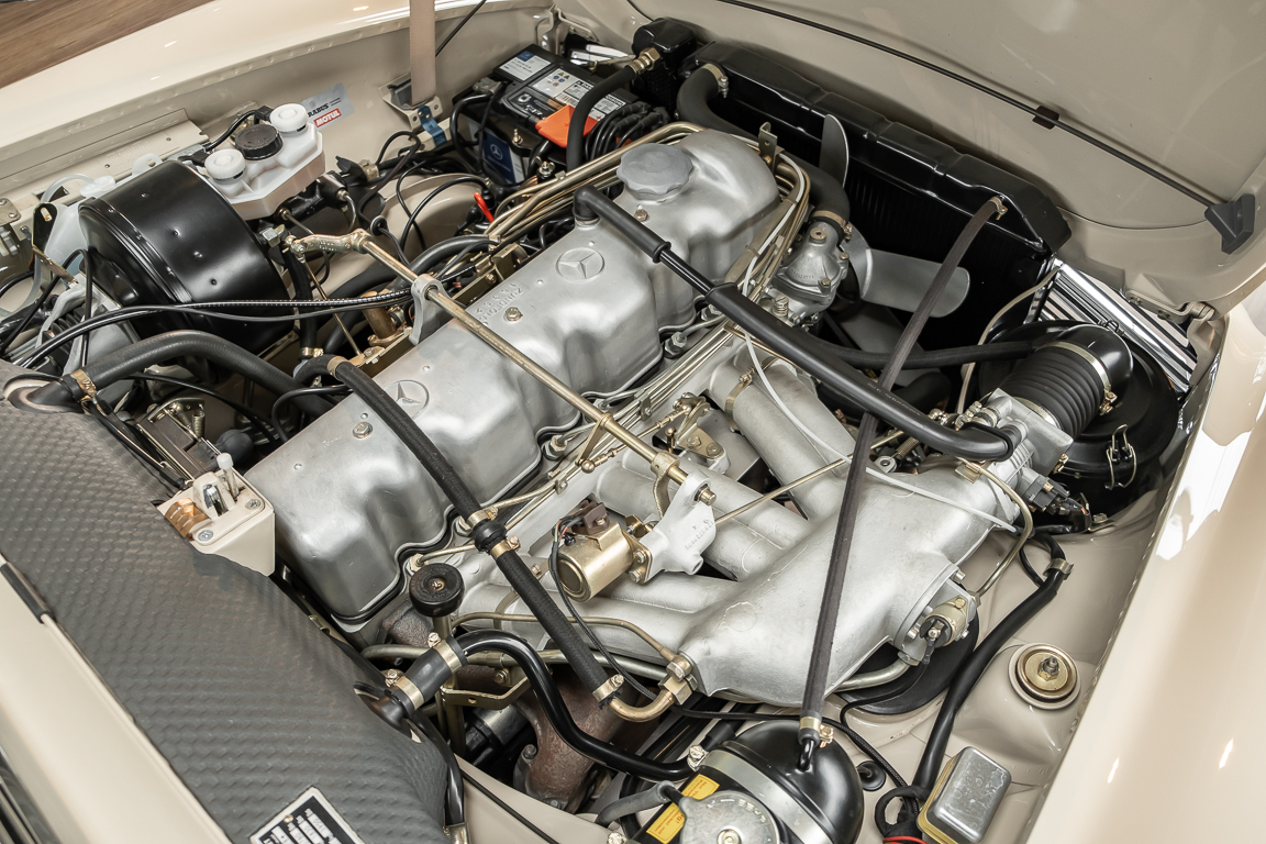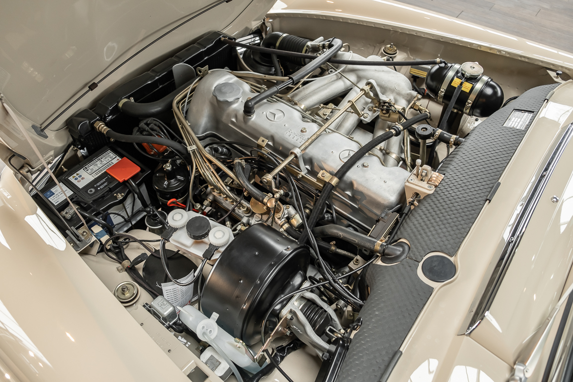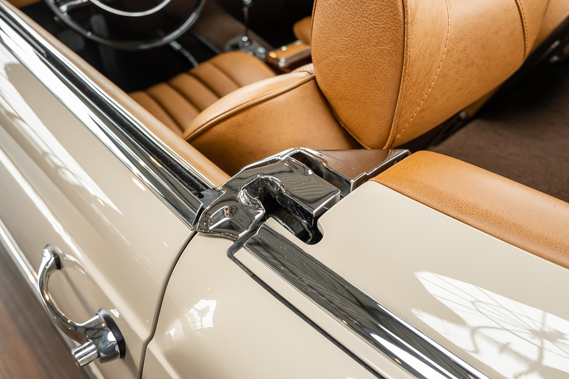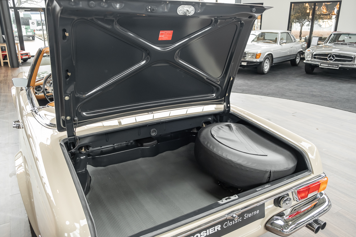 A Pagoda restored at the highest level in the house BRABUS. True to original according to data card, rebuilt with great attention to detail as a 6 star restoration. Countless new parts were used. For such a complex restoration, between 5 and 6,000 working hours are needed. In return, a quality of unique excellence is achieved in the end. All components were checked, machined or replaced and restored to top condition. The body was carefully stripped of paint using the most modern techniques and a new coat of paint was applied. The interior was carefully sewn and fitted in fine leather by experienced saddlers. A result that demands high recognition from even the most pampered professional. We would be happy to show you this dream pagoda in detail, take your time, it's worth it.