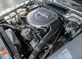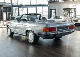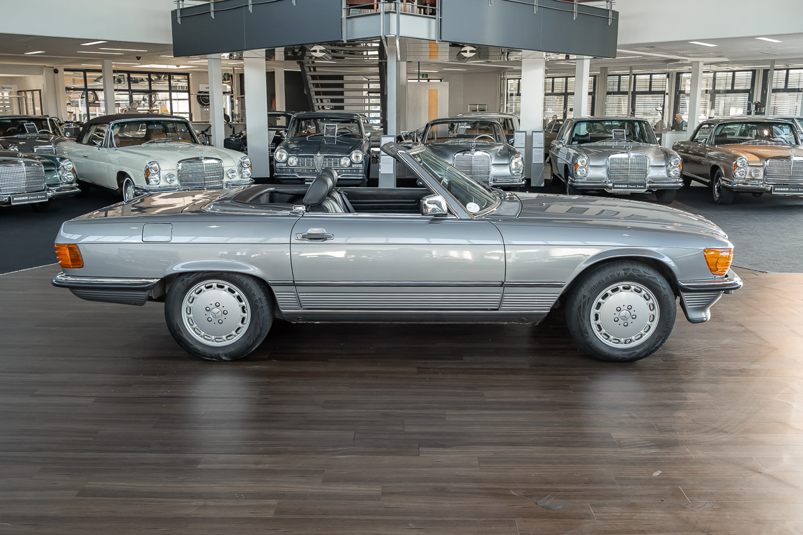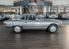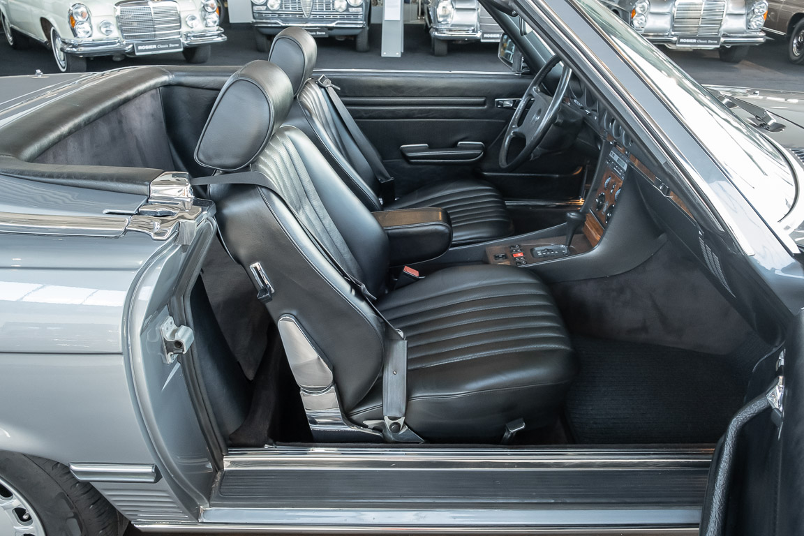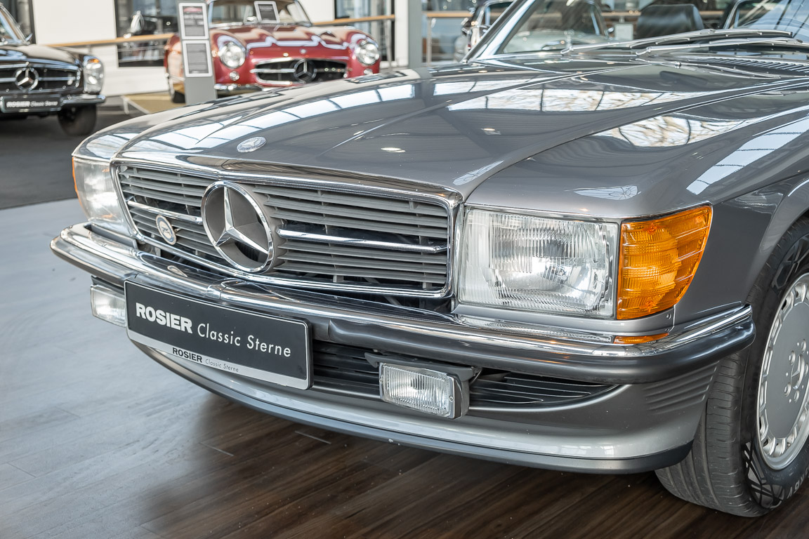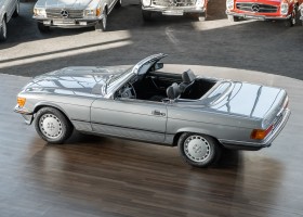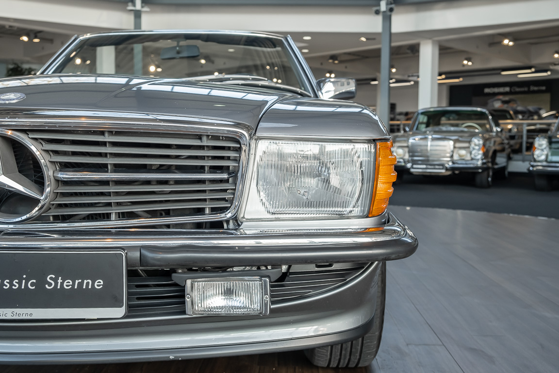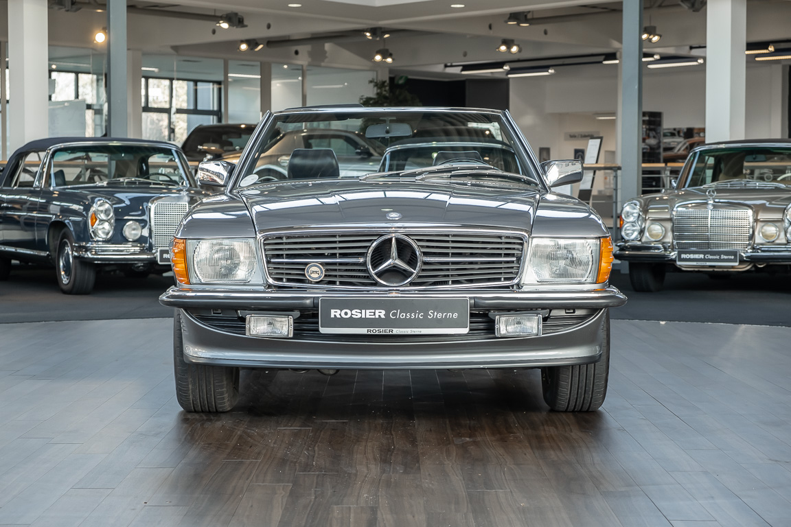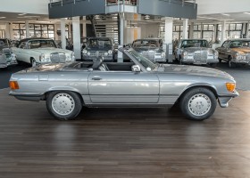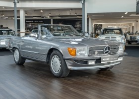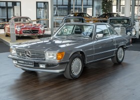We are proud to offer you a wonderful roadster from the 107 series in the form of this 500 SL - the top SL model of the time. Skilfully this specimen in the color pearl gray metallic stands out from its brothers and sisters in silver and blue-black. In combination with the black leather this 500 knows to set itself discreetly but skillfully in scene. With a quite worth seeing equipment with limited slip differential, air conditioning and seat heating for driver and front passenger hardly desires remained open for the buyers at that time. With just over 160,000 kilometers the vehicle presents itself technically and optically in a remarkably maintained condition. The vehicle has been thoroughly checked and optimized by specialists in our workshop and has undergone major maintenance to make it fit for the upcoming season. Get in and experience the legendary SL-Class in the top model 500 SL.