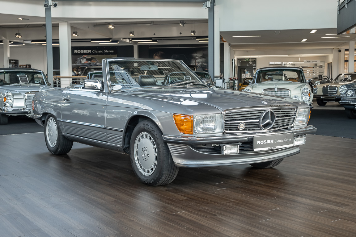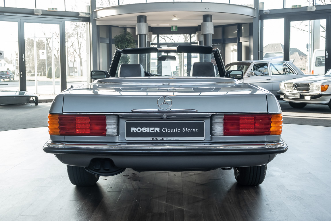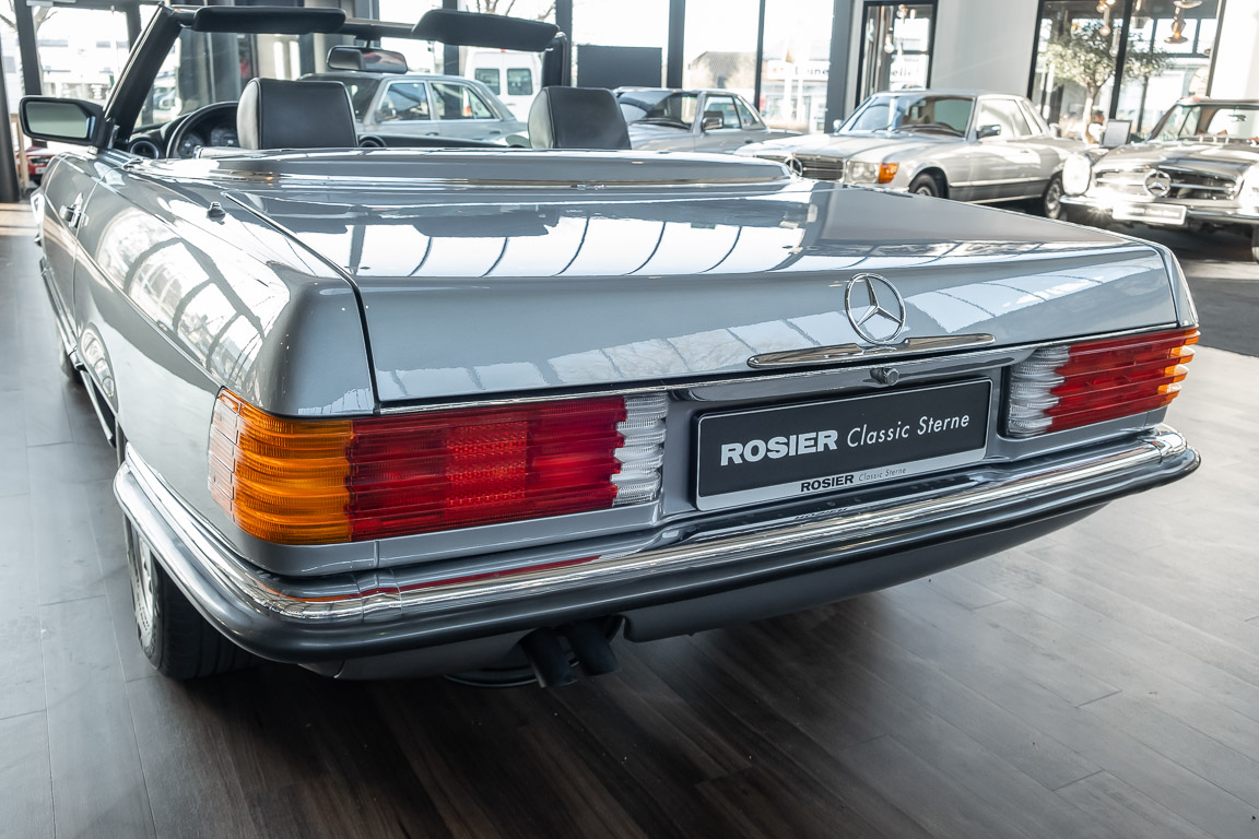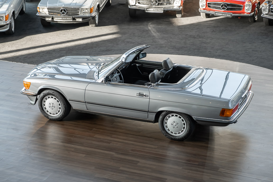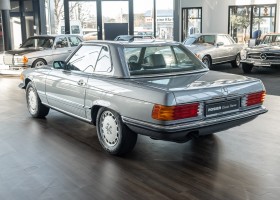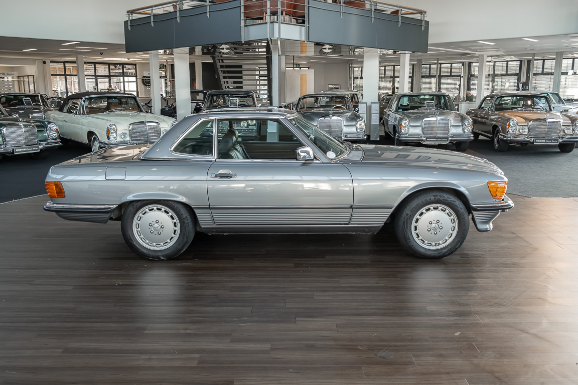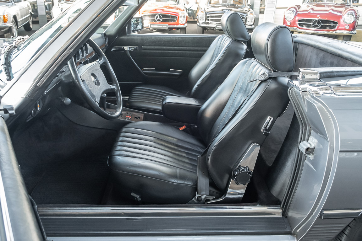 We are proud to offer you a wonderful roadster from the 107 series in the form of this 500 SL - the top SL model of the time. Skilfully this specimen in the color pearl gray metallic stands out from its brothers and sisters in silver and blue-black. In combination with the black leather this 500 knows to set itself discreetly but skillfully in scene. With a quite worth seeing equipment with limited slip differential, air conditioning and seat heating for driver and front passenger hardly desires remained open for the buyers at that time. With just over 160,000 kilometers the vehicle presents itself technically and optically in a remarkably maintained condition. The vehicle has been thoroughly checked and optimized by specialists in our workshop and has undergone major maintenance to make it fit for the upcoming season. Get in and experience the legendary SL-Class in the top model 500 SL.