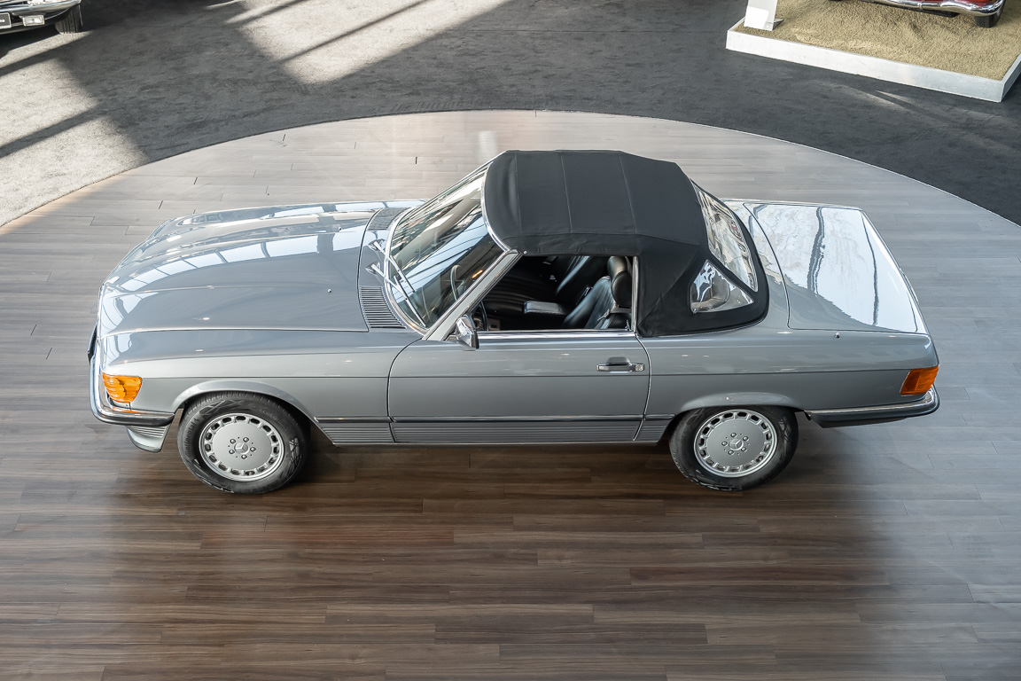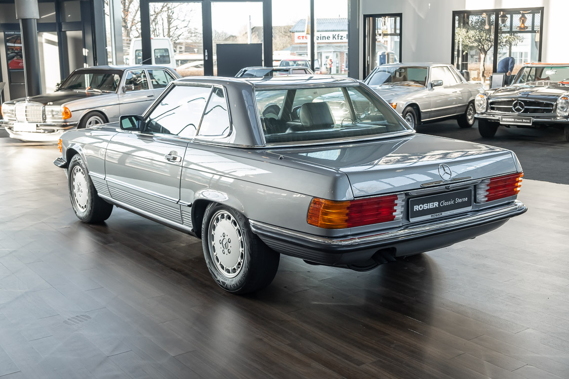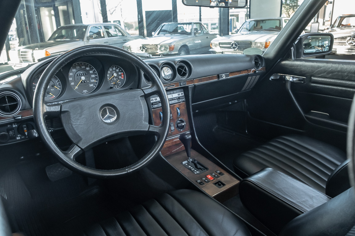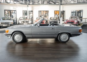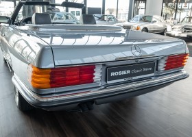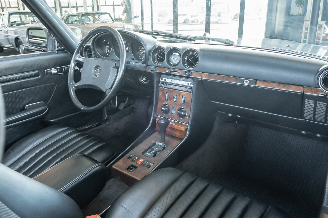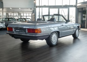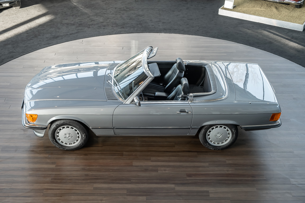 We are proud to offer you a wonderful roadster from the 107 series in the form of this 500 SL - the top SL model of the time. Skilfully this specimen in the color pearl gray metallic stands out from its brothers and sisters in silver and blue-black. In combination with the black leather this 500 knows to set itself discreetly but skillfully in scene. With a quite worth seeing equipment with limited slip differential, air conditioning and seat heating for driver and front passenger hardly desires remained open for the buyers at that time. With just over 160,000 kilometers the vehicle presents itself technically and optically in a remarkably maintained condition. The vehicle has been thoroughly checked and optimized by specialists in our workshop and has undergone major maintenance to make it fit for the upcoming season. Get in and experience the legendary SL-Class in the top model 500 SL.