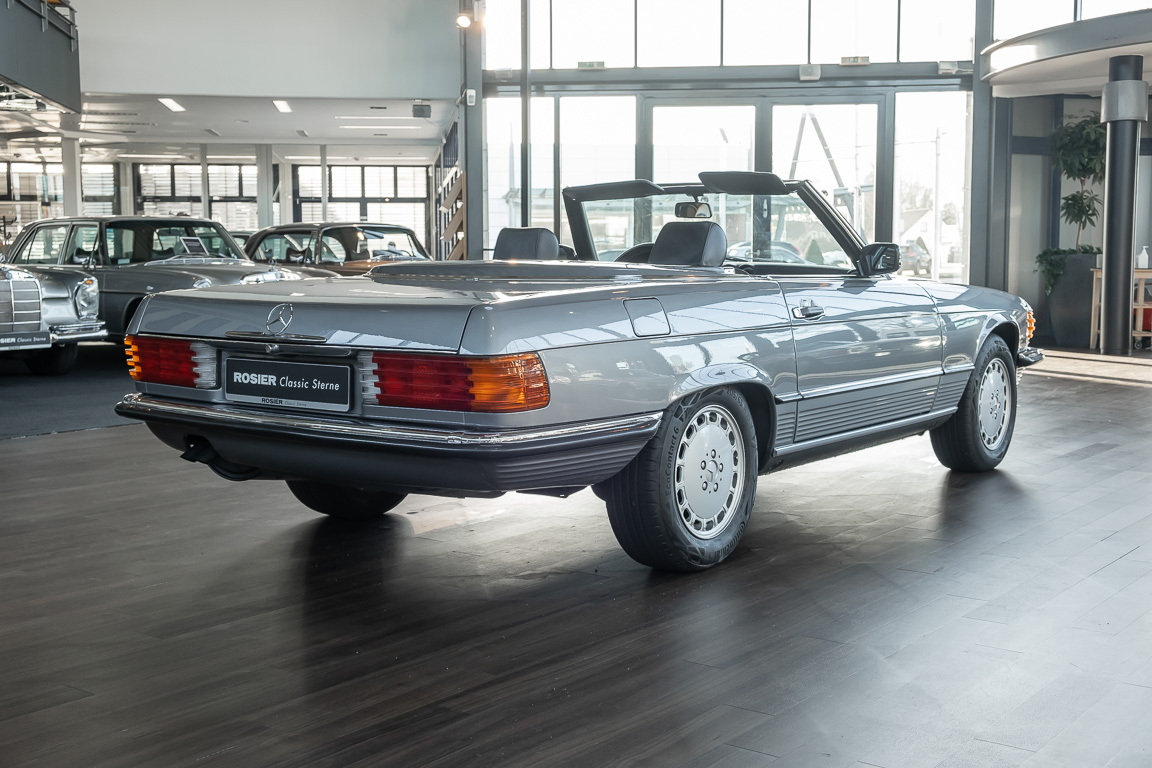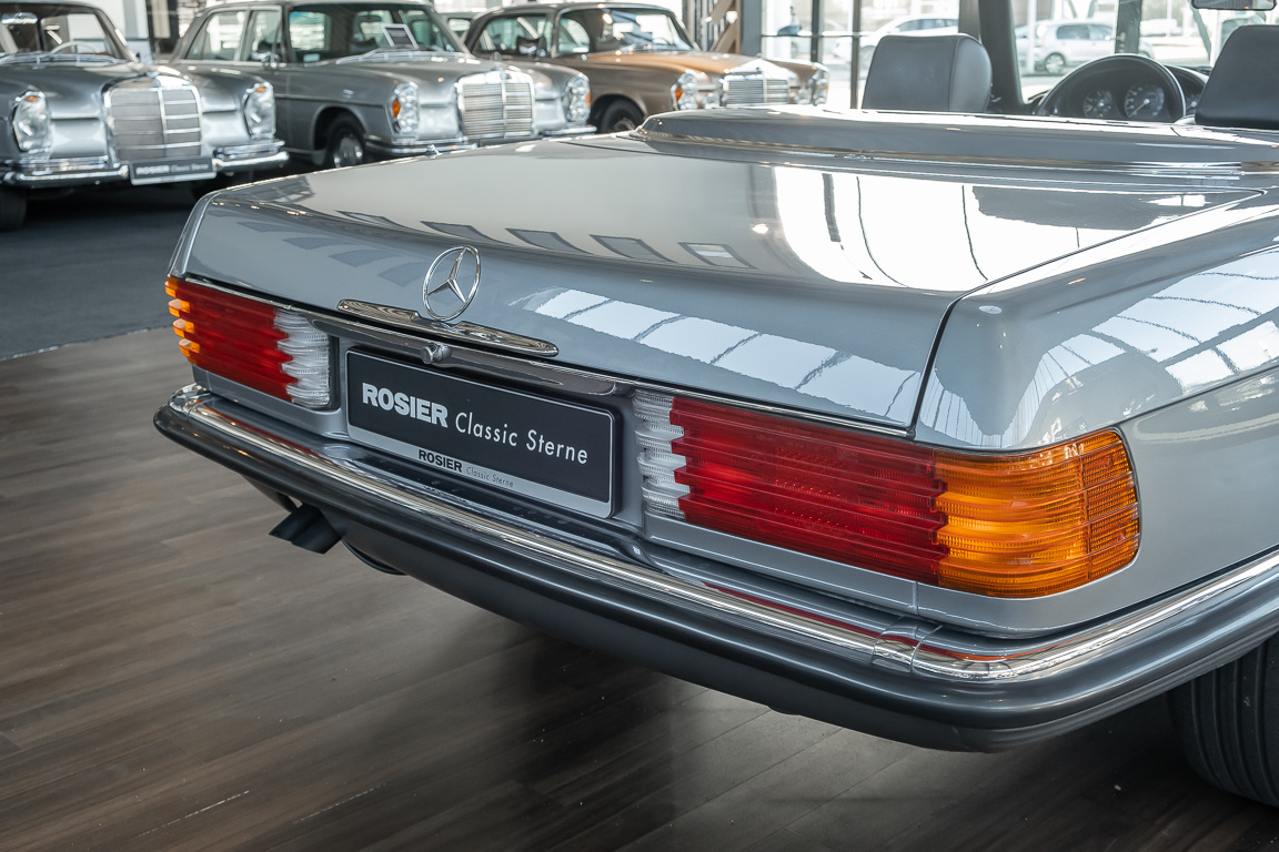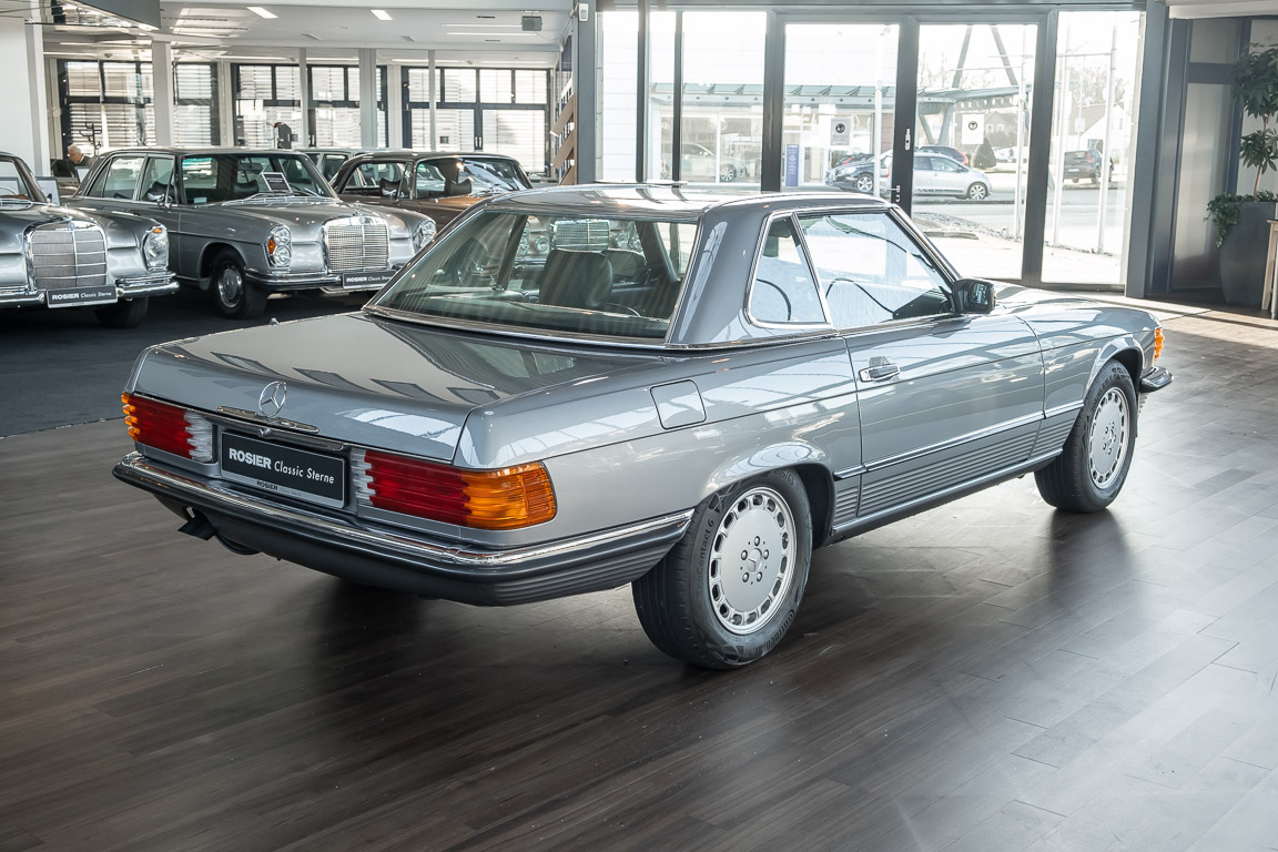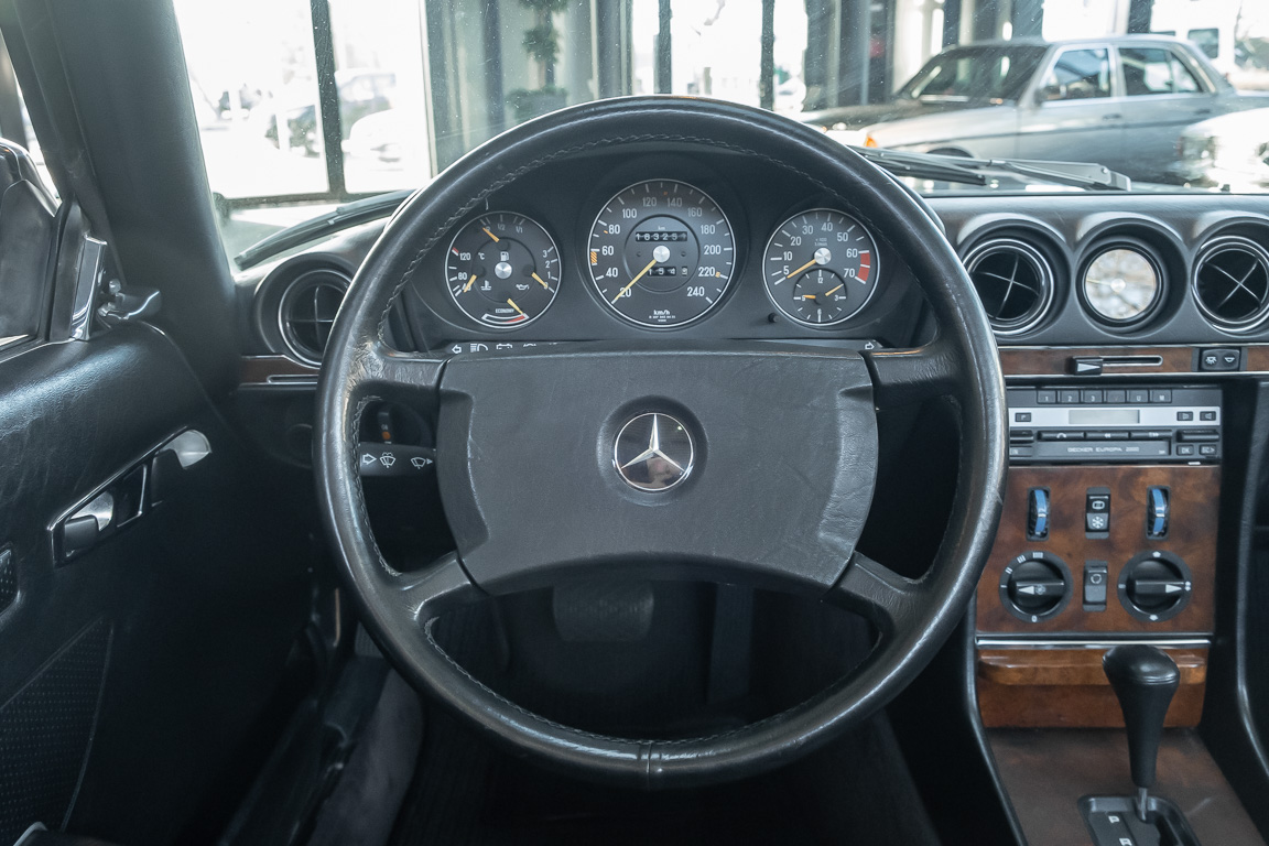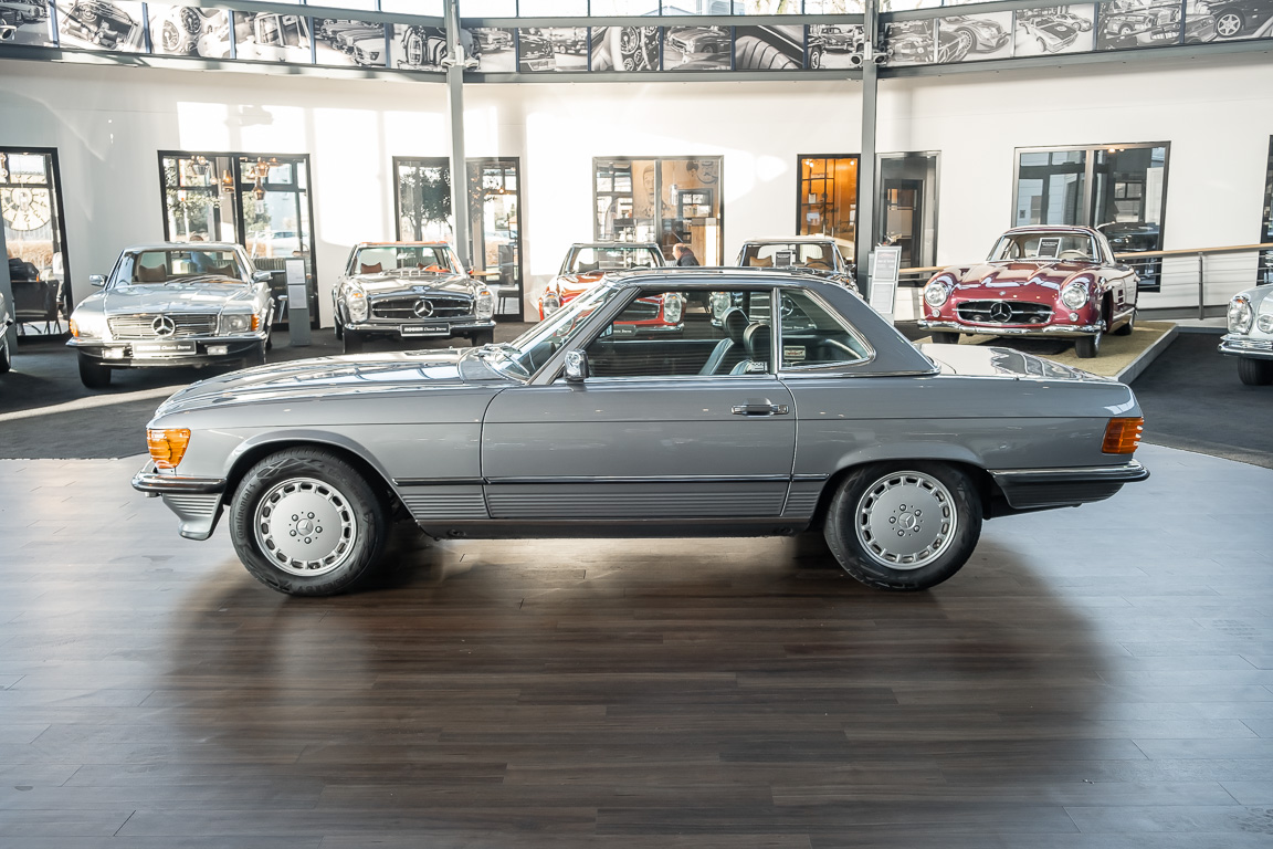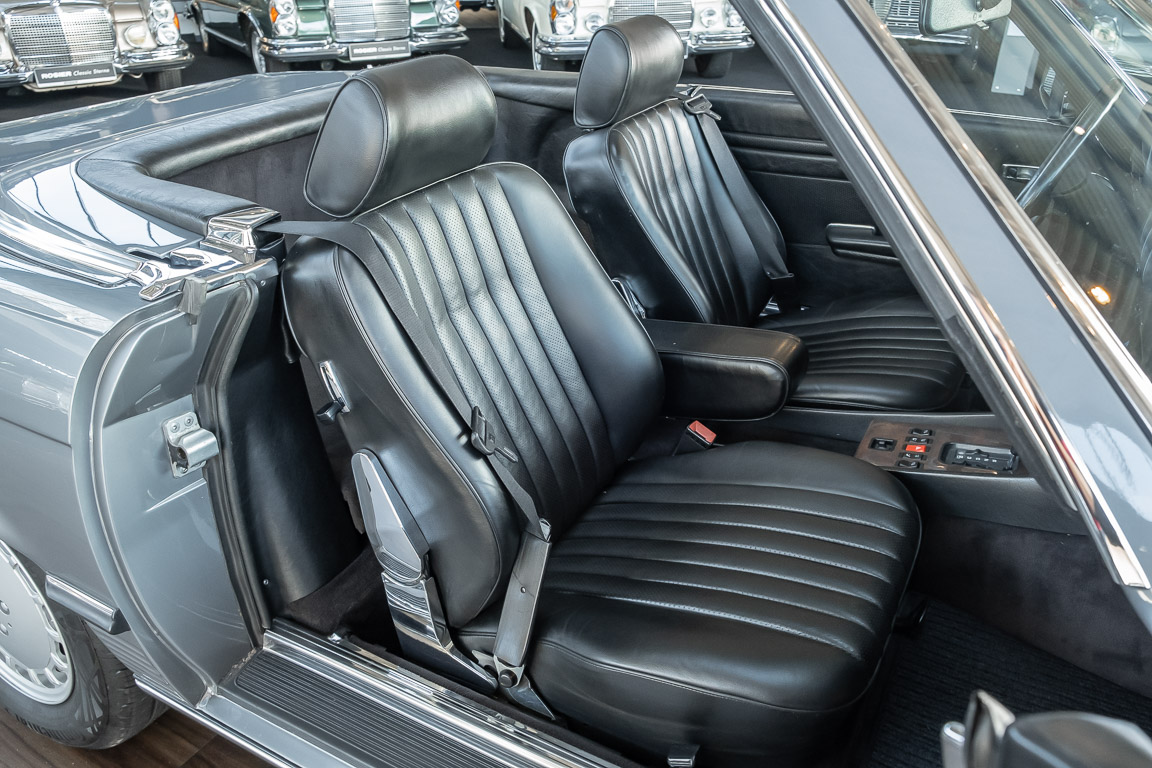 We are proud to offer you a wonderful roadster from the 107 series in the form of this 500 SL - the top SL model of the time. Skilfully this specimen in the color pearl gray metallic stands out from its brothers and sisters in silver and blue-black. In combination with the black leather this 500 knows to set itself discreetly but skillfully in scene. With a quite worth seeing equipment with limited slip differential, air conditioning and seat heating for driver and front passenger hardly desires remained open for the buyers at that time. With just over 160,000 kilometers the vehicle presents itself technically and optically in a remarkably maintained condition. The vehicle has been thoroughly checked and optimized by specialists in our workshop and has undergone major maintenance to make it fit for the upcoming season. Get in and experience the legendary SL-Class in the top model 500 SL.