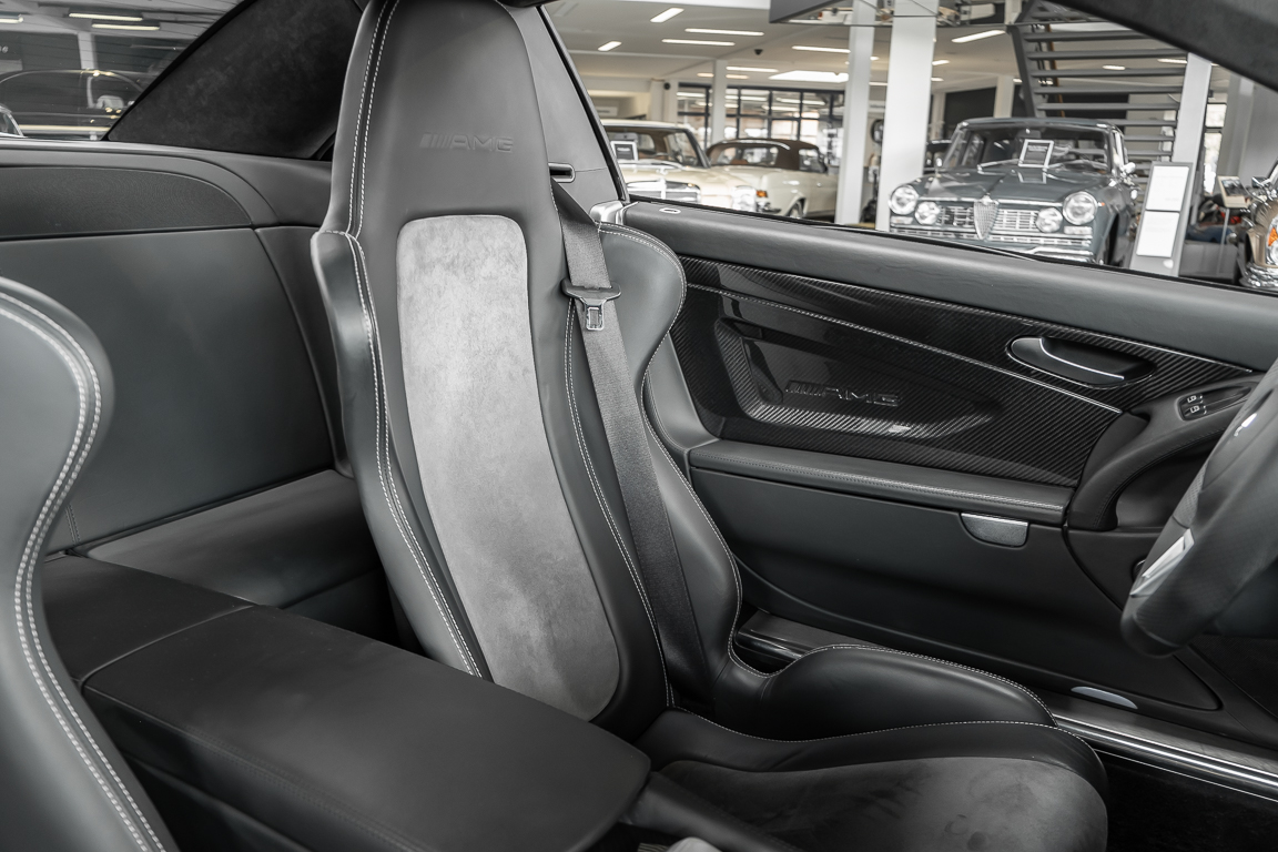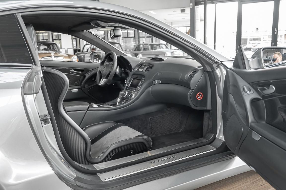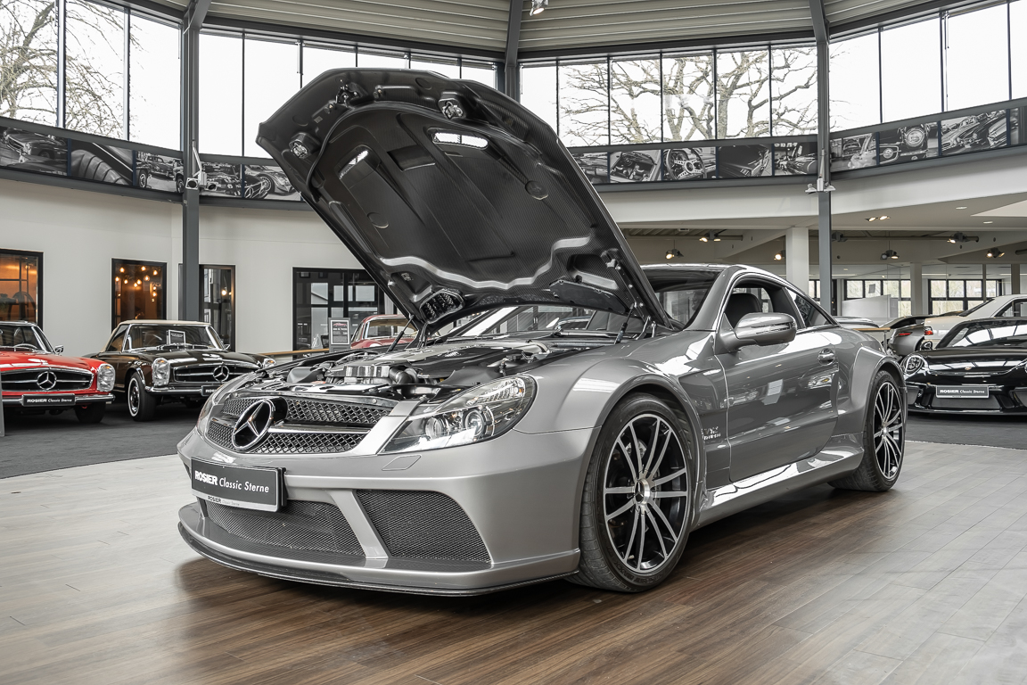 We are pleased to offer you this SL 65 AMG Black Series in the rare color Palladium Silver Metallic. The vehicle found its first owner in the Netherlands. The well-maintained and serviced car impresses with a perfect appearance which was not diminished by unsightly stone chips thanks to protective film on the front section. A major service and new brakes were recently carried out in our workshop, so that the new owner will be able to enjoy this driving machine to the full. An untamed powerhouse that, thanks to the V12 biturbo and a torque of 1,000 Nm, not only looks as fast as an arrow - it is as fast as an arrow. Get in and experience it for yourself.