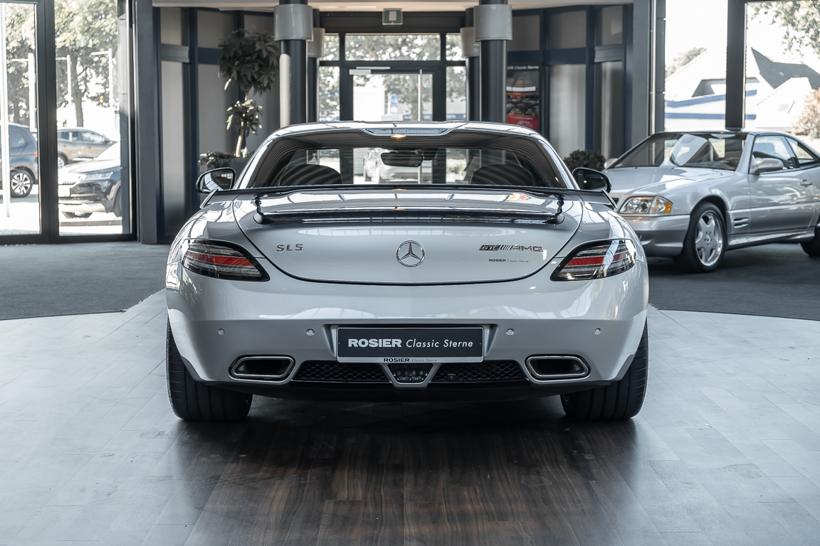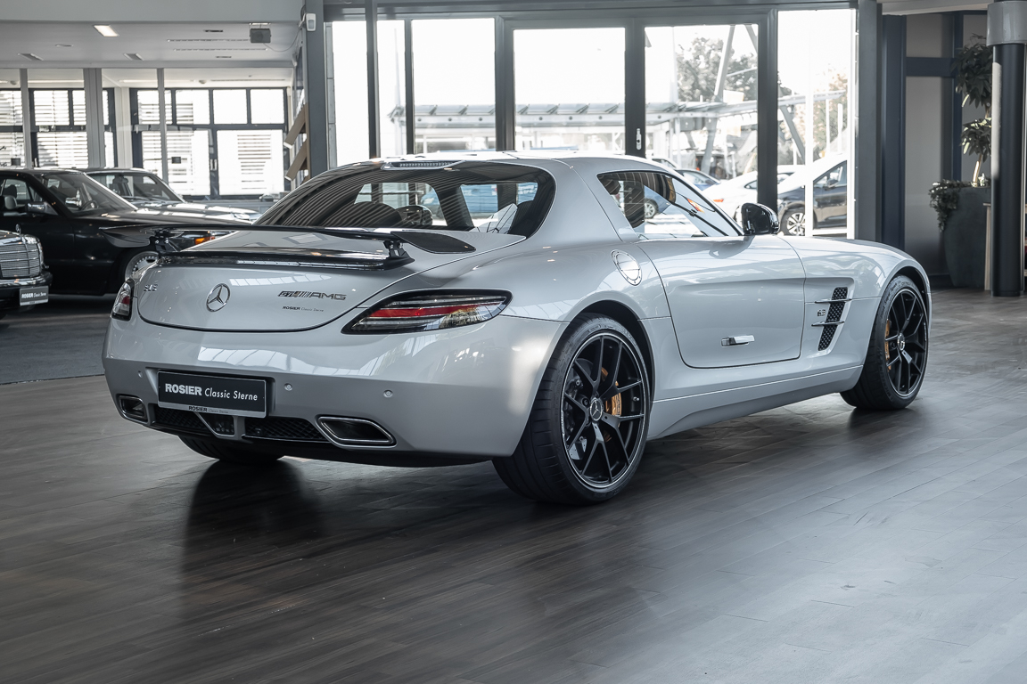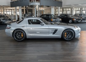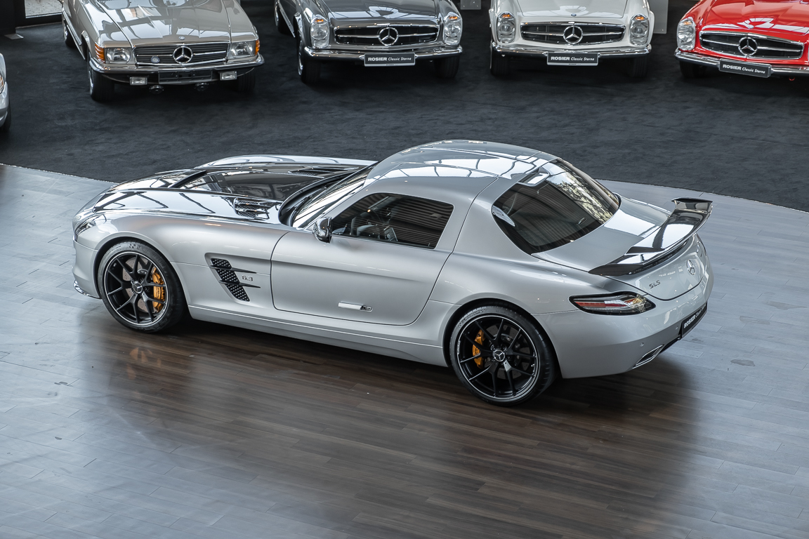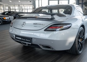 We are pleased to offer you this very special SLS GT Coupé. It is one of only 350 built Final Edition models from 2nd hand. The first registration succeeded by Mercedes-AMG GmbH on 19.03.2014. In 2015, the vehicle succeeded to an AMG enthusiast near Wuppertal, who appreciated the true value of this exceptional SLS and therefore moved the vehicle only extremely rarely and extremely carefully. With just 11,450 km, the vehicle presents itself in year-old car condition. No blemish clouds the perfect picture of this super sports car. A perfect value investment with a lot of potential. Welcome to ROSIER Classic Stars.