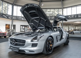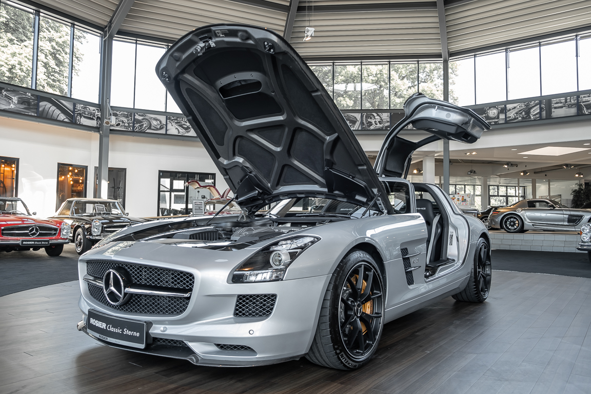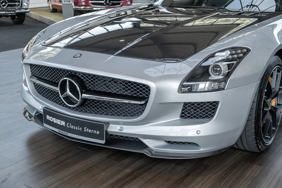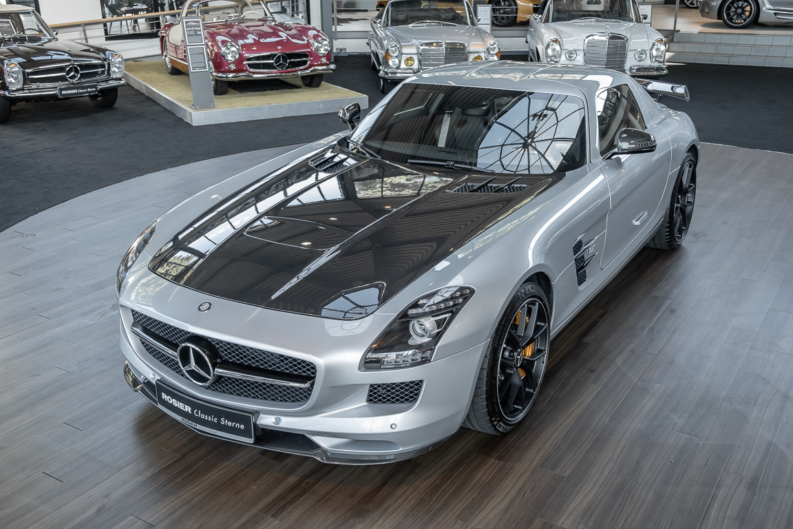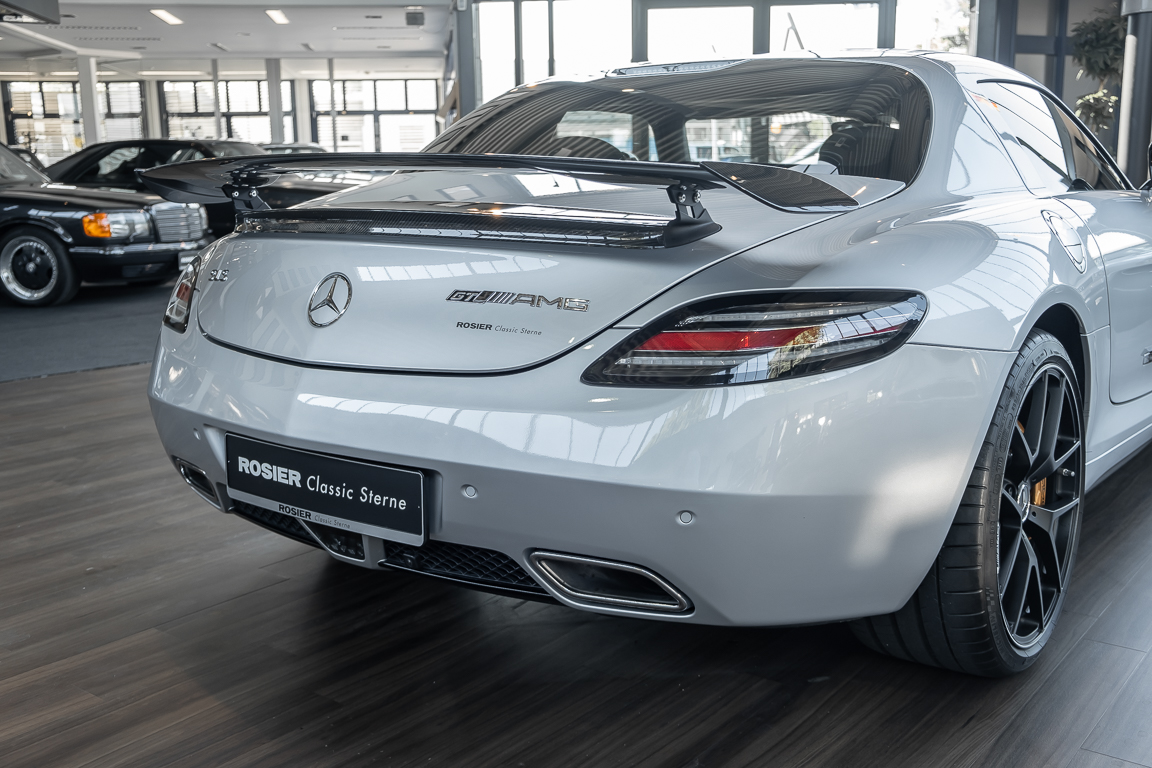 We are pleased to offer you this very special SLS GT Coupé. It is one of only 350 built Final Edition models from 2nd hand. The first registration succeeded by Mercedes-AMG GmbH on 19.03.2014. In 2015, the vehicle succeeded to an AMG enthusiast near Wuppertal, who appreciated the true value of this exceptional SLS and therefore moved the vehicle only extremely rarely and extremely carefully. With just 11,450 km, the vehicle presents itself in year-old car condition. No blemish clouds the perfect picture of this super sports car. A perfect value investment with a lot of potential. Welcome to ROSIER Classic Stars.