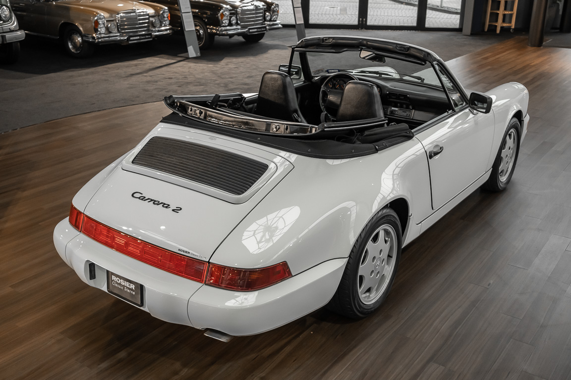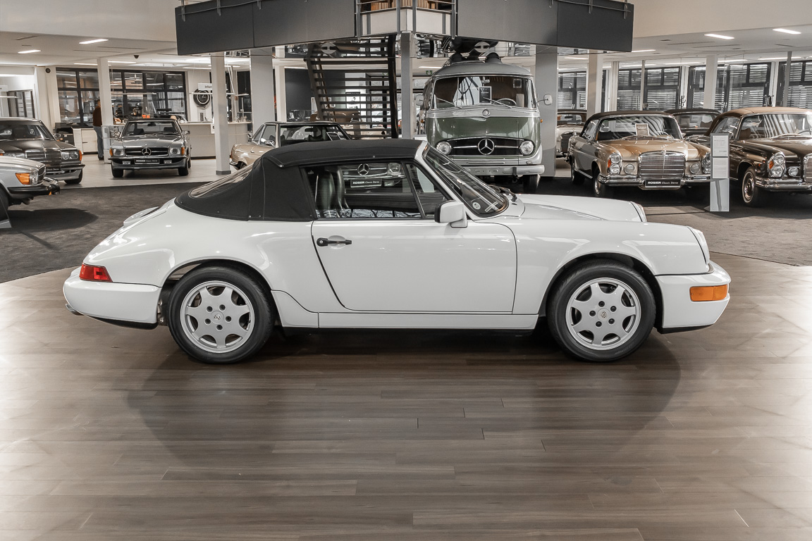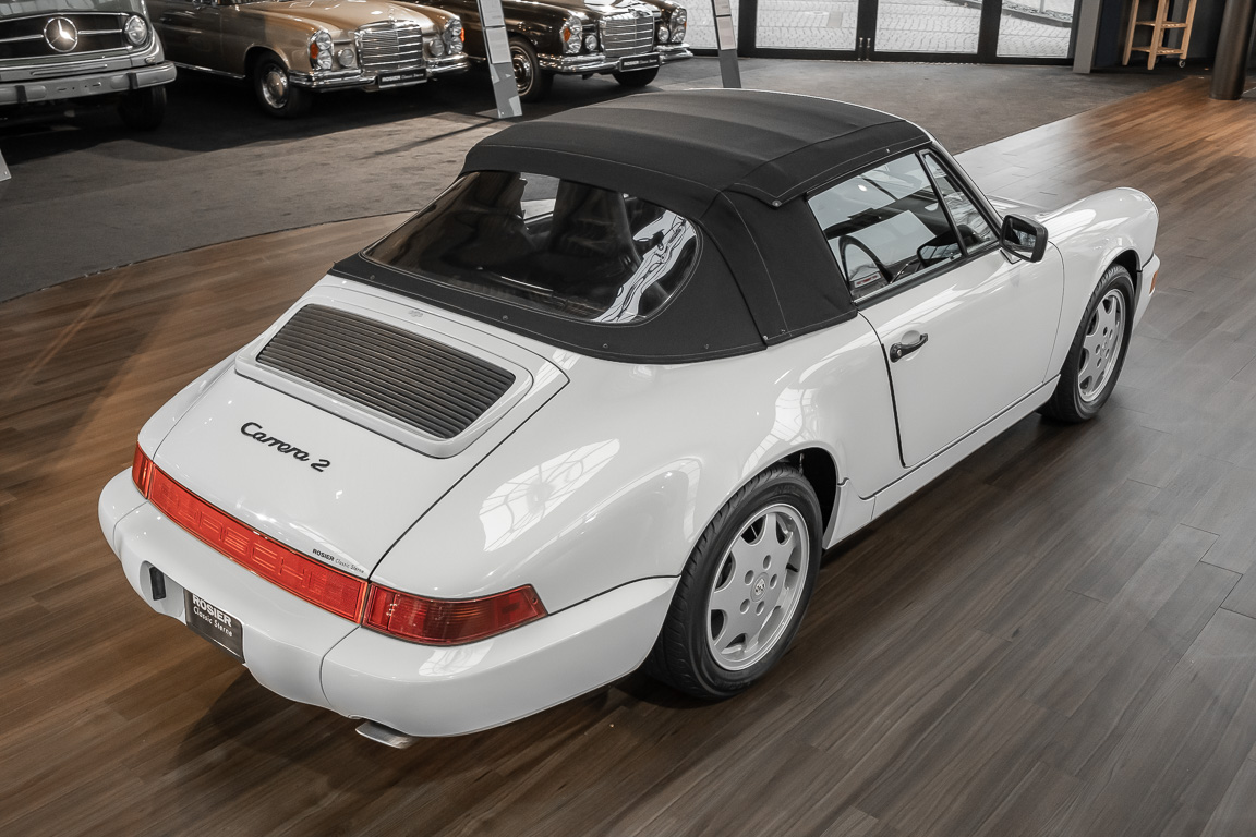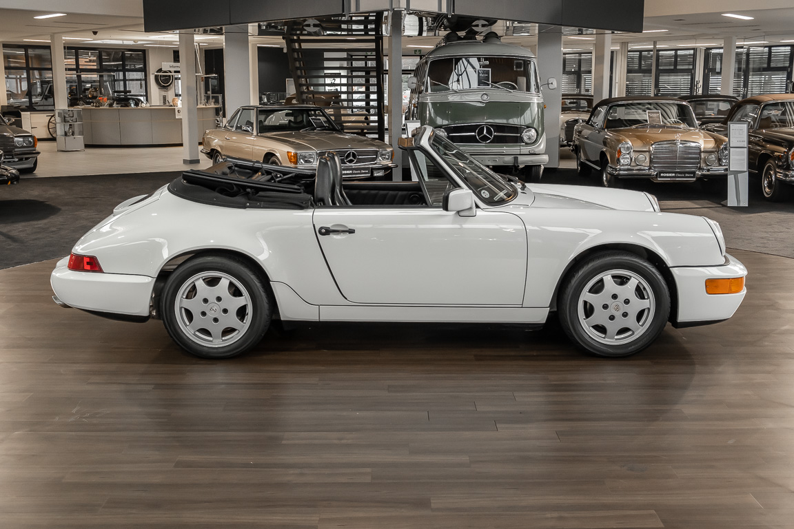 We are pleased to offer you this wonderful 964 Porsche Cabrio. Very special is certainly the dreamlike condition of this 1991 Cabriolet, which you do not notice the mileage of 59,885 miles in the slightest. Very special, however, is the story behind this white Carrera Cabrio. Whitney Houston, the world-famous singer and actress, ordered this vehicle from the Porsche dealer she trusted on April 26, 1991. With more than 200 million records sold and over 200 gold, platinum, silver and diamond records, as well as six Grammys, she is one of the world's most successful singers! In 1992, shortly after the purchase of this vehicle, she reached the peak of her popularity through her acting debut in the lead role of the movie Bodyguard as well as through the soundtrack "The Bodyguard", which was largely sung by her. We offer you a rare opportunity to experience a piece of musical history.