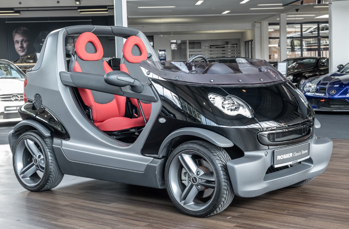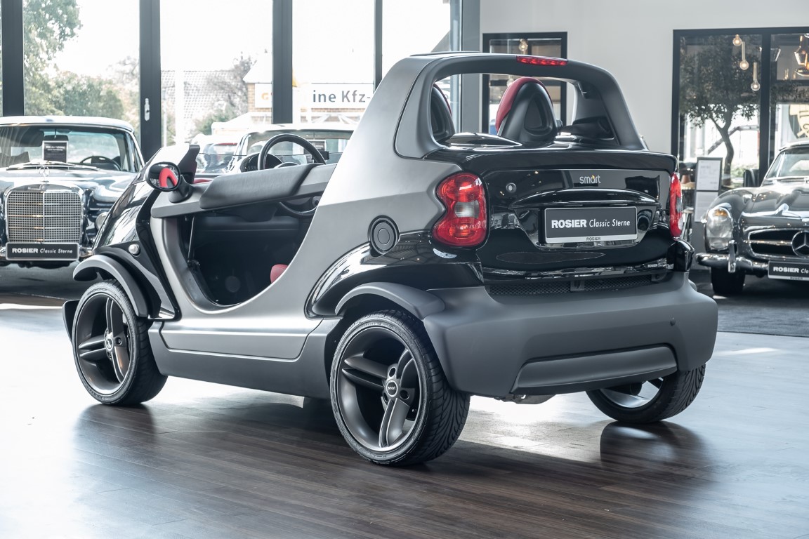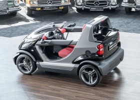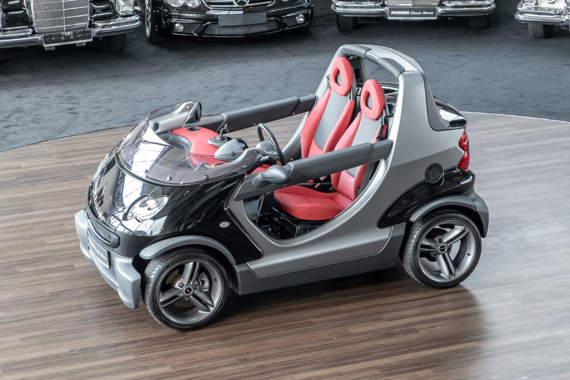 Finally, the vehicle was moved to the beautiful island of Sylt, where it certainly made a special appearance. As a sign for the exclusively manufactured quantity, each Smart Crossblade is decorated with a consecutively numbered metal sign. You can now purchase the number 1234. By the way, anyone who wanted to attract attention with this open-topped speedster back then had to spend a proud 24,360 euros. Get in, stand out and have fun.