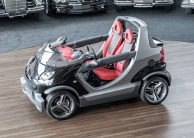 The Smart Crossblade is definitely a vehicle for individualists. The small-series fun vehicle, limited to 2000 units, promises a very special driving experience. Due to the open construction the driver feels more like being on a motorcycle than in a car. The 70 horsepower has hardly any load with the 730 kg light Smart, which is electronically limited only at 135 km/h. Thanks to a clever mix of materials, even rainy weather cannot harm the vehicle. The instrument panel and seats are covered with a waterproof, fire-red plastic, the floor of the interior is made like a bathtub with four drainage channels that lead the water outside in heavy rain.