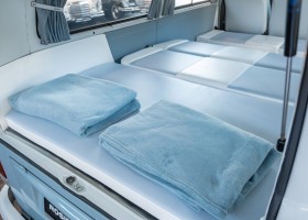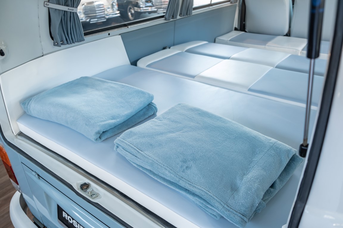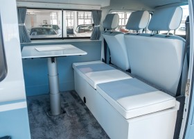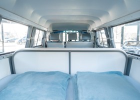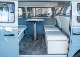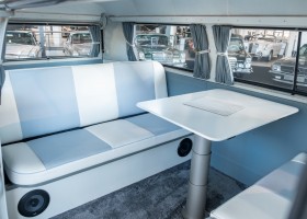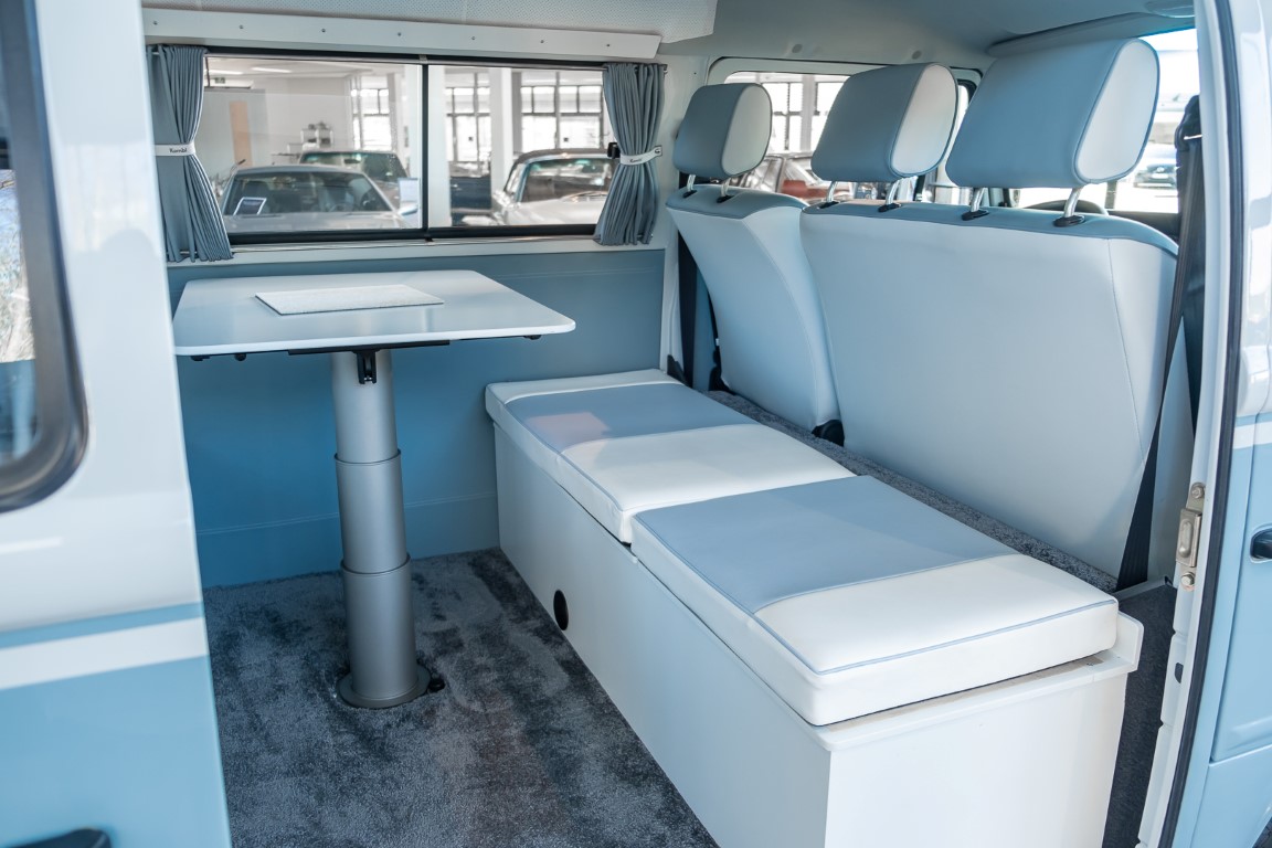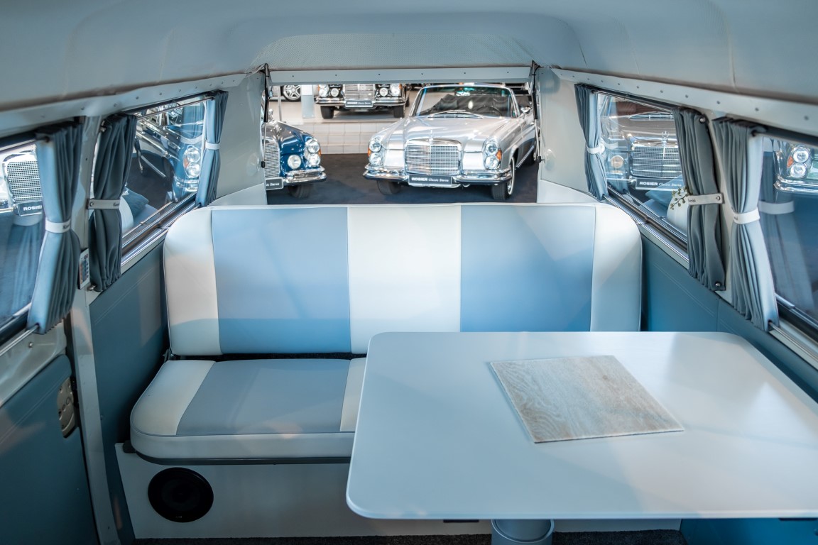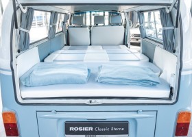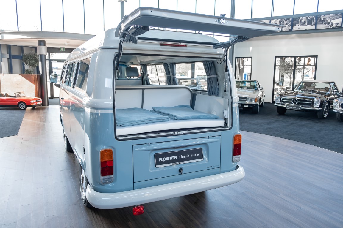 But something else makes this vehicle not only rare but unique: Following the successful camping extensions of Westfalia and Co. the previous owner decided to transform the Bulli into a camper. A special company converted the spacious interior into a camper. The fold-down bench seat opens up a lying area of about 150 x 180 cm. Table, benches and refrigerator invite to the comfortable picnic and an awning makes each excursion a small vacation - with a sympathetic and faithful companion. Over 10.000 € let the Bulli fan from the Rhine Ruhr Metropole cost itself the professional conversion. Protected with a complete cavity sealant, this very special Bulli should provide many more years of enjoyment.