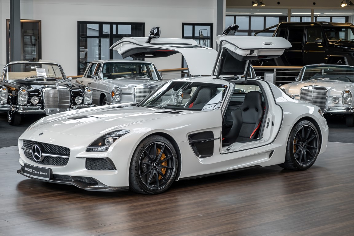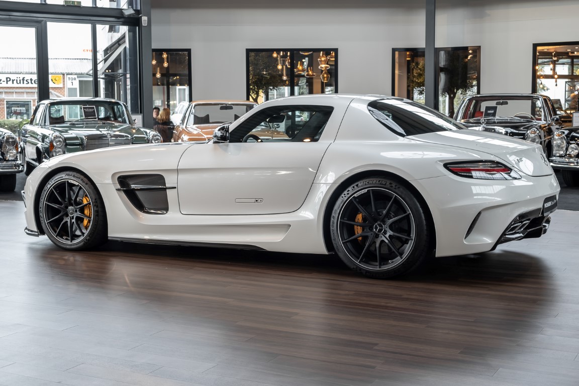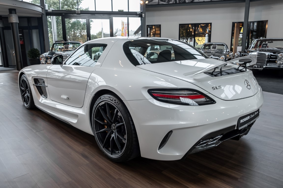 Im Juni 2013 war der offizielle Verkaufsstart der Highend-Version des Flügeltürers, den SLS AMG Coupé Black Series. Wer dieses von der Rennversion SLS AMG GT3 inspirierte Supersport-Coupé haben wollte, musste schnell sein: Denn die gerade einmal 408 Einheiten wurden von Sammlern aus der ganzen Welt sehnsüchtig erwartet und waren unverzüglich ausverkauft. Das fünfte Black Series-Modell von Mercedes-AMG faszinierte seine Liebhaber durch atemberaubendes Design, überragende Fahrdynamik und konsequenten Leichtbau. Mit einem Leergewicht von 1550 Kilogramm und einer Motorleistung von 631 PS bei 7400/min erreicht der SLS AMG Black Series ein Leistungsgewicht von 2,45 kg/PS. Damit wird der dynamischste straßenzugelassene Flügeltürer in nur 3,6 Sekunden auf Tempo 100 katapultiert.