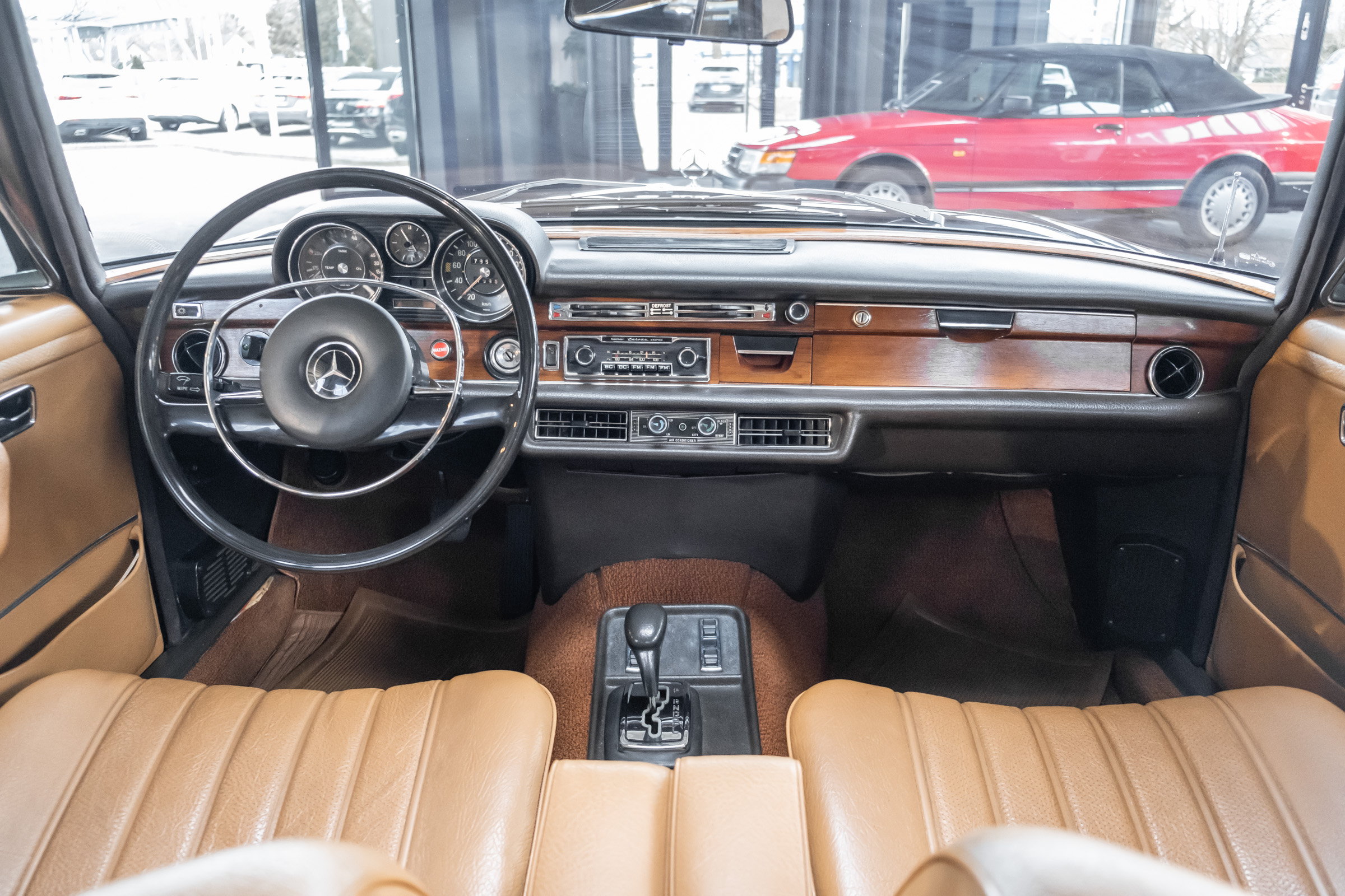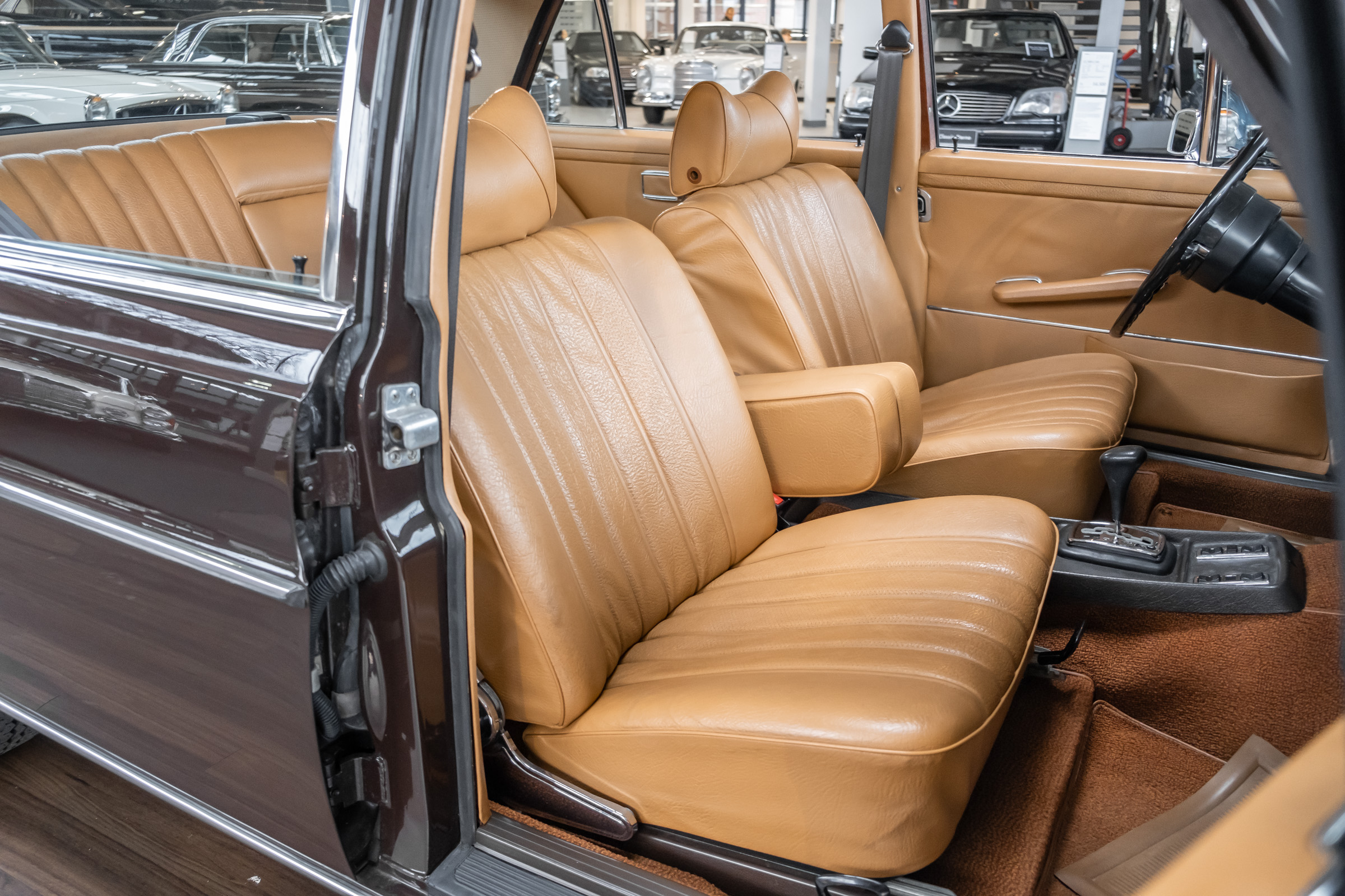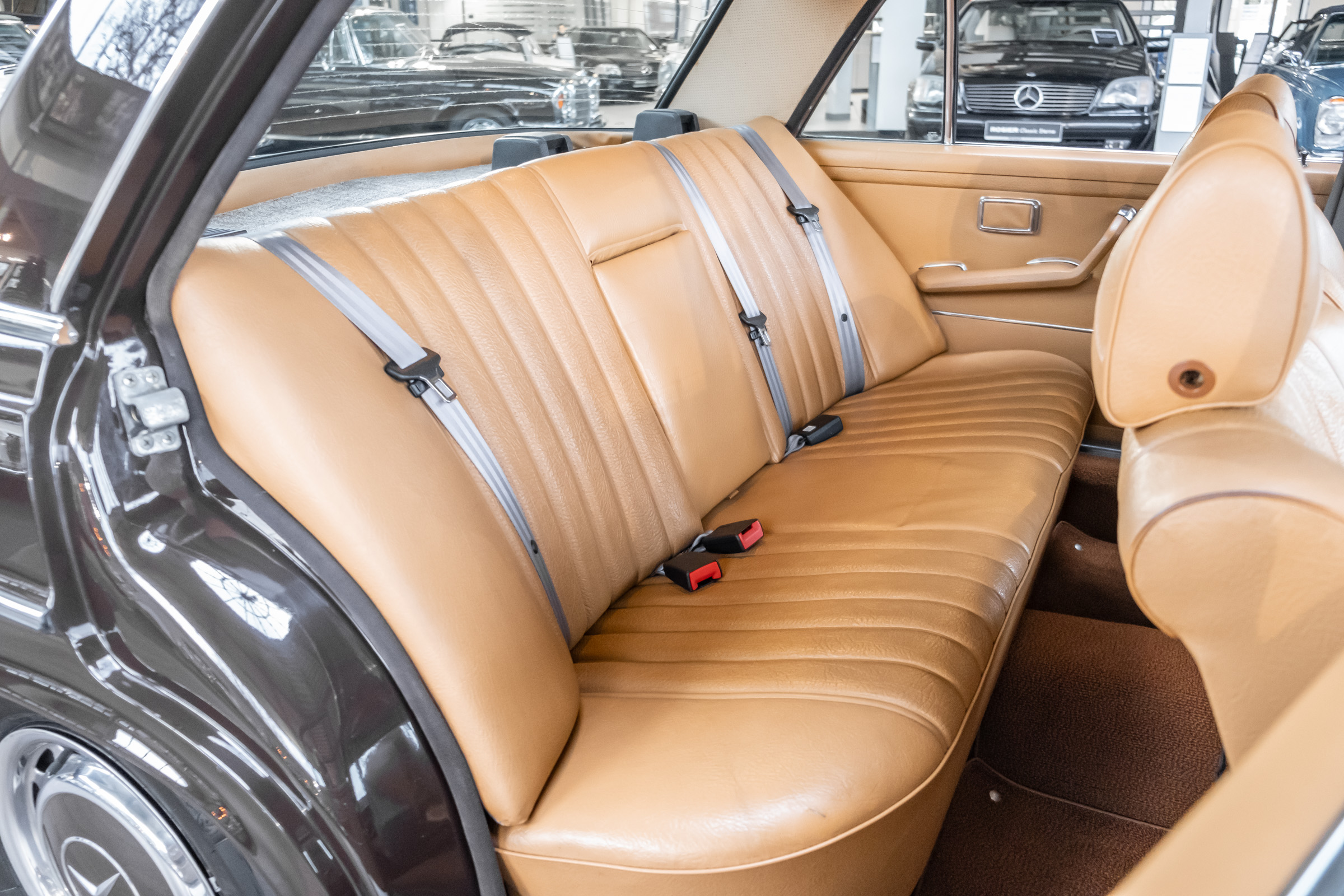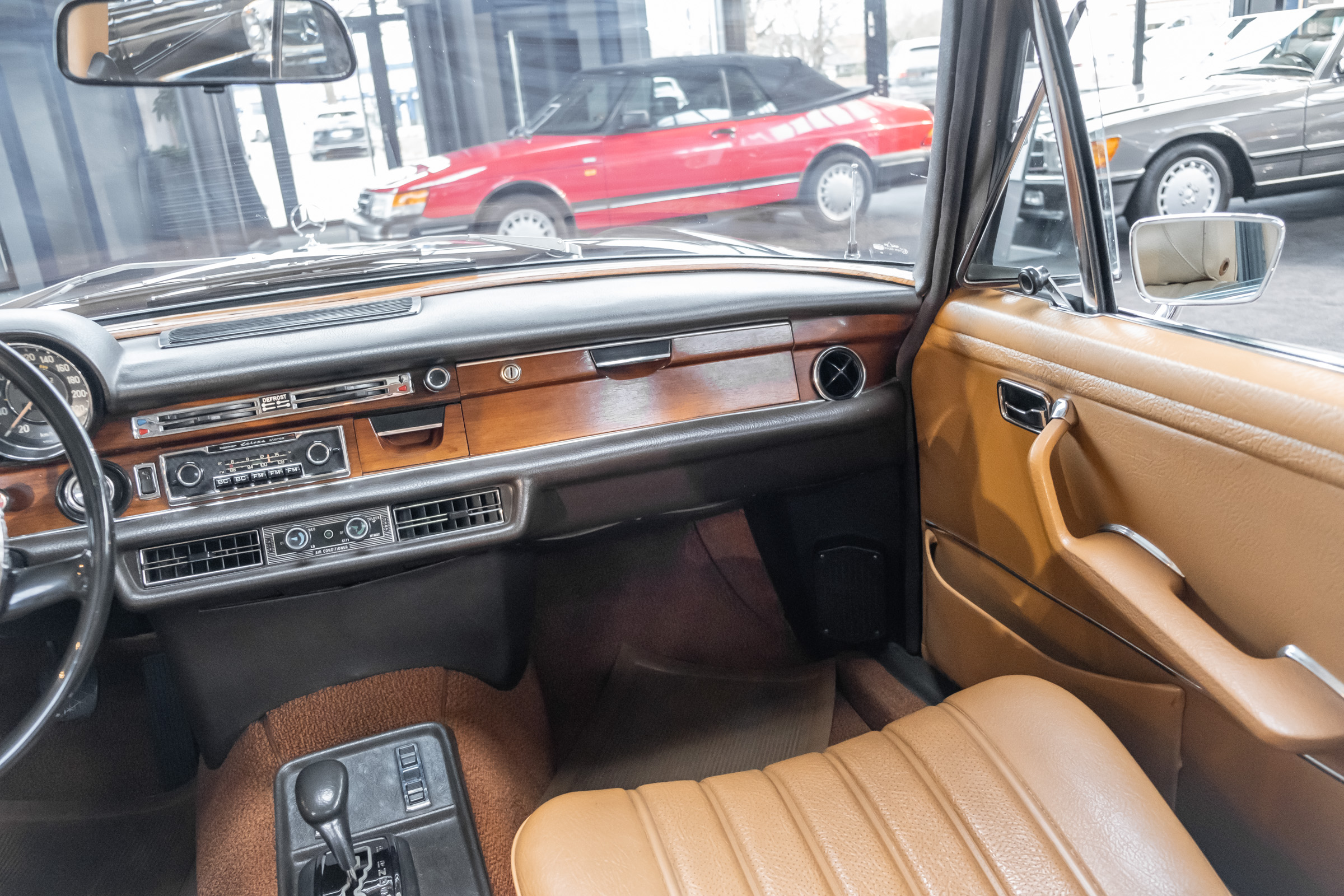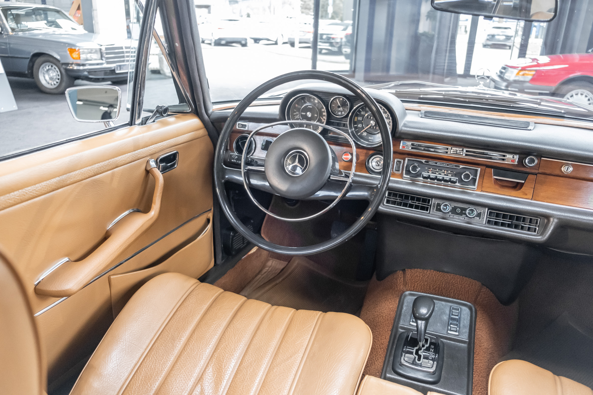 Neu im Showroom: originaler ungeschweißter 280 SEL 4.5 W108 mit Automatikgetriebe, Radio Europa, Klimaanlage, elektr. Fensterheber (4x), elektr. Schiebedach, MB-Tex Ausstattung in Cocnac, Lautsprechersystem, Mittelarmkonsole,