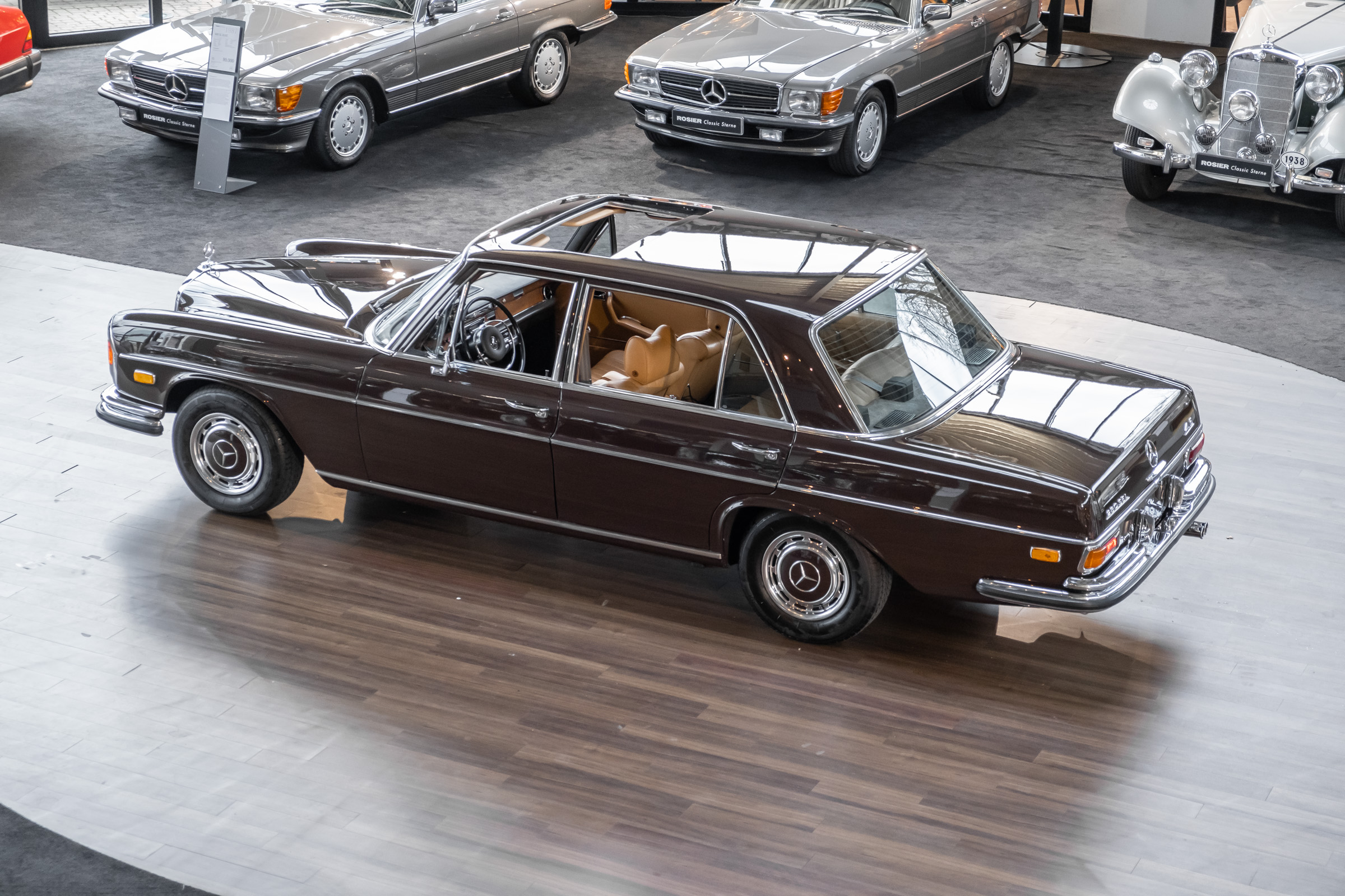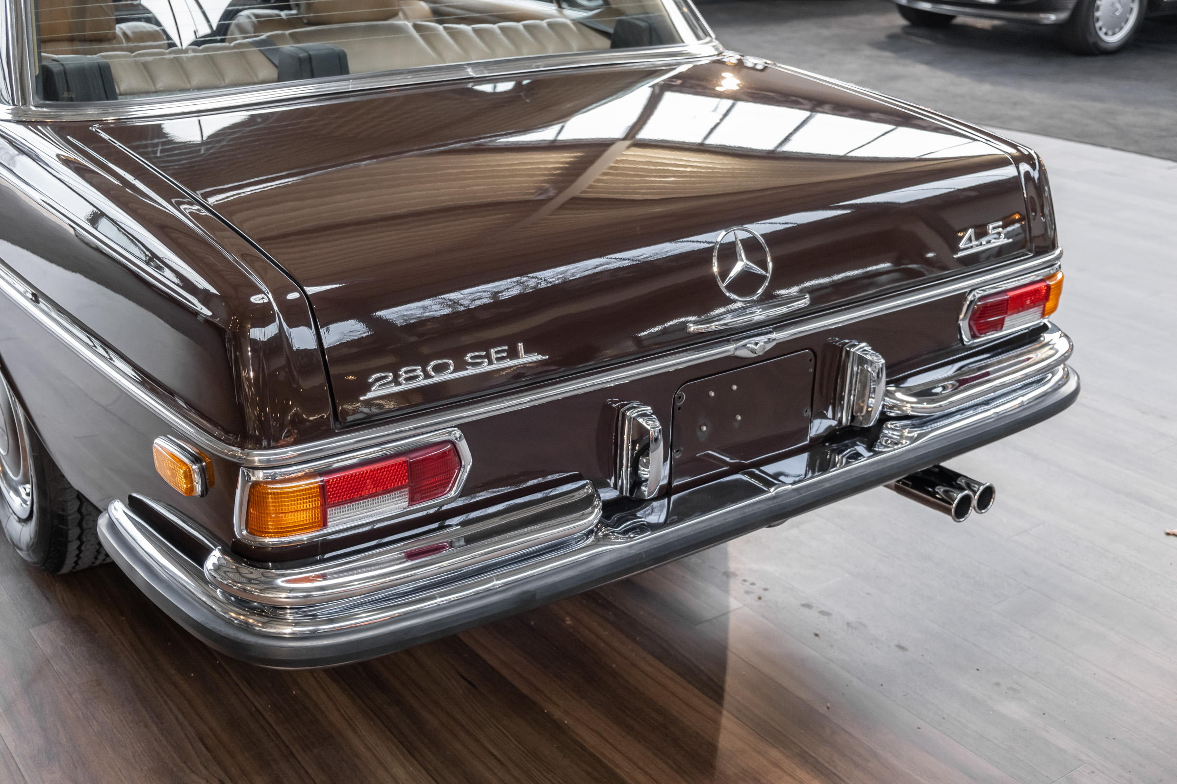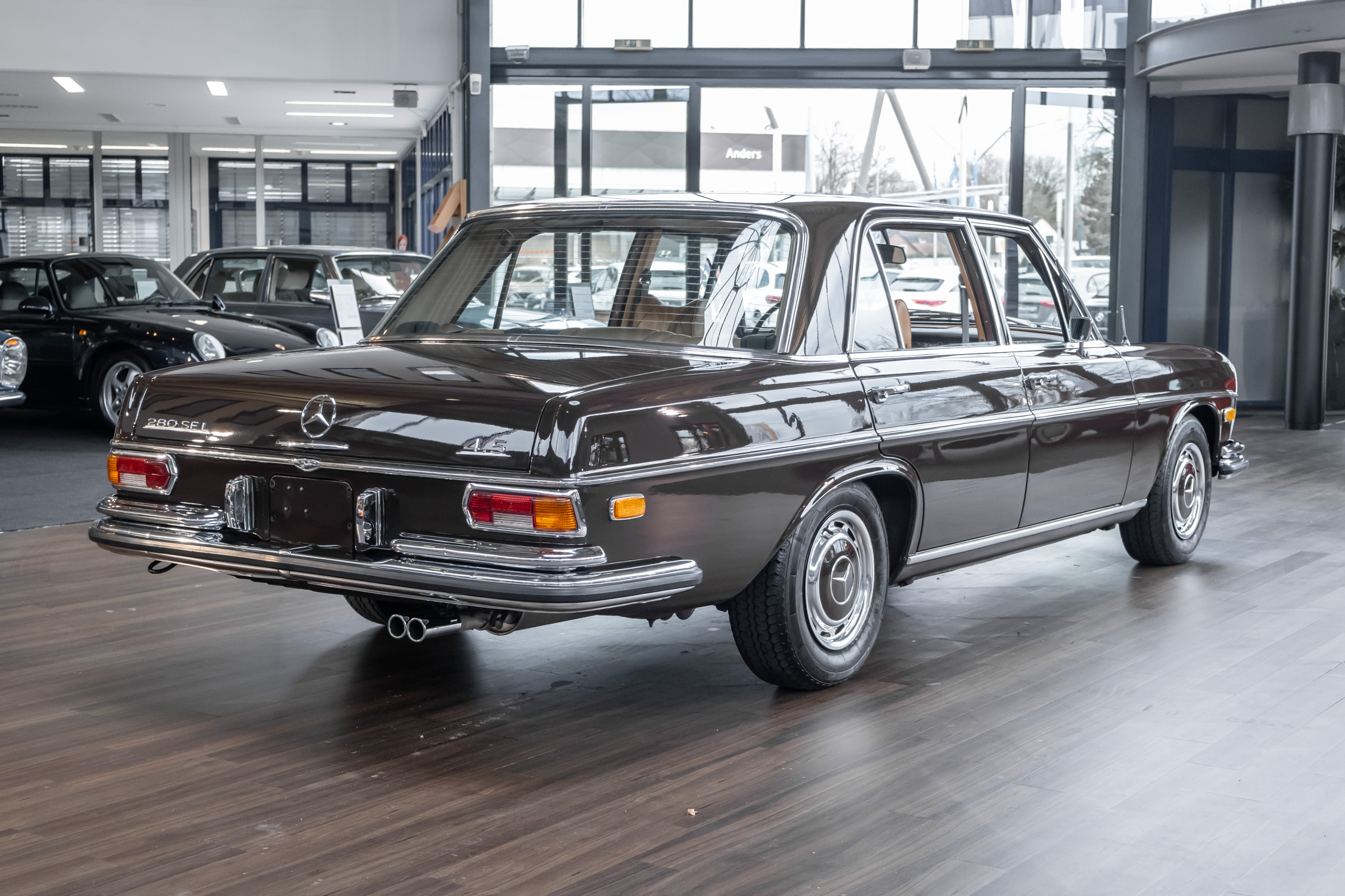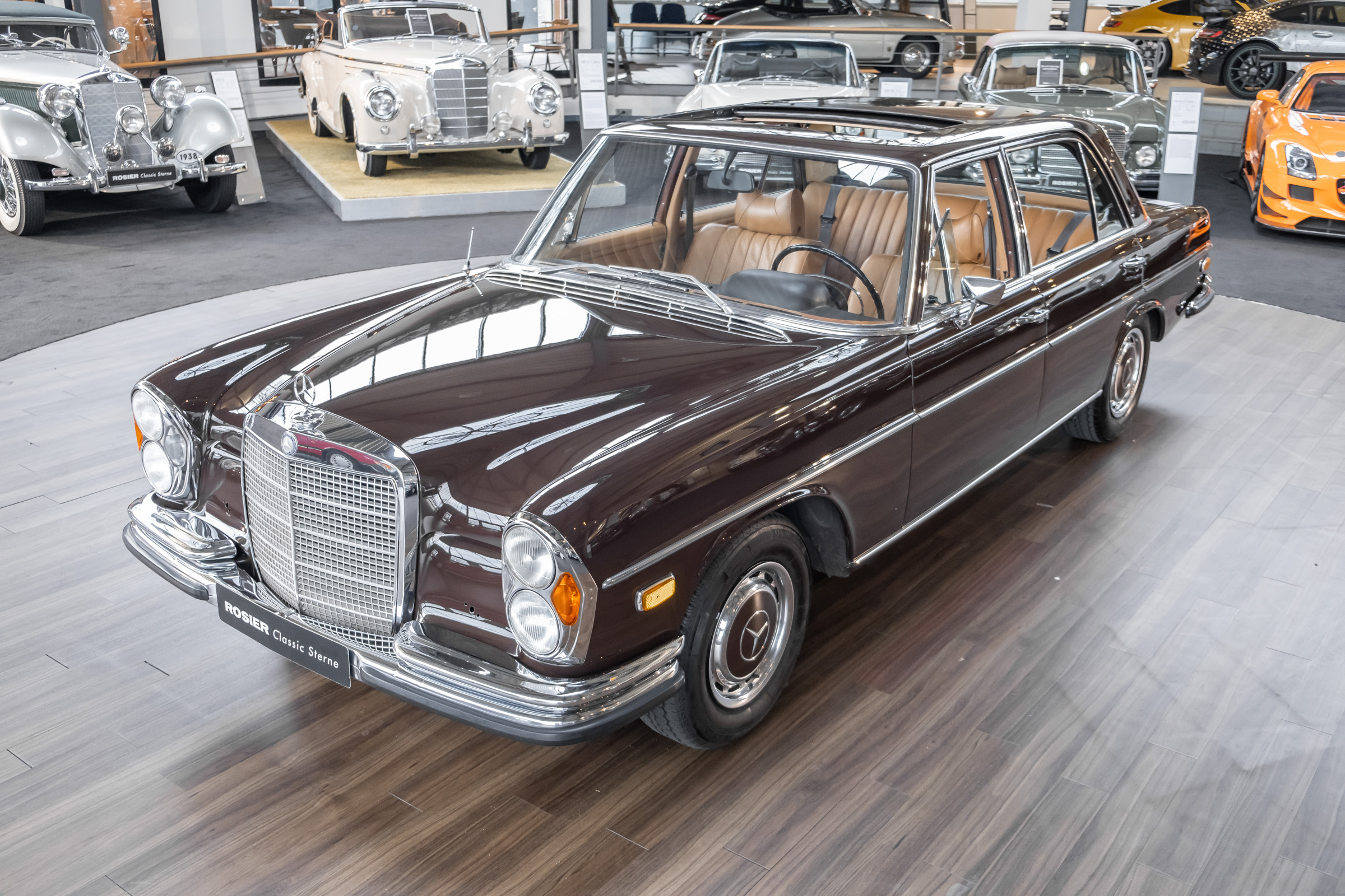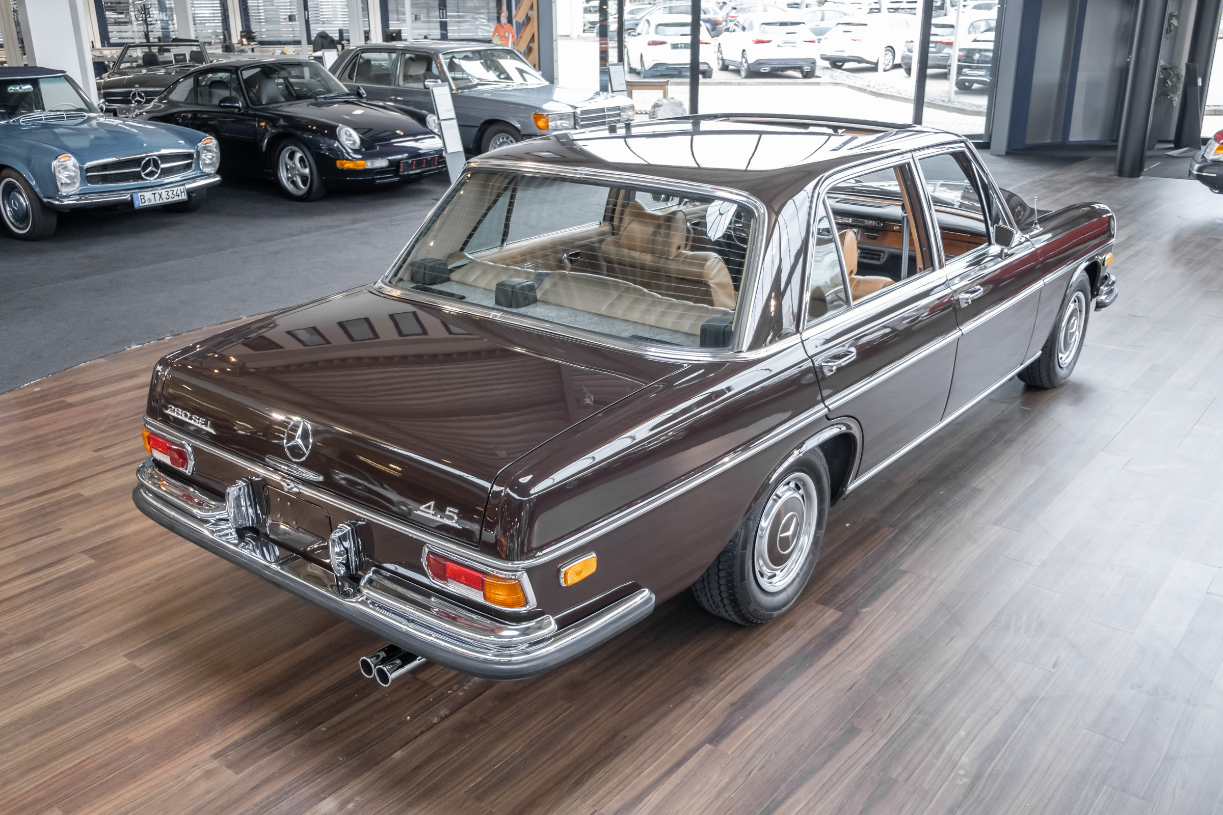 Neu im Showroom: originaler ungeschweißter 280 SEL 4.5 W108 mit Automatikgetriebe, Radio Europa, Klimaanlage, elektr. Fensterheber (4x), elektr. Schiebedach, MB-Tex Ausstattung in Cocnac, Lautsprechersystem, Mittelarmkonsole,