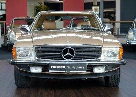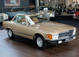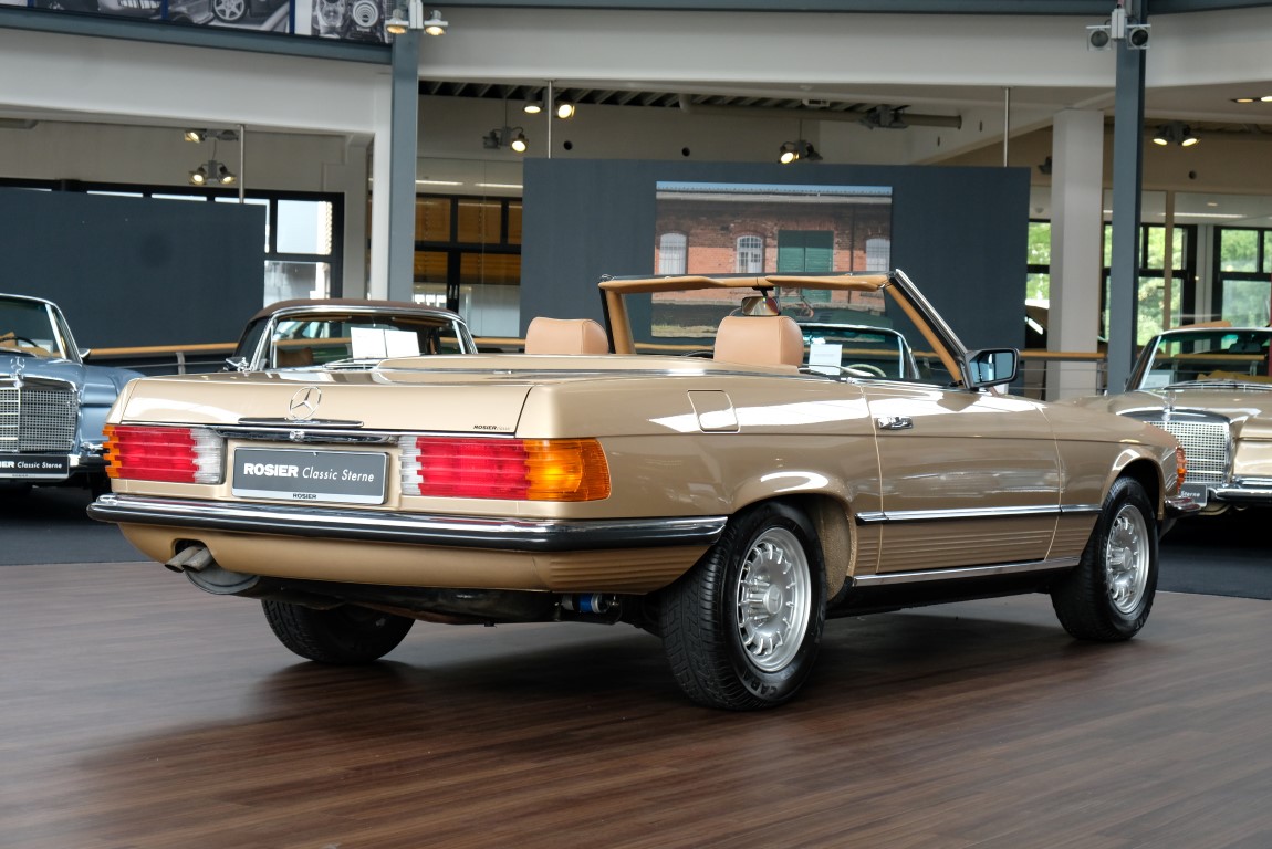 Am 01. Oktober 1981 wurde der elegante Roadster in der damals hochaktuellen Farbe Champagner-metallic ausgeliefert. Er war ausgestattet mit beigem Echtleder, einem 5-Gang Schaltgetriebe und Sitzheizung für Fahrer und Beifahrer. Der Wagen war bestimmt für Wochenendausflüge an sonnigen Tagen. Das herrliche Maintal, in dem der Wagen sein Zuhause hatte, lud förmlich dazu ein. In 2012 kam der Wagen erstmalig in unseren Besitz, er hatte gerade einmal 14.000 km gelaufen. Wir verkauften den Roadster an einen Sammler klassischer Fahrzeuge, der ihn in den Folgejahren ab und an bewegte, um Standschäden zu vermeiden. Heute hat der Wagen gerade einmal 16.200 Originalkilometer gelaufen und befindet sich in sensationellem neuwagenähnlichen Bestzustand.