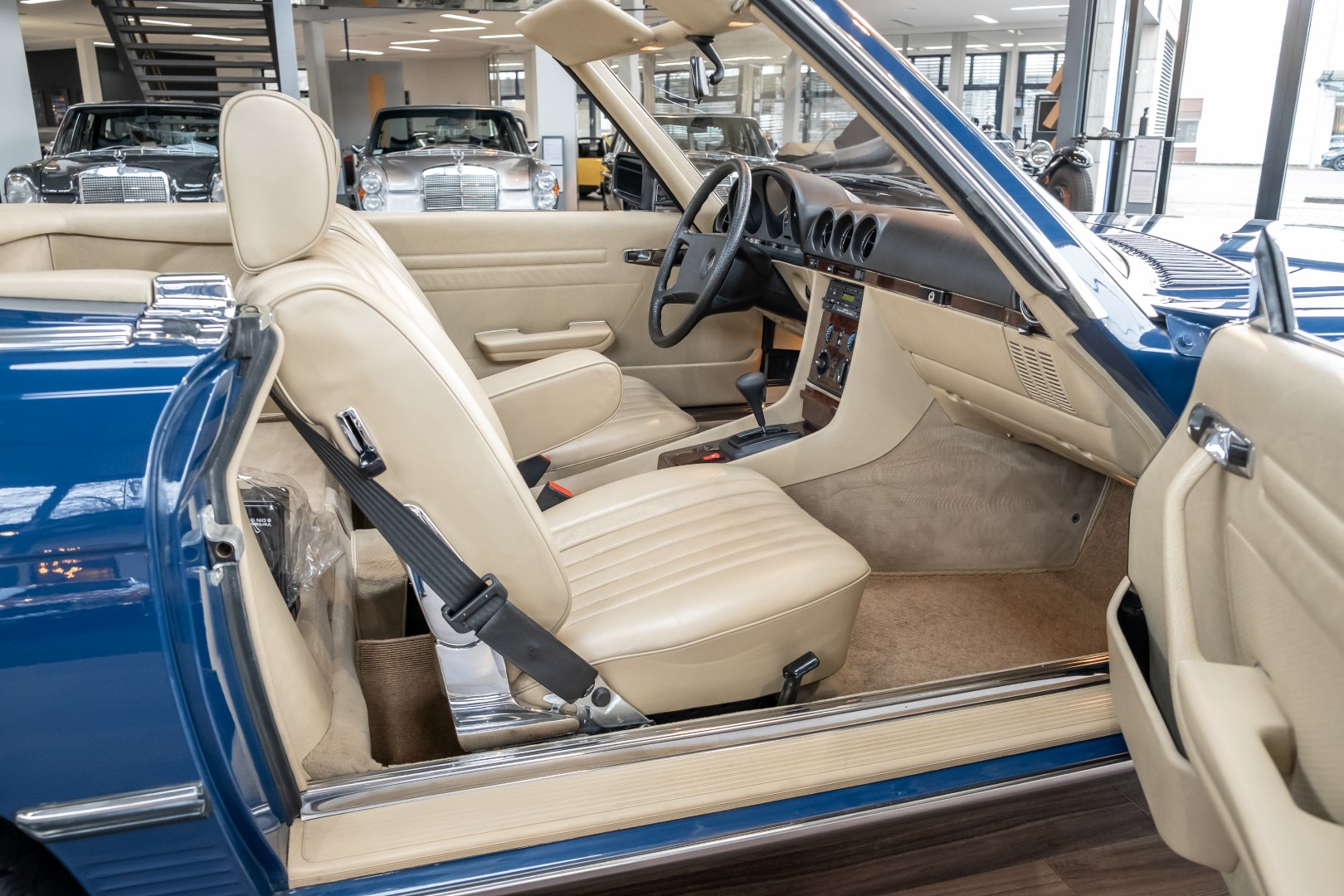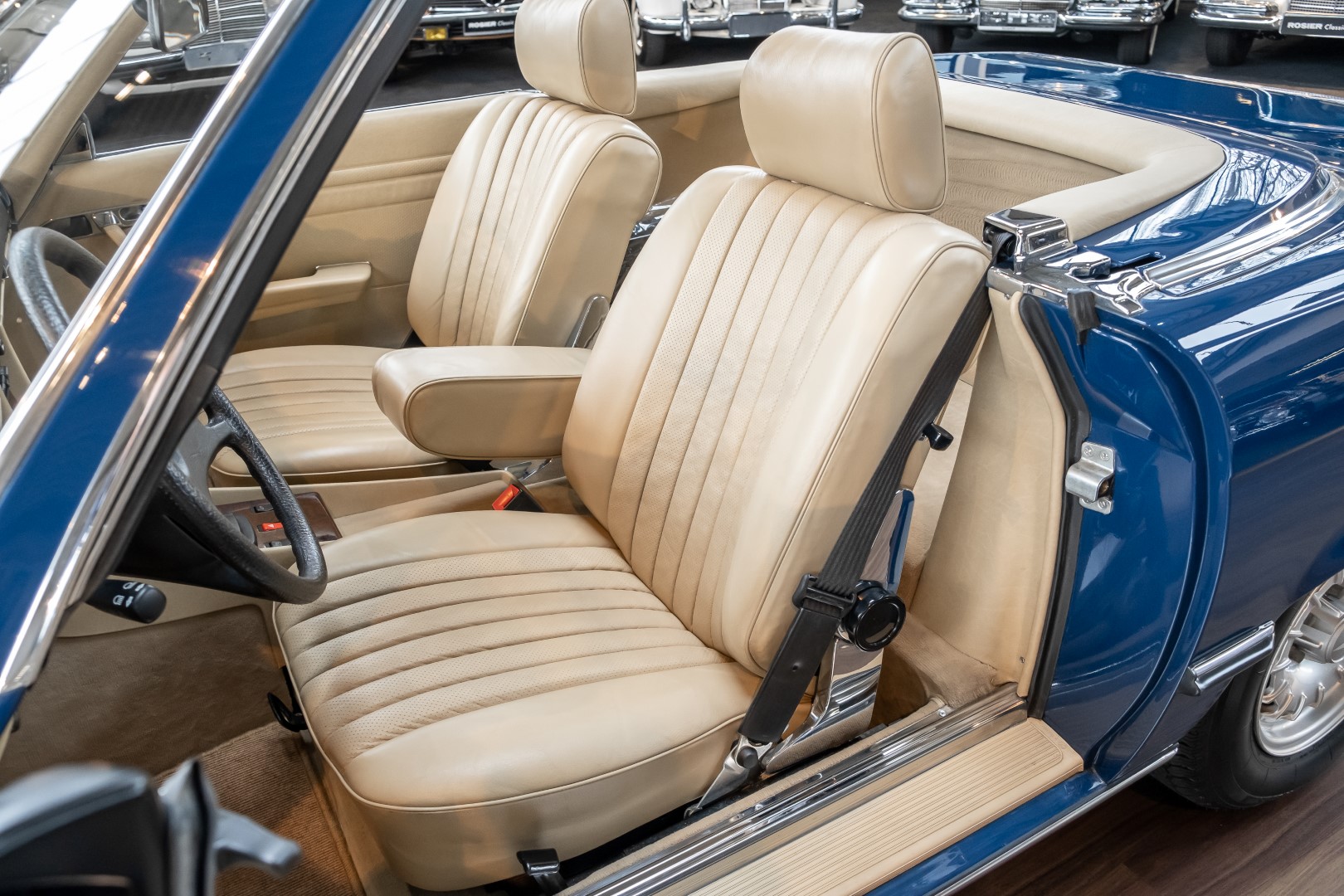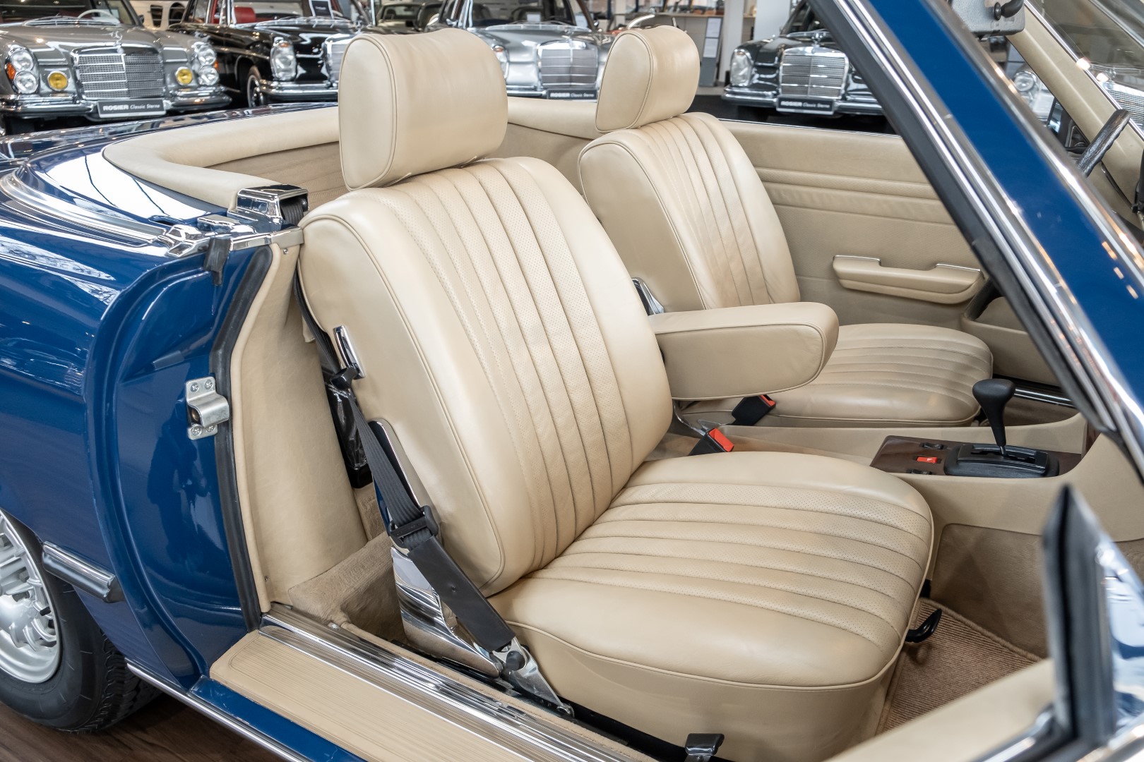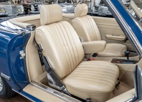 Stolze 62.708,21 DM bezahlte der damalige Besteller – ein erfolgreicher Händler für Landmaschinen und -teile aus Bonn – für den Roadster-Traum in Surfblau (900. Die Liste der Zusatzausstattungen war vergleichsweise lang: Lederausstattung in Creme (255), Automatikgetriebe, Mittelarmlehne, Klimaanlage, elektrische Fensterheber und Leichtmetallräder verliehen dem Roadster das gewisse Etwas und die ganz eigene Note des Besitzers. Das Kassettenradio Becker Grand Prix war ebenfalls mit an Bord. Natürlich sind auch hier alle Unterlagen vorhanden: von der Bedienungsanleitung über die Demonstrations-Kassette bis hin zum Garantie-Scheckheft und den original Tonkopf-Reinigungsstäbchen!