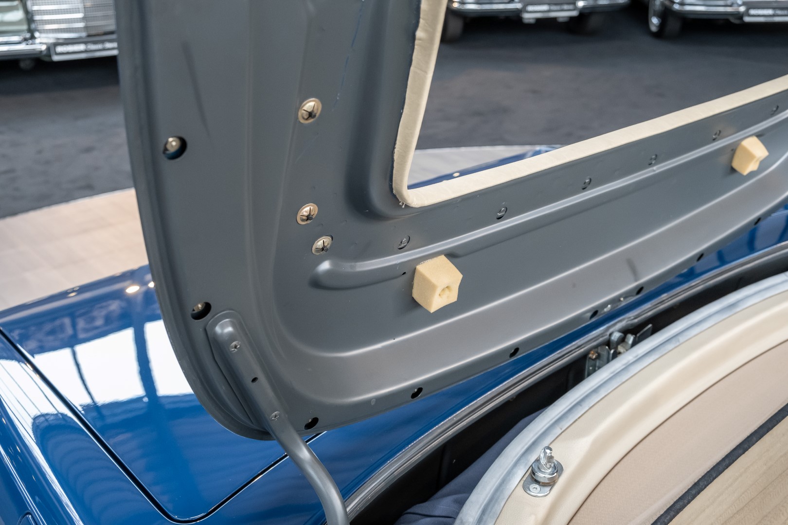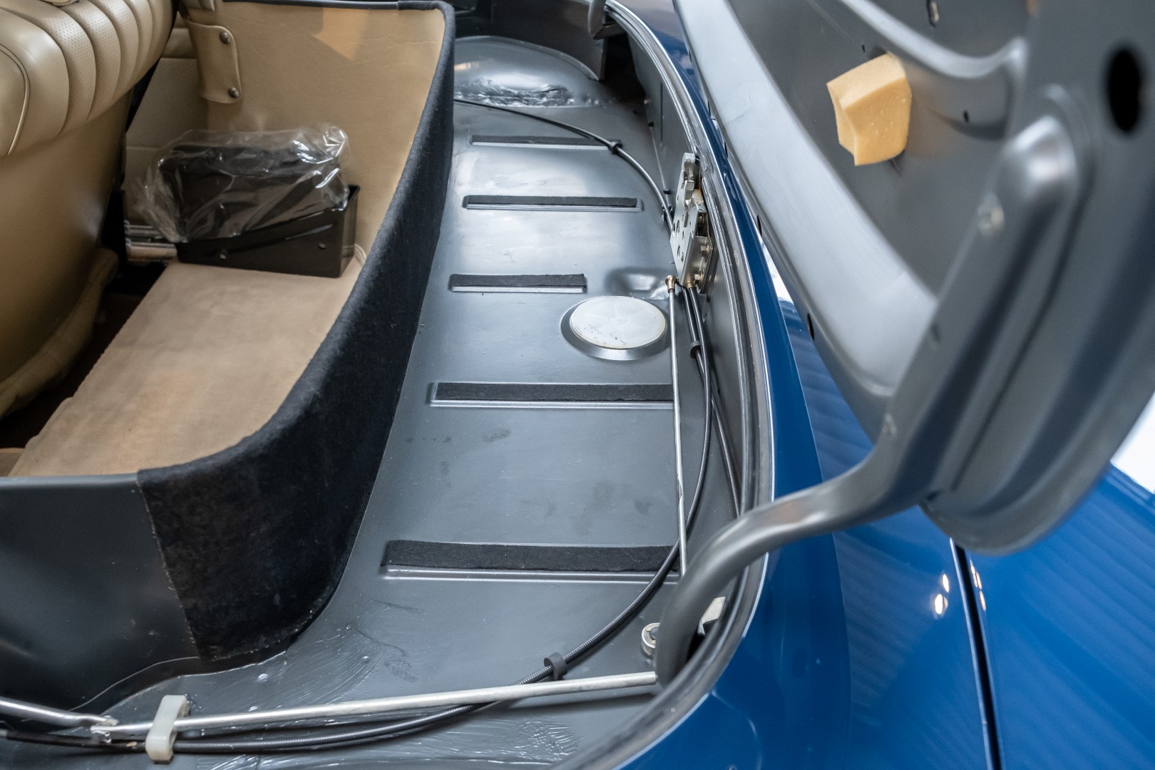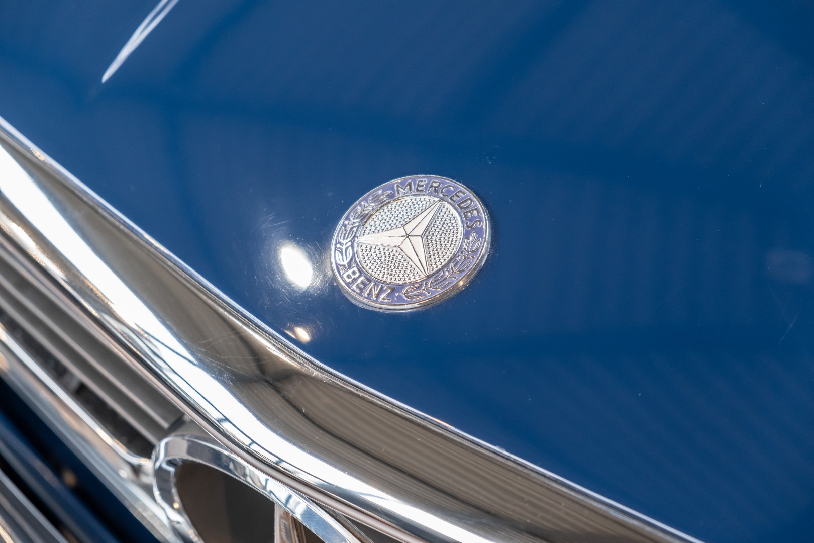 Stolze 62.708,21 DM bezahlte der damalige Besteller – ein erfolgreicher Händler für Landmaschinen und -teile aus Bonn – für den Roadster-Traum in Surfblau (900. Die Liste der Zusatzausstattungen war vergleichsweise lang: Lederausstattung in Creme (255), Automatikgetriebe, Mittelarmlehne, Klimaanlage, elektrische Fensterheber und Leichtmetallräder verliehen dem Roadster das gewisse Etwas und die ganz eigene Note des Besitzers. Das Kassettenradio Becker Grand Prix war ebenfalls mit an Bord. Natürlich sind auch hier alle Unterlagen vorhanden: von der Bedienungsanleitung über die Demonstrations-Kassette bis hin zum Garantie-Scheckheft und den original Tonkopf-Reinigungsstäbchen!
