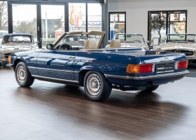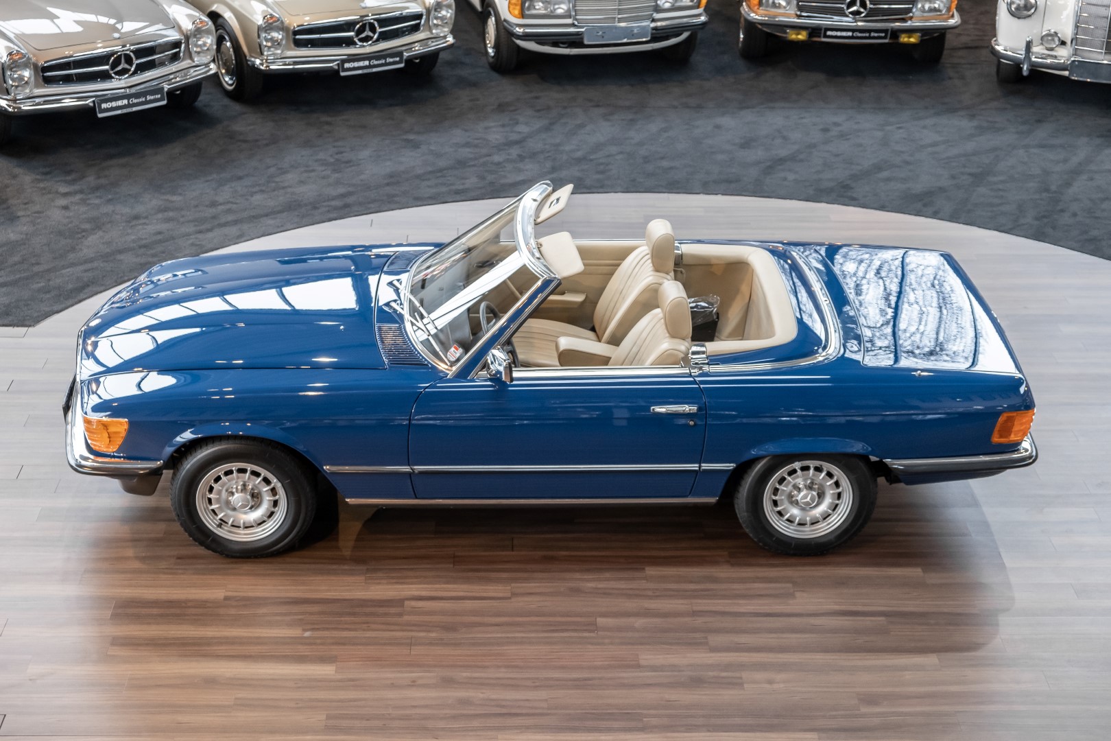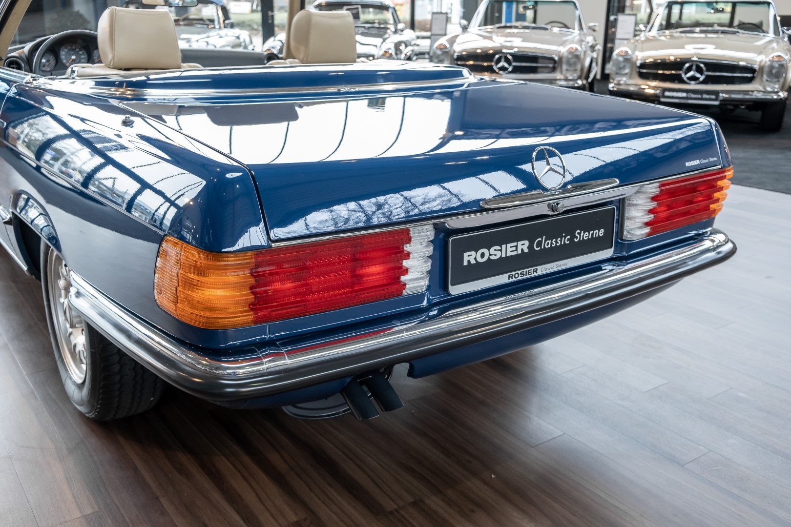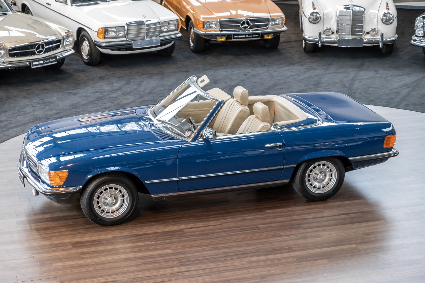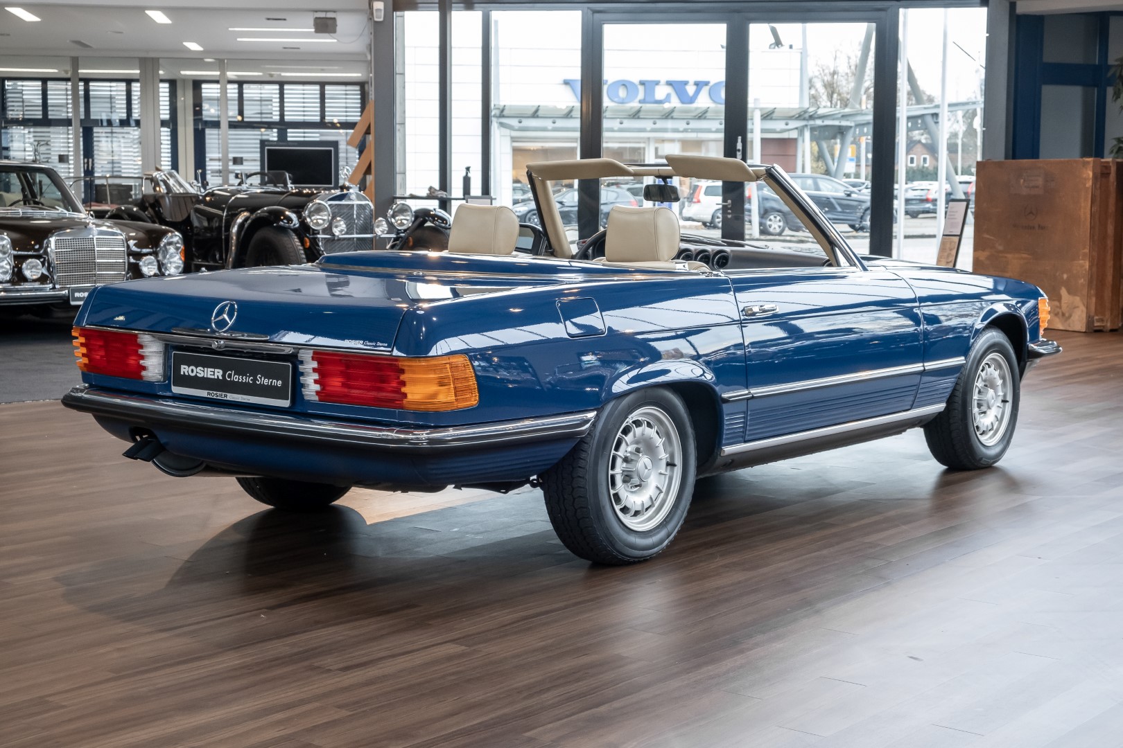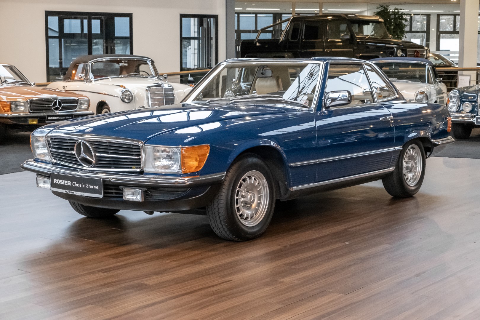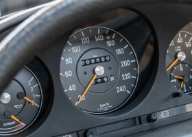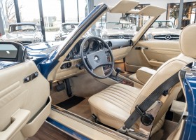Eine absolute Sensation hält dieser 280 SL der Baureihe 107 aus dem Jahre 1983 für Sie bereit: originale 8.150 km und nur zwei Vorbesitzer! Das Fahrzeug präsentiert sich im absoluten Ausnahmezustand und kann mit gutem Gewissen der Jahreswagenzustand attestiert werden. Optisch und technisch ist der Zustand makellos – fast als habe das Fahrzeug die letzten 37 Jahre in einer Zeitkapsel verbracht. Der alte Fahrzeugbrief, die Fahrzeugrechnung, die Bedienungsanleitung und das Serviceheft. Selbst der damalige Prospekt sowie Sonderausstattungslisten sind vorhanden und befinden sich in ähnlich tollem Zustand wie das Fahrzeug selbst.