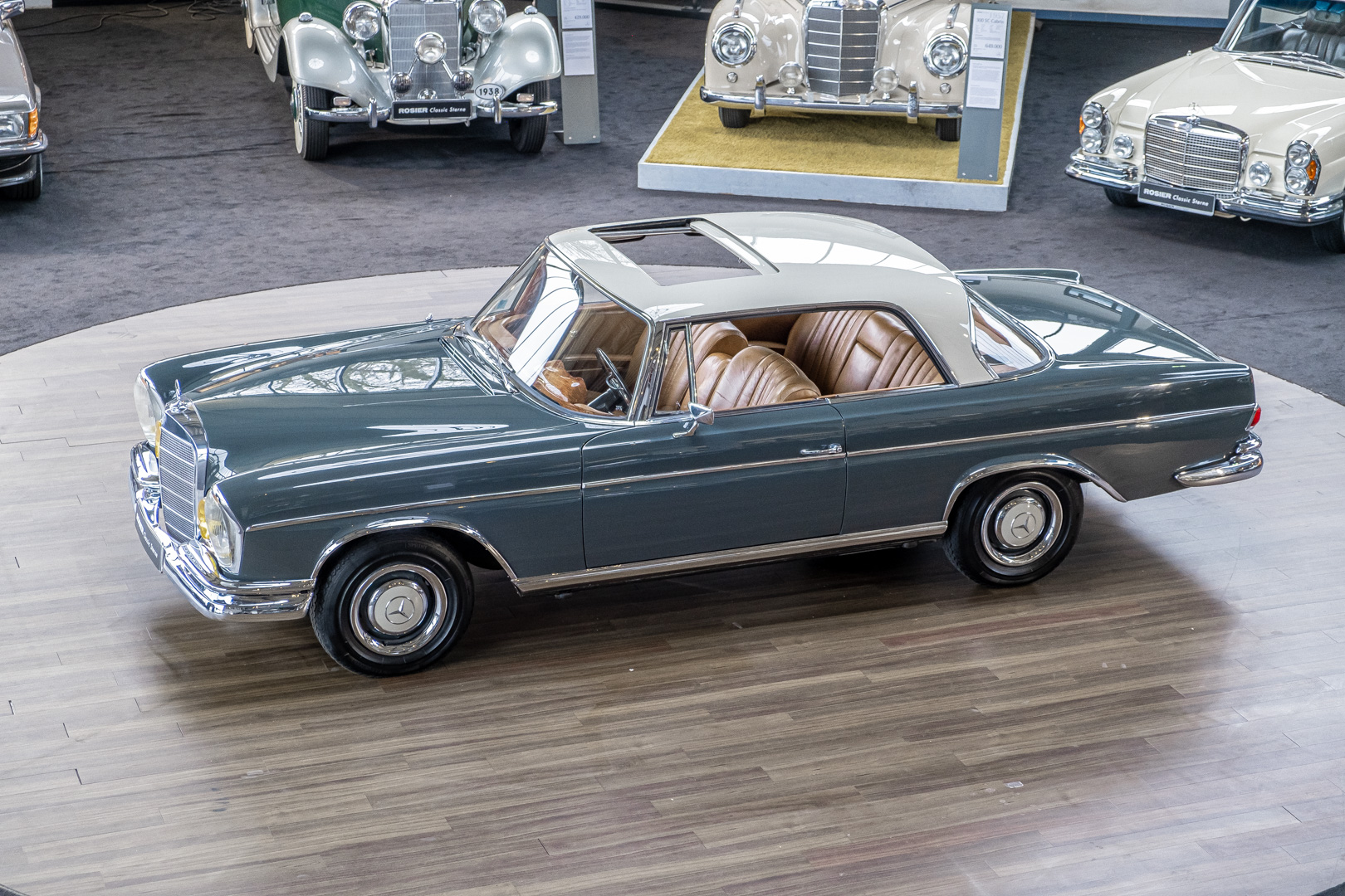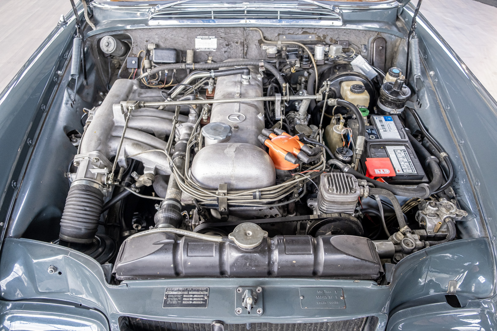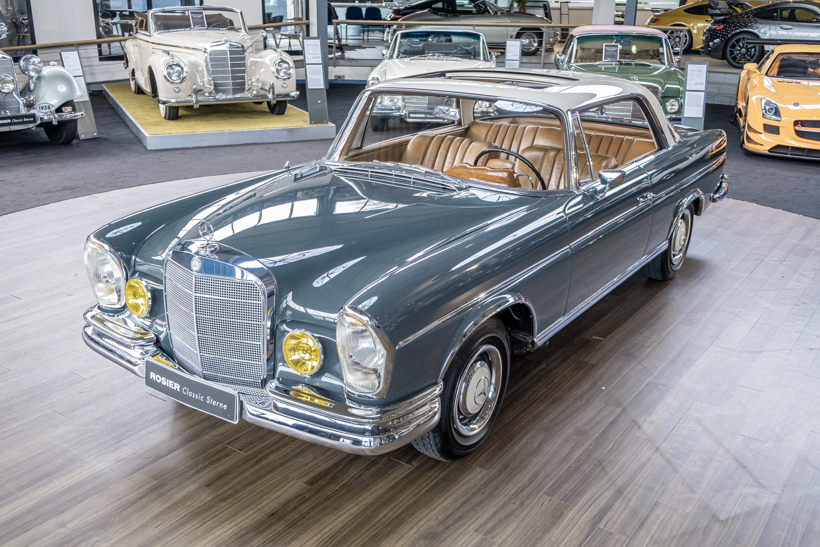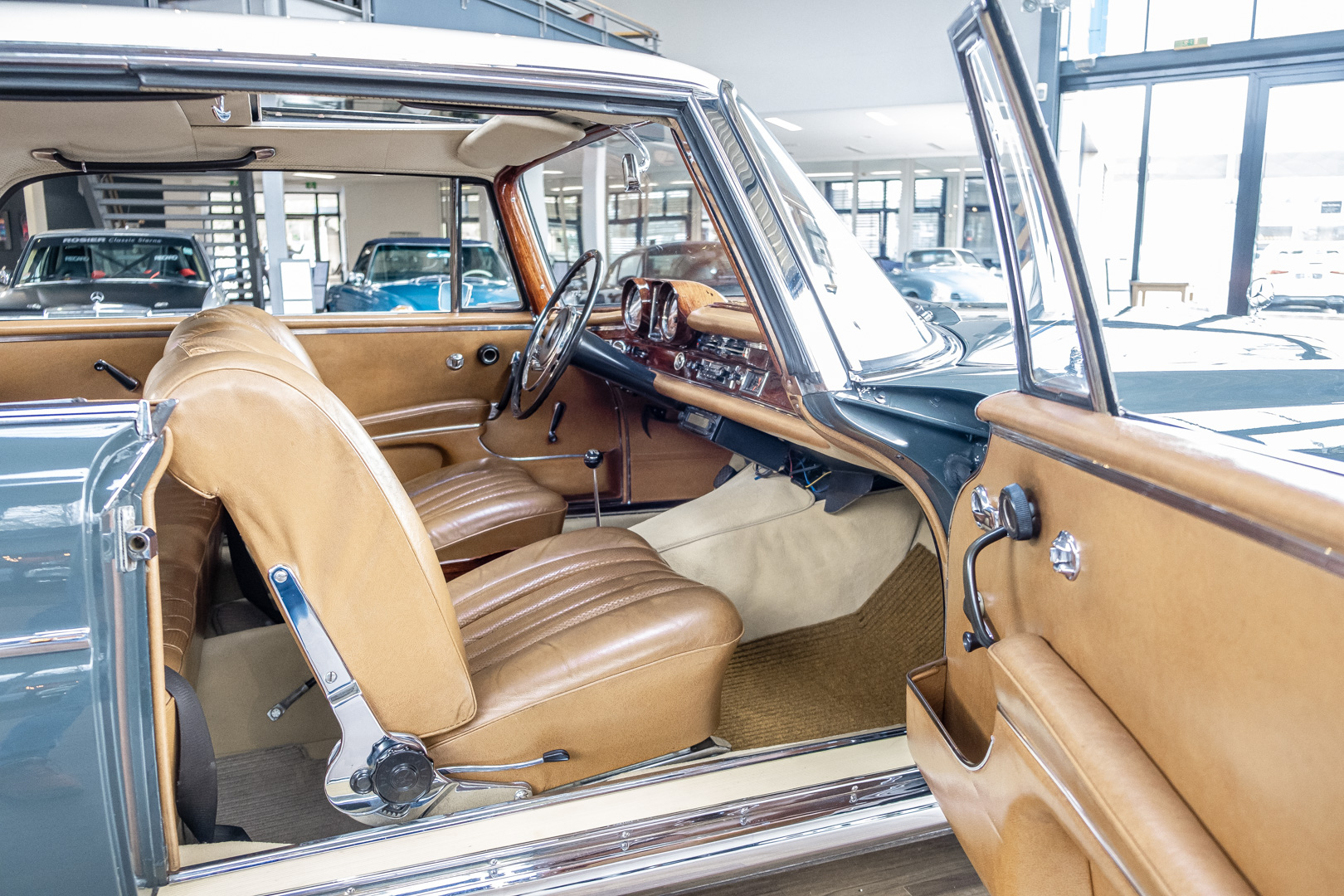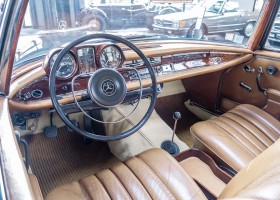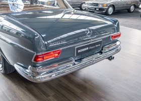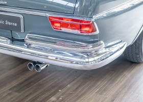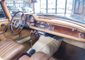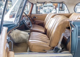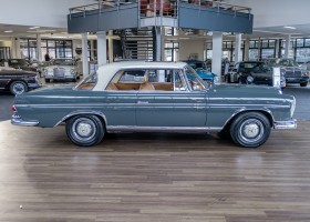 Wir freuen uns, Ihnen dieses charismatische 300 SE Coupé der Baureihe w112 anbieten zu können. Das traumhafte S-Klasse Coupe mit Luftfederung verließ im Jahre 1965 das Werk – allem Anschein nach mit dem Ziel Frankreich. Ein erfolgreicher Geschäftsmann und Direktor eines Radiogeräte-Herstellers aus Paris erfüllte sich mit diesem Luxus-Coupé wohl einen lang gehegten Wunsch. Nach dem Tod des Direktors verblieb das Fahrzeug noch im Besitz der Familie, bevor das Fahrzeug im Jahre 2012 seinen Weg nach Deutschland fand. Das originale ungeschweißte Fahrzeug wurde hier fachmännisch überarbeitet, wobei besonderes Augenmerk auf den authentischen Originalzustand gelegt wurde. Anstelle des 4-Gang-Schaltgetriebes wurde ein 5-Gang-Getriebe verbaut, was in Kombination mit einer lang übersetzen Hinterachse enorm zur Fahrqualität beiträgt. Das Gleiten bei 100-120 km/h bei angenehmer Drehzahl macht das Reisen zu einem wahren Genuss. Das originale matching-numbers 4-Gang-Getriebe ist eingelagert und wird auf Wunsch mit verkauft. Mit nur einem bekannten Vorbesitzer in Frankreich und zwei verbrieften Besitzern in Deutschland befindet sich dieses 300 SE Coupé in einem sensationellen Zustand. Erfahren Sie die Faszination eines 60er Jahre S-Klasse Coupés. Herzlich willkommen.