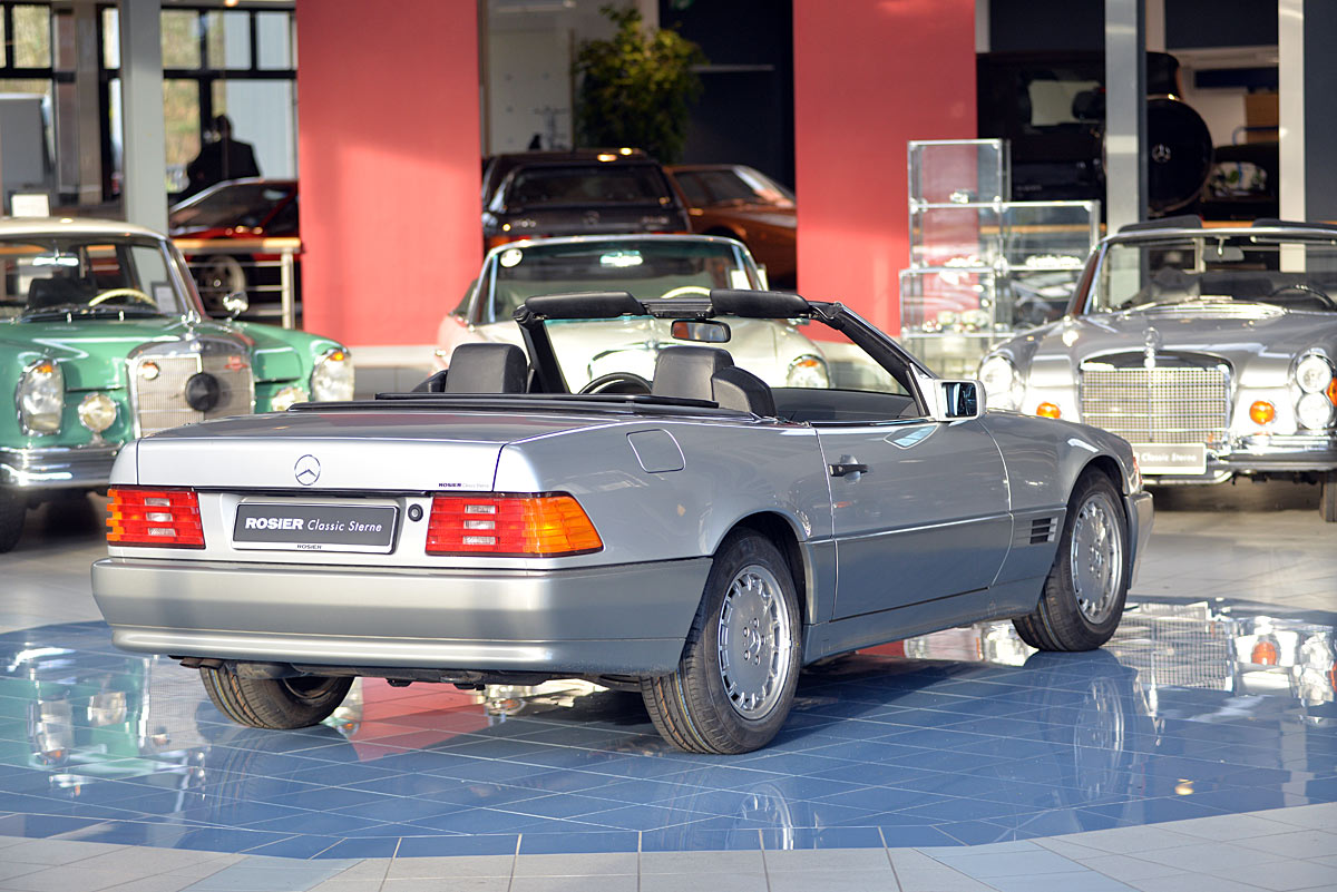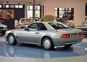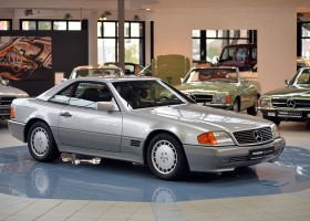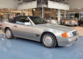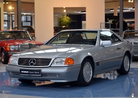 Am 25.04.1990 wurde der elegante Roadster an seinen Erstbesitzer, einen bekannten Unternehmer aus der Gegend um Oldenburg ausgeliefert. Der Wagen wurde nur wenig genutzt und hatte, als er in 1997 abgemeldet wurde, gerade einmal 53.000 km gefahren. Ein gutes Auto verkauft man nicht einfach wieder, war die Devise des Unternehmers und übernahm ihn in seine Fahrzeugsammlung. Hier verblieb der Wagen all die Jahre bis zum Tod des Unternehmers im letzten Jahr. Nun hat sich die Familie entschlossen, die Fahrzeuge in neue liebevolle Hände abzugeben. So freuen wir uns sehr, Ihnen diesen erstklassig gepflegten 300SL 24 V aus der R 129 Serie anbieten zu können. Ein umfangreicher Kundendienst in unserer Classic-Manufaktur, einschließlich der Montage von neuer Bereifung, wurde bereits durchgeführt.  Wir denken, es ist eine gute Chance für einen Liebhaber oder einen Sammler auf einen Klassiker der Zukunft. Ein Sammlerfahrzeug aus 1.Hand, mit gerade einmal 53.000 km Fahrleistung, neuer Inspektion und mit neuer TÜV Abnahme, das ist schon ein Wort oder ?