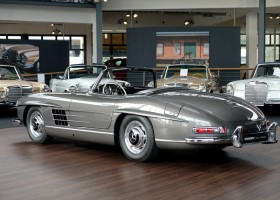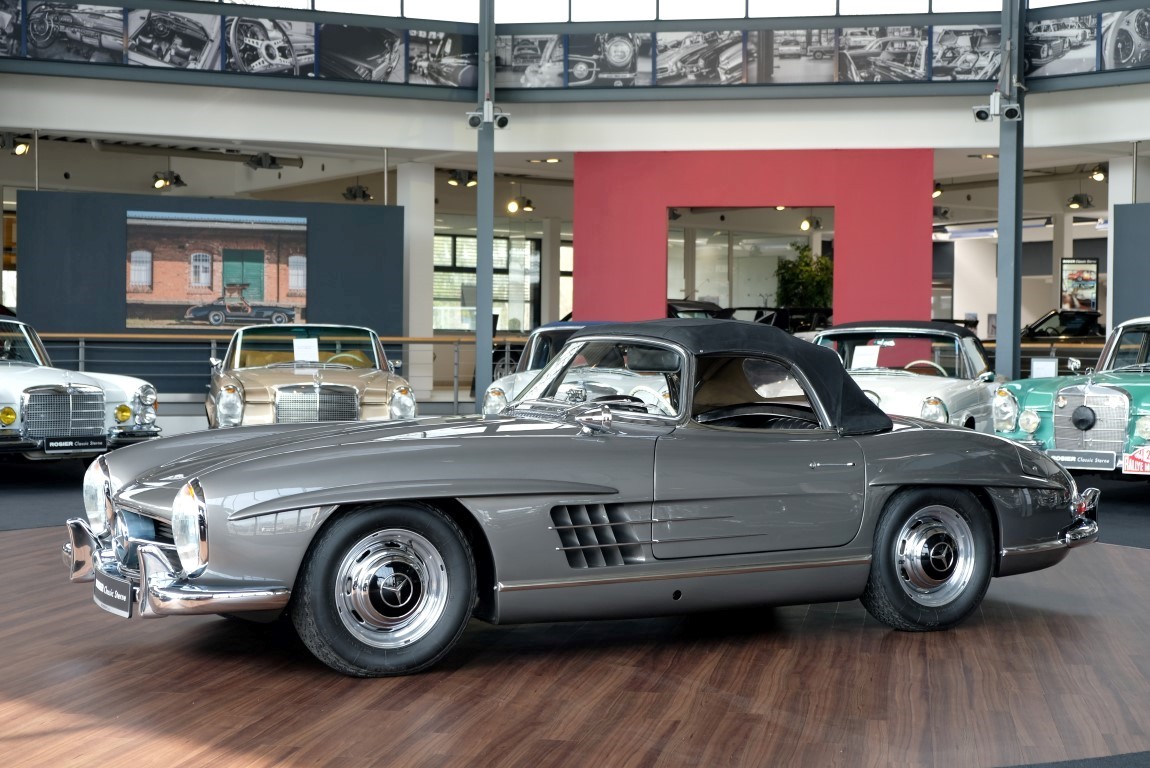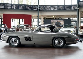 Der 300 SL Roadster löste den zur Legende gewordenen 300SL Flügeltürer ab und wurde in den Jahren 1957 bis 1963 mit großem Erfolg verkauft. Wenn man bedenkt, dass vom Konkurrenzmodell BMW 507 zu jener Zeit gerade einmal 252 Exemplare einen Abnehmer fanden, ist der Mercedes-Benz 300SL Roadster mit 1.858 produzierten Einheiten durchaus als ein großer Erfolg zu betrachten. Die Technik des Roadsters ist der des Flügeltürers gleichgestellt und beinhaltet ebenfalls, den von einem Rennmotor abgeleiteten kraftvollen Reihensechszylinder, mit Direkteinspritzung. Die 300SL Modelle waren nicht billig, dafür aber exklusiv und mit fortschrittlicher Technik ausgestattet. Wer entsprechend Geld hatte, wollte sich eben auch nur das Beste leisten. So fand der 300 SL Roadster so manchen Käufer in der Highsociety. Zu Ihnen gehörte z.B.: Clark Gable, Glenn Ford, Horst Buchholz und Curd Jürgens, ebenso wie Elvis Presley und Toni Sailer.