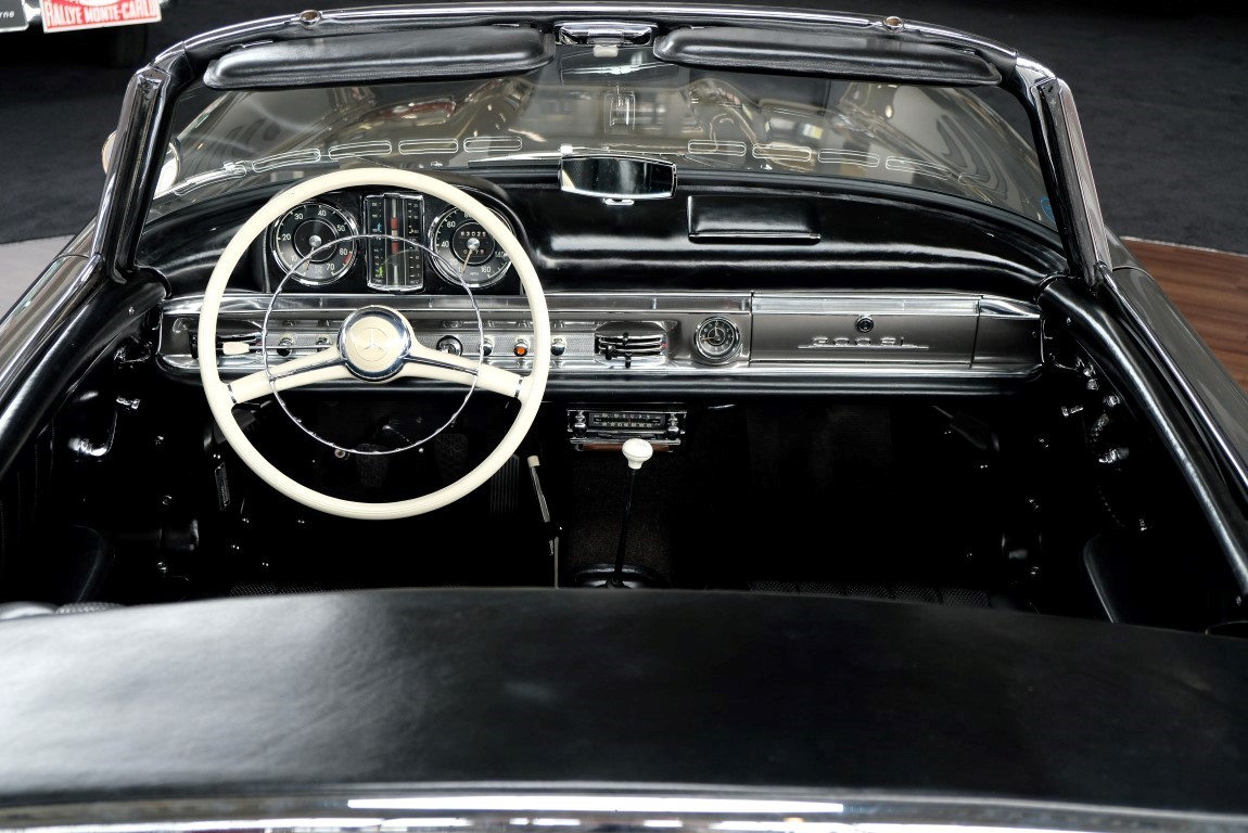 Dieser von uns angebotene Mercedes-Benz 300SL Roadster gehört zweifelsohne zu den begehrtesten Exemplaren überhaupt. Er wurde in 1963 über den amerikanischen Mercedes Importeur Max Hoffmann an seinen Erstbesitzer in Ohio ausgeliefert. Ein spätes Modell, bereits mit Scheibenbremsen und dem leichteren Aluminiummotor, der sorgfältig einer Revision unterzogen, zuverlässig seinen Dienst leistet. Das Fahrzeug war ausgerüstet mit einem schwarzen Hardtop und schwarzen Radkappen, so wie sich der Wagen noch heute präsentiert. Von 1977 bis 2001 war er im Besitz von Robert B. Harris in Shelbyville Indiana. Danach kaufte den eleganten Roadster Jack Hutton, der in Concord, New Hampshire, beheimatet war. Er behielt den Roadster bis ins Jahr 2015 und ließ ihn zwischenzeitlich auf sehr hohem Niveau umfangreich überarbeiten. Die Arbeiten wurden von bestens bekannten Adressen in USA ausgeführt. So machte die Karosseriearbeiten Al Poskus, die Mechanik Dave Twichell und Mike Curley widmete sich der Innenausstattung. In 2018 bekam der Wagen eine neue Spitzenlackierung und präsentiert sich in einem Tiefenglanz, der seinesgleichen sucht.